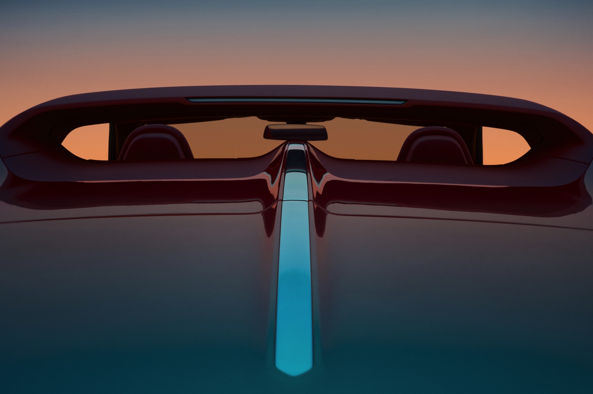 Ein ganz besonderer Blickfang ist zweifellos auch der Überrollbügel hinter den Insassen, der die B-Säule optisch nach oben verlängert. Zwischen den Kopfstützen befindet sich wie beim früheren 6er Cabrio eine versenkbare Glasscheibe, aber auf ein klassisches Cabrio-Verdeck verzichtet der BMW Skytop Roadster: Zwei mit Leder überzogene Dachschalen können bei schlechtem Wetter mit wenigen Handgriffen montiert werden, im Regelfall dürften sie ihr Leben aber in den für sie vorgesehenen Ablagen im Kofferraum verbringen.