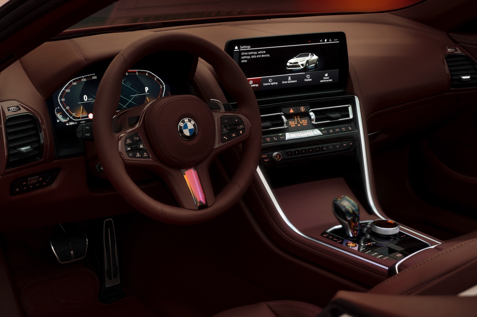 Der gleiche Farbton prägt auch den Innenraum, dessen grundlegendes Design nah am aktuellen 8er bleibt. Die extrem hochwertige Lederausstattung mit Akzentuierung im Budapester Stil wurde in der Sattlerei des Werks Dingolfing in Manufaktur-Arbeit realisiert.