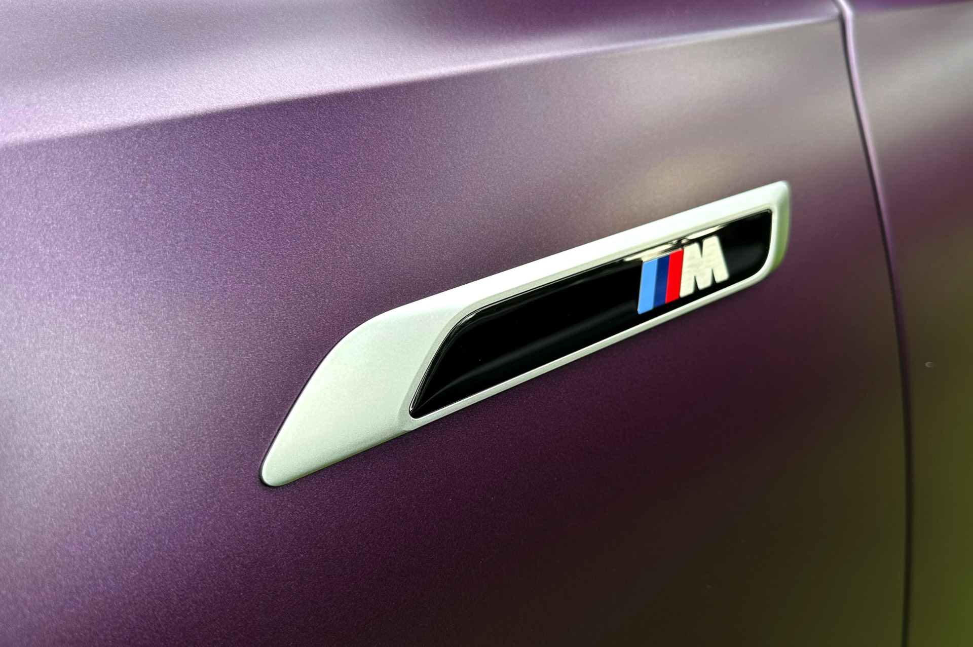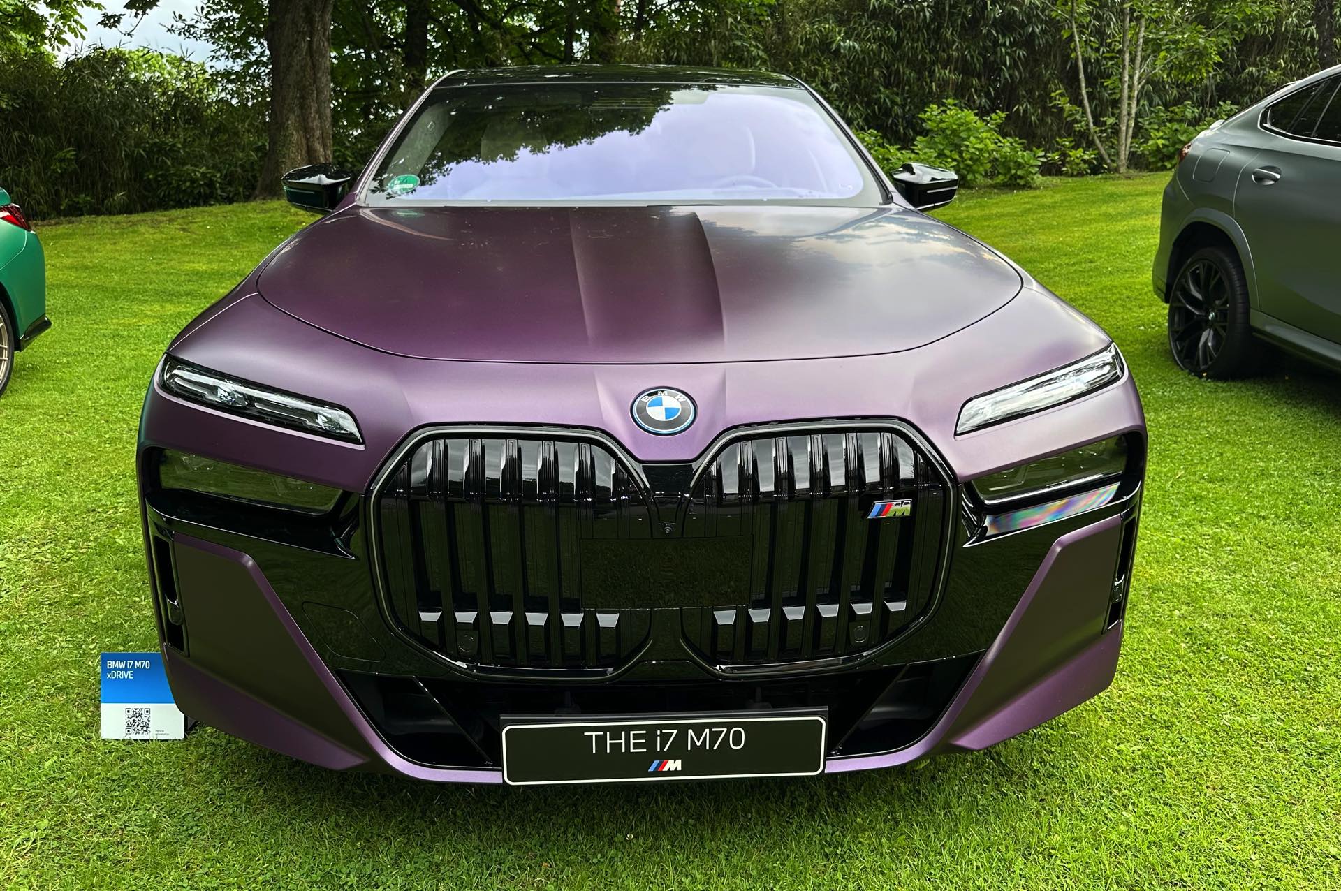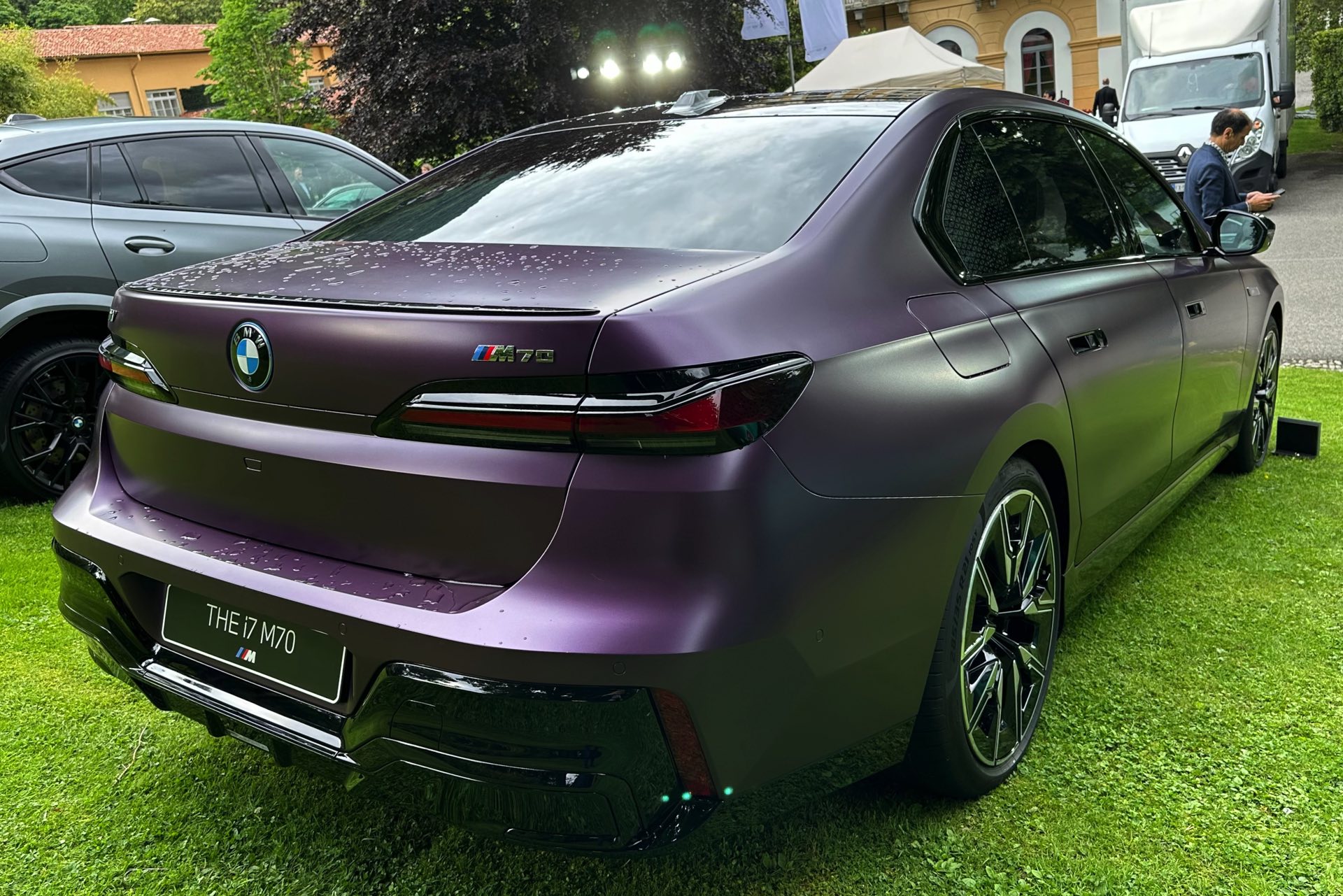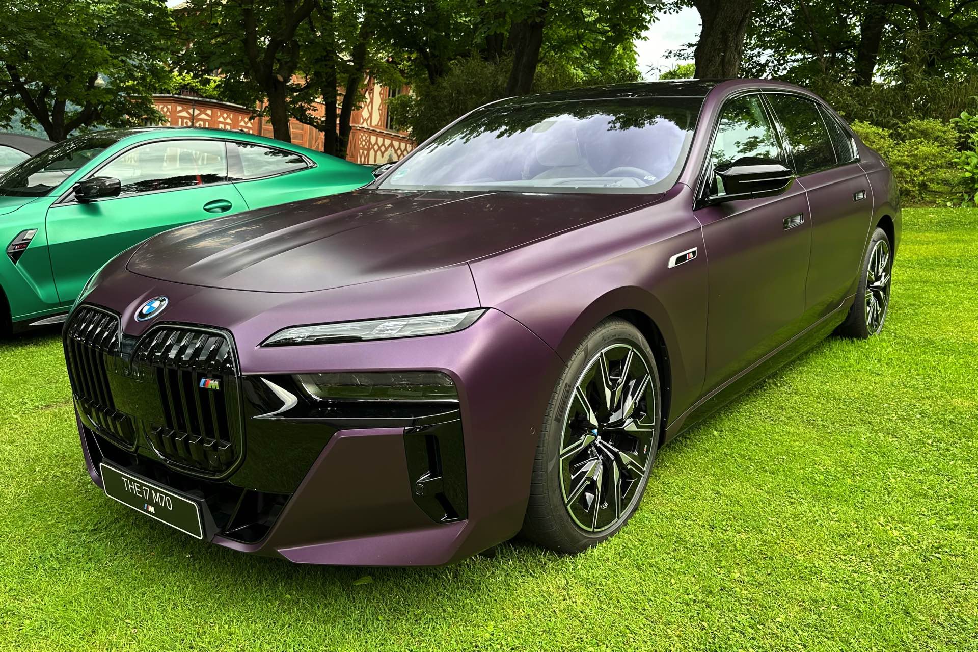 Individualität wird beim Concorso d’Eleganza Villa d’Este schon immer besonders gefeiert, gewöhnliche Automobile gibt es schließlich mehr als genug. So überrascht es auch nicht, dass die M GmbH einige Beispiele ihrer matten Lackierungen am Comer See präsentiert, darunter ein BMW i7 M70 im spektakulären Farbton Frozen Purple Metallic (Farbcode P9A). Das intensive Violett mit mattem Finish gehört mit Sicherheit zu den speziellsten Lackierungen, mit denen sich ein BMW 7er (G70) lackieren lässt – und das ganz ohne die 12.000 Euro teure Two-Tone-Option, mit deren Hilfe sich der obere Teil der Luxuslimousine in einer Kontrastfarbe absetzen ließe.