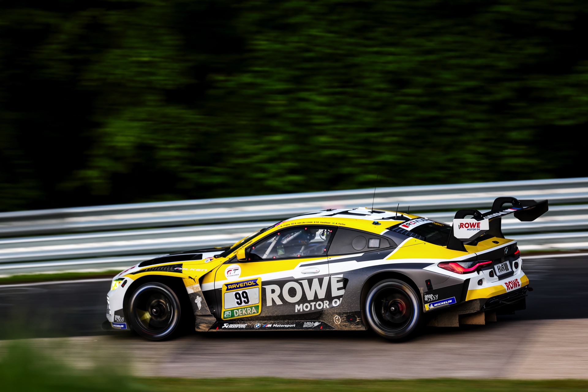 Der zweitschnellste BMW M4 GT3 folgt auf dem siebten Rang, hier sitzen Robin Frijns, Sheldon van der Linde, Dries Vanthoor und Augusto Farfus am Steuer des ROWE-M4 mit der Startnummer 99. Mit einer Zeit von 8:12,157 Minuten waren sie keine 1,2 Sekunden langsamer als die Markenkollegen auf der Pole Position, sodass sie genau wie die sie verfolgenden Mercedes-AMG GT3 und diverse weitere Starter der Top-Klasse SP9 weiterhin alle Chancen auf den Sieg haben.