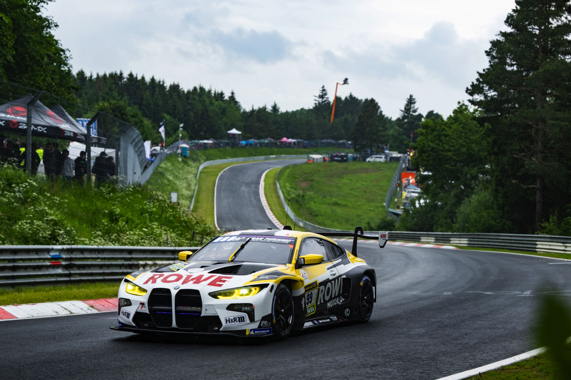 Kaum mehr als drei Stunden nach dem Start wurden jedoch sämtliche Siegchancen dieses BMW M4 GT3 zerstört, als es beim Überrunden eines Porsche Cayman GT4 zu einer unverschuldeten Kollision kam und Sheldon van der Linde das Rennen in Führung liegend beenden musste. Zwar wurde die Fahrerin des Porsche mit einer Strafe belegt, aber die Siegchancen des ROWE-BMW #99 waren unabhängig davon hinüber.