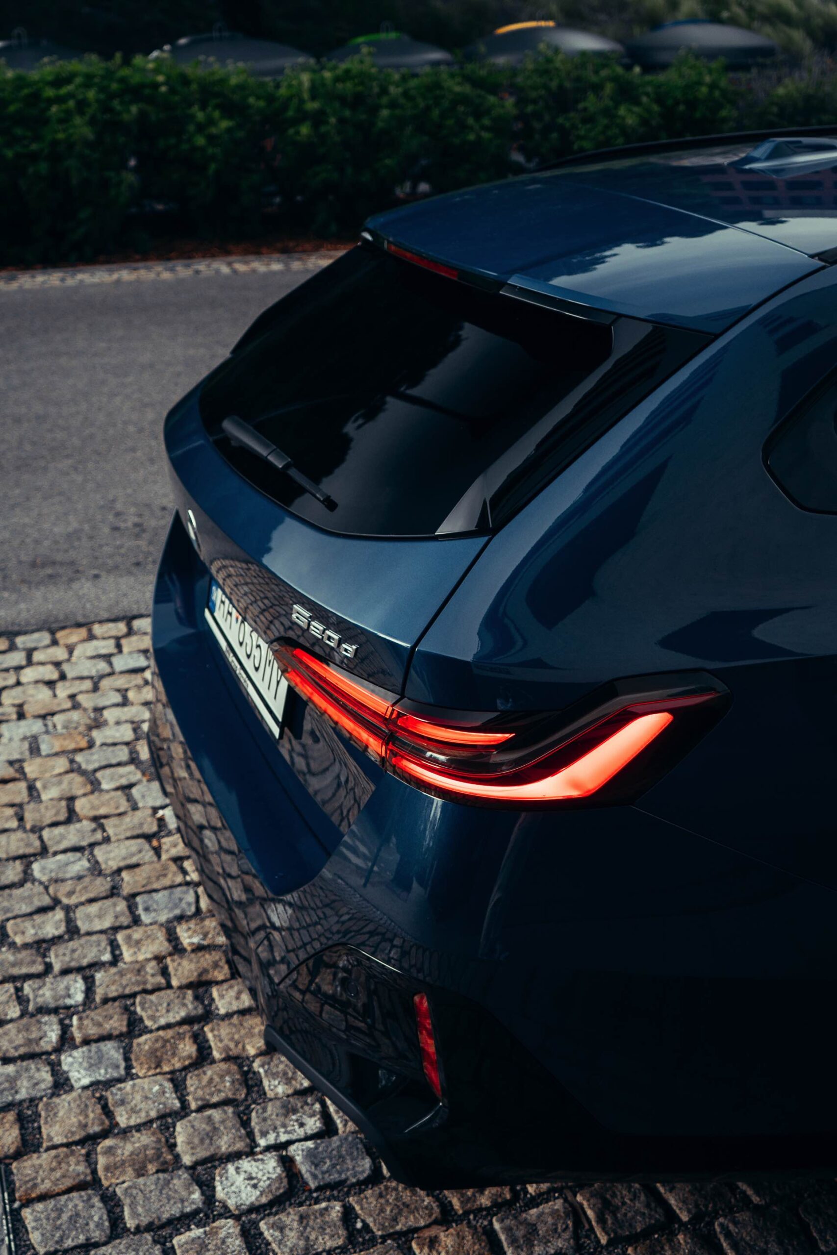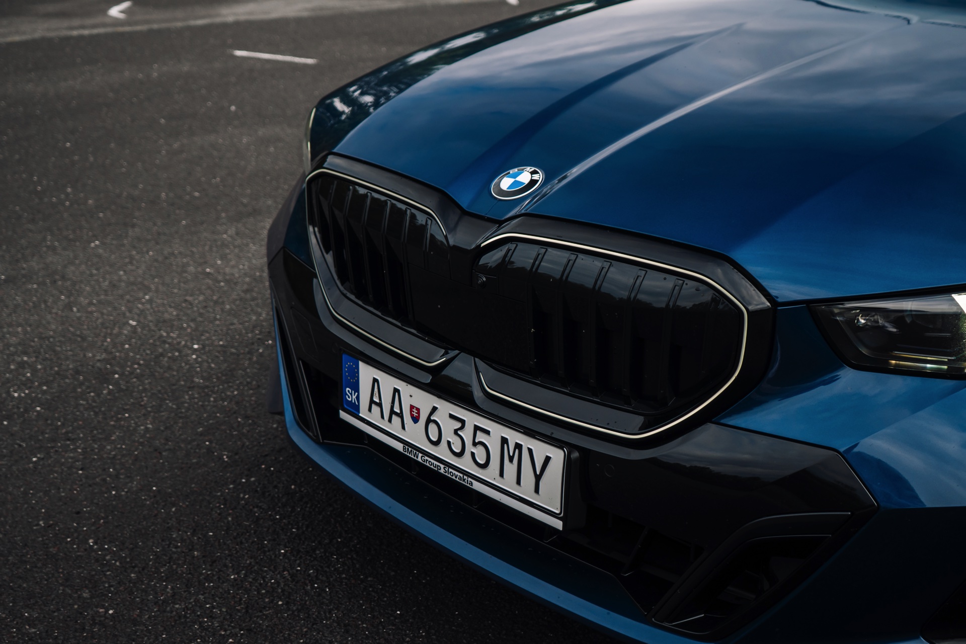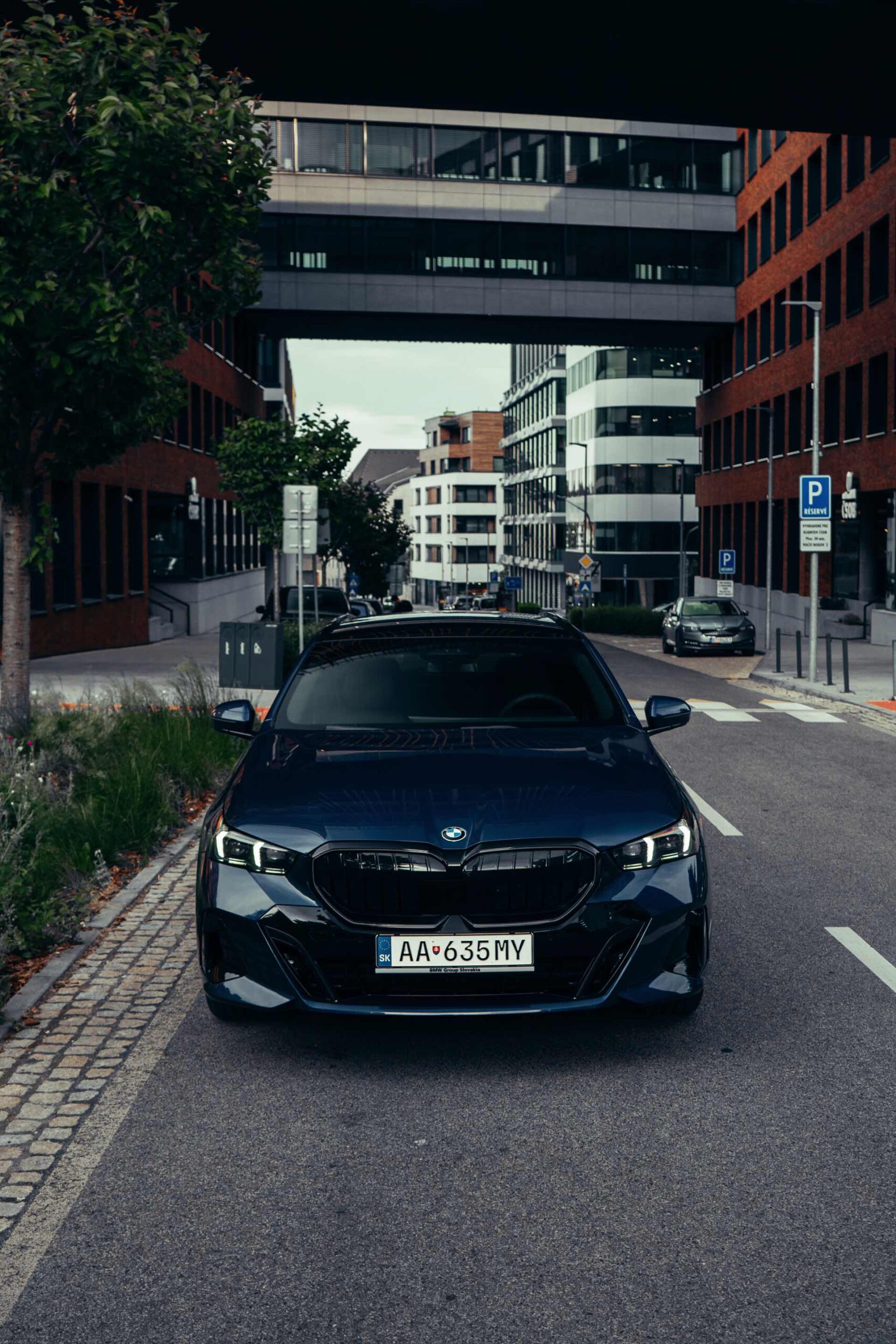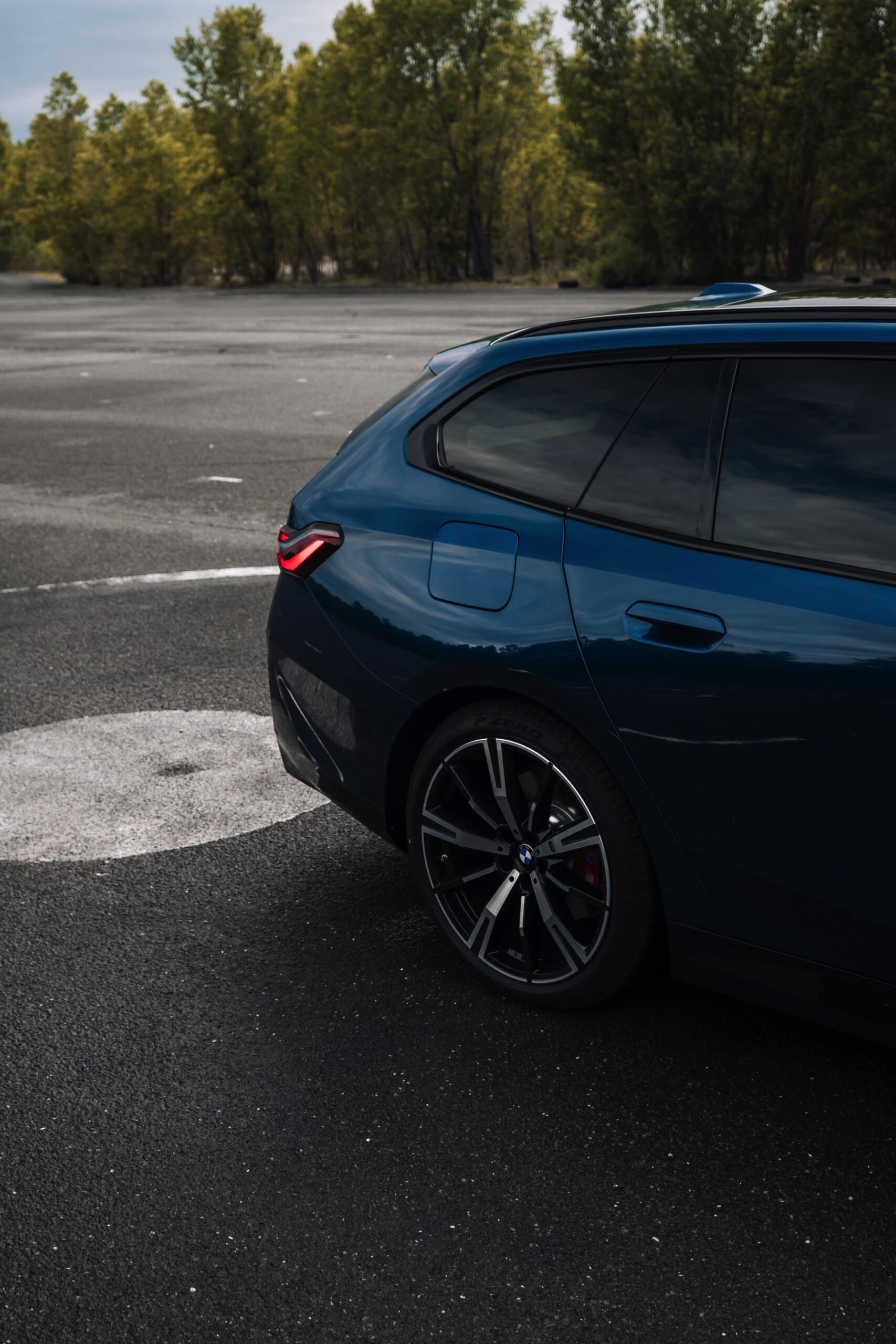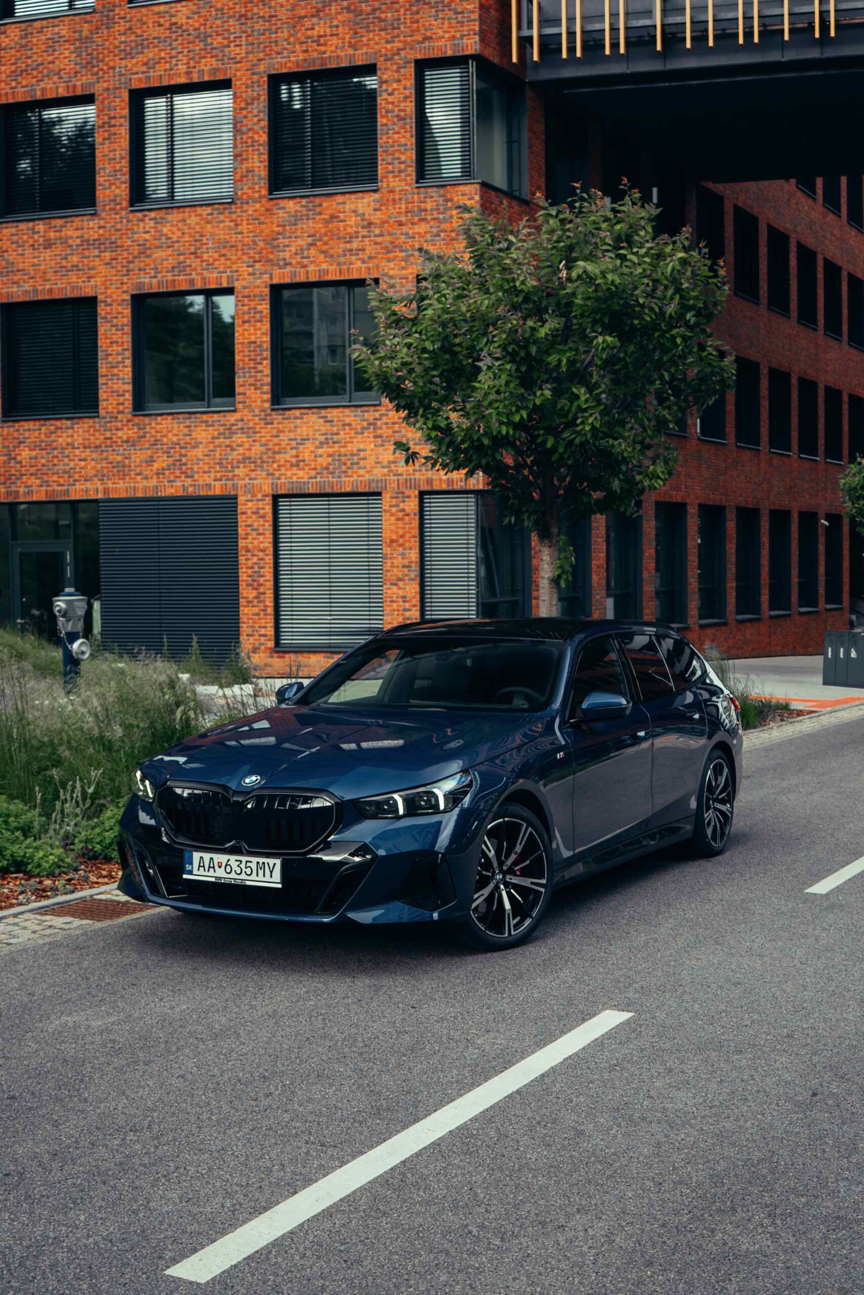 Auf den Fotos aus der Slowakei sehen wir den neuen BMW 5er Touring vorwiegend ohne Sonne auf dem Lack, weshalb sich auch Phytonic Blue eher von seiner dunklen Seite zeigt. Passend dazu präsentiert sich der Edel-Kombi mit dem M Sport Pro-Paket samt Shadow Line mit erweiterten Umfängen, weshalb er unter anderem die schwarz lackierte Variante der beleuchteten Iconic Glow-Niere tragen darf. Was er im Gegensatz dazu nicht tragen darf, sind sichtbare Endrohre: Genau wie alle übrigen bisher vorgestellten 5er der neuen Generation G6x verzichtet auch der BMW 520d xDrive auf jeden sichtbaren Hinweis auf den Verbrennungsmotor an Bord.