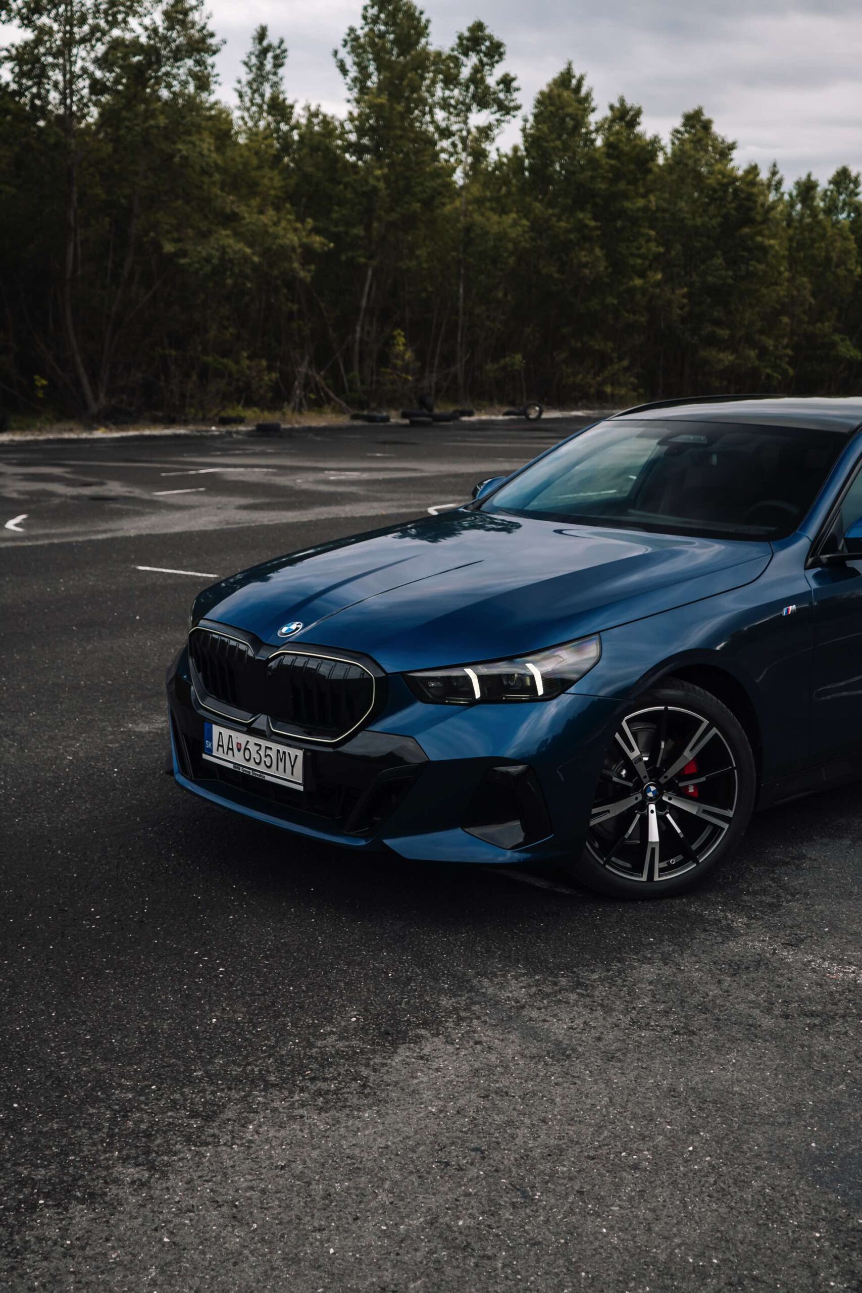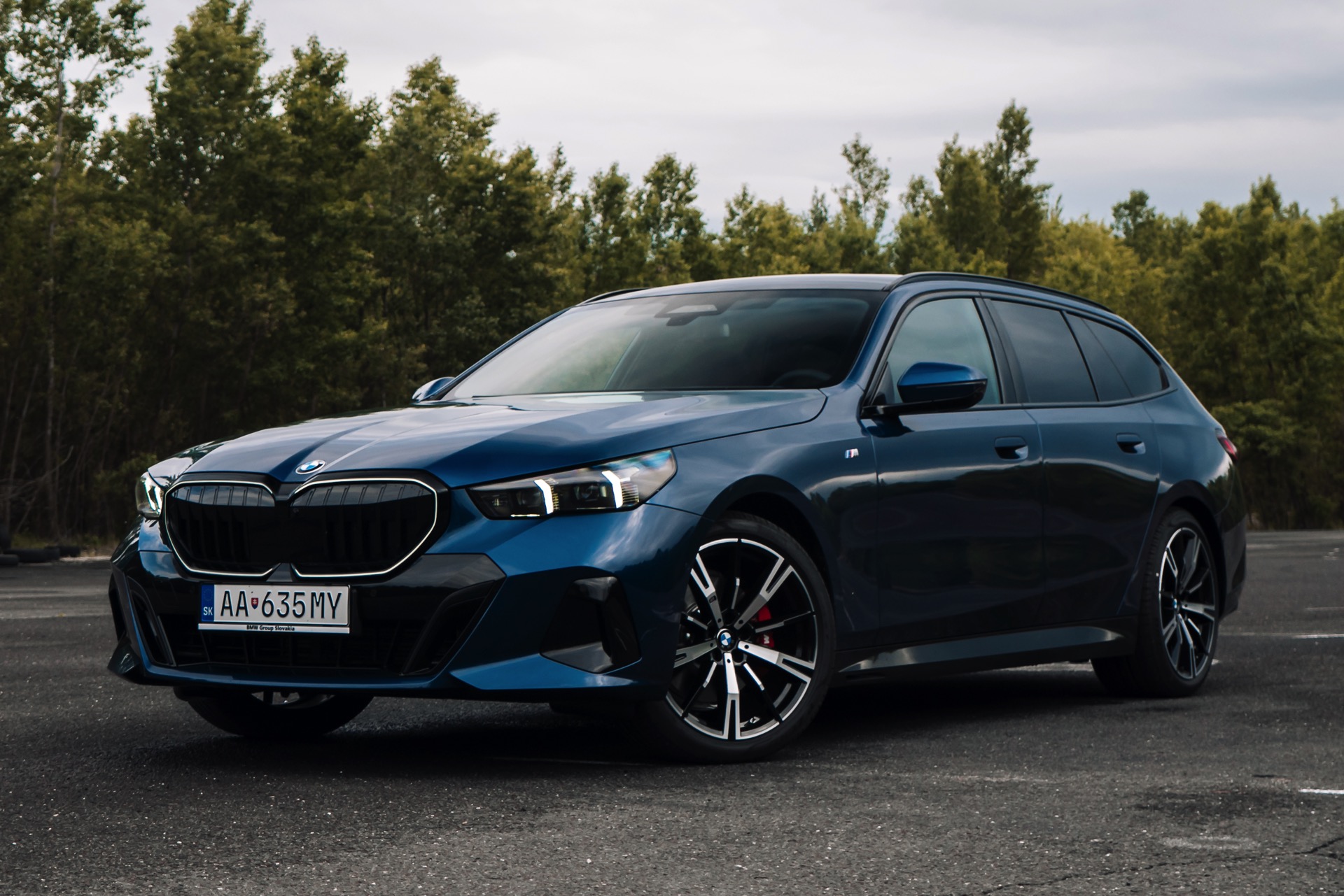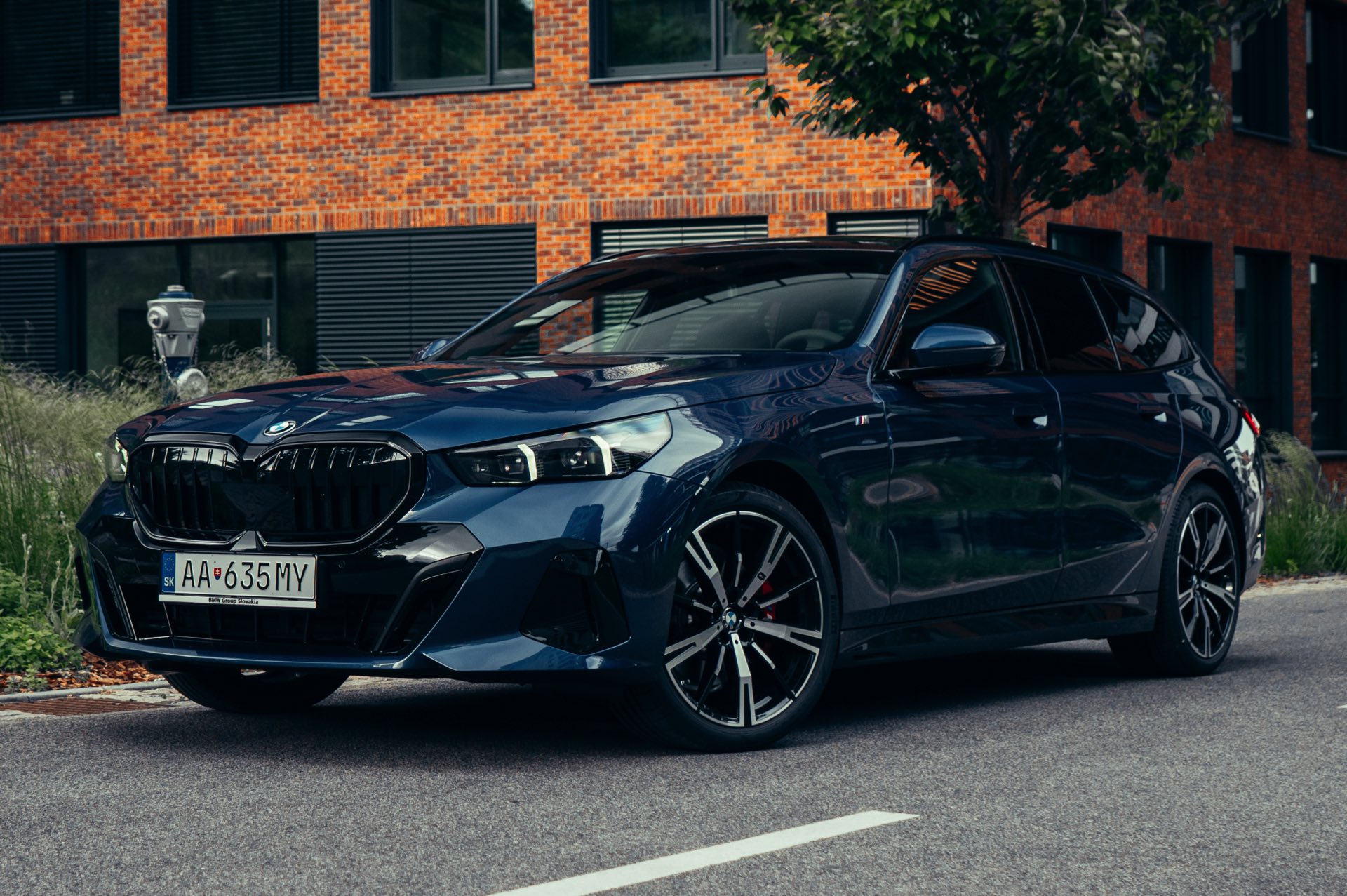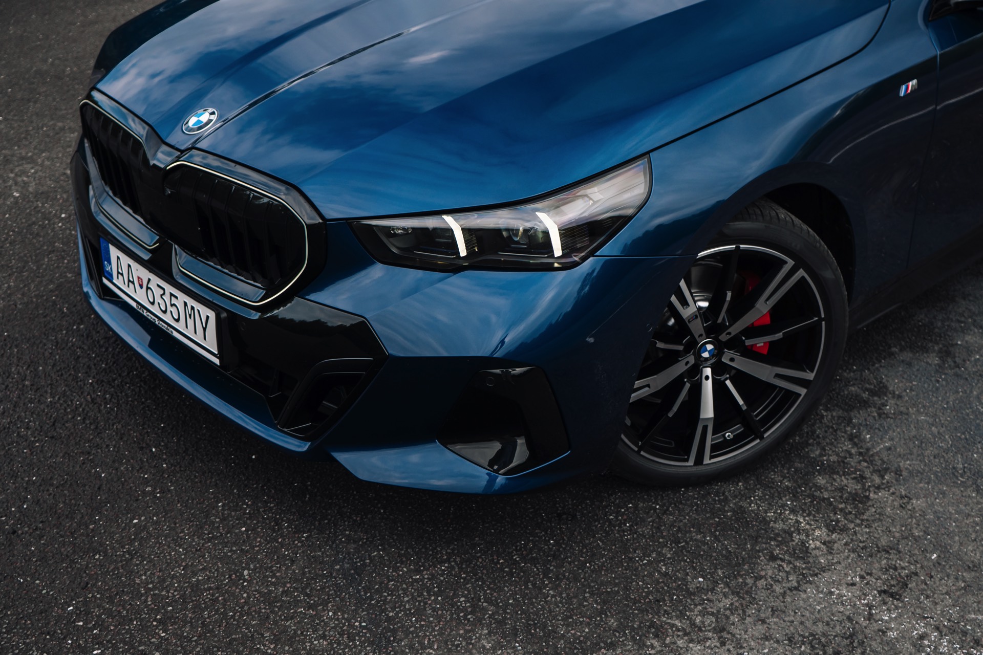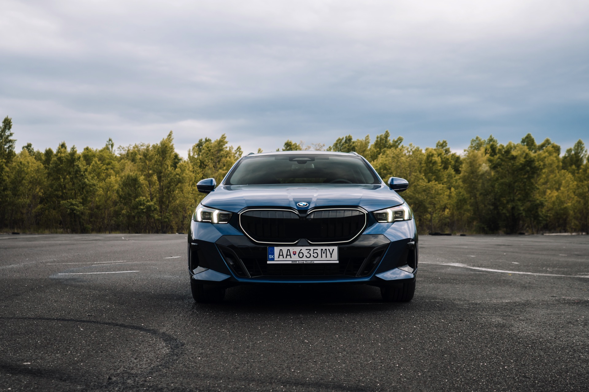 Auf den Fotos aus der Slowakei sehen wir den neuen BMW 5er Touring vorwiegend ohne Sonne auf dem Lack, weshalb sich auch Phytonic Blue eher von seiner dunklen Seite zeigt. Passend dazu präsentiert sich der Edel-Kombi mit dem M Sport Pro-Paket samt Shadow Line mit erweiterten Umfängen, weshalb er unter anderem die schwarz lackierte Variante der beleuchteten Iconic Glow-Niere tragen darf. Was er im Gegensatz dazu nicht tragen darf, sind sichtbare Endrohre: Genau wie alle übrigen bisher vorgestellten 5er der neuen Generation G6x verzichtet auch der BMW 520d xDrive auf jeden sichtbaren Hinweis auf den Verbrennungsmotor an Bord.