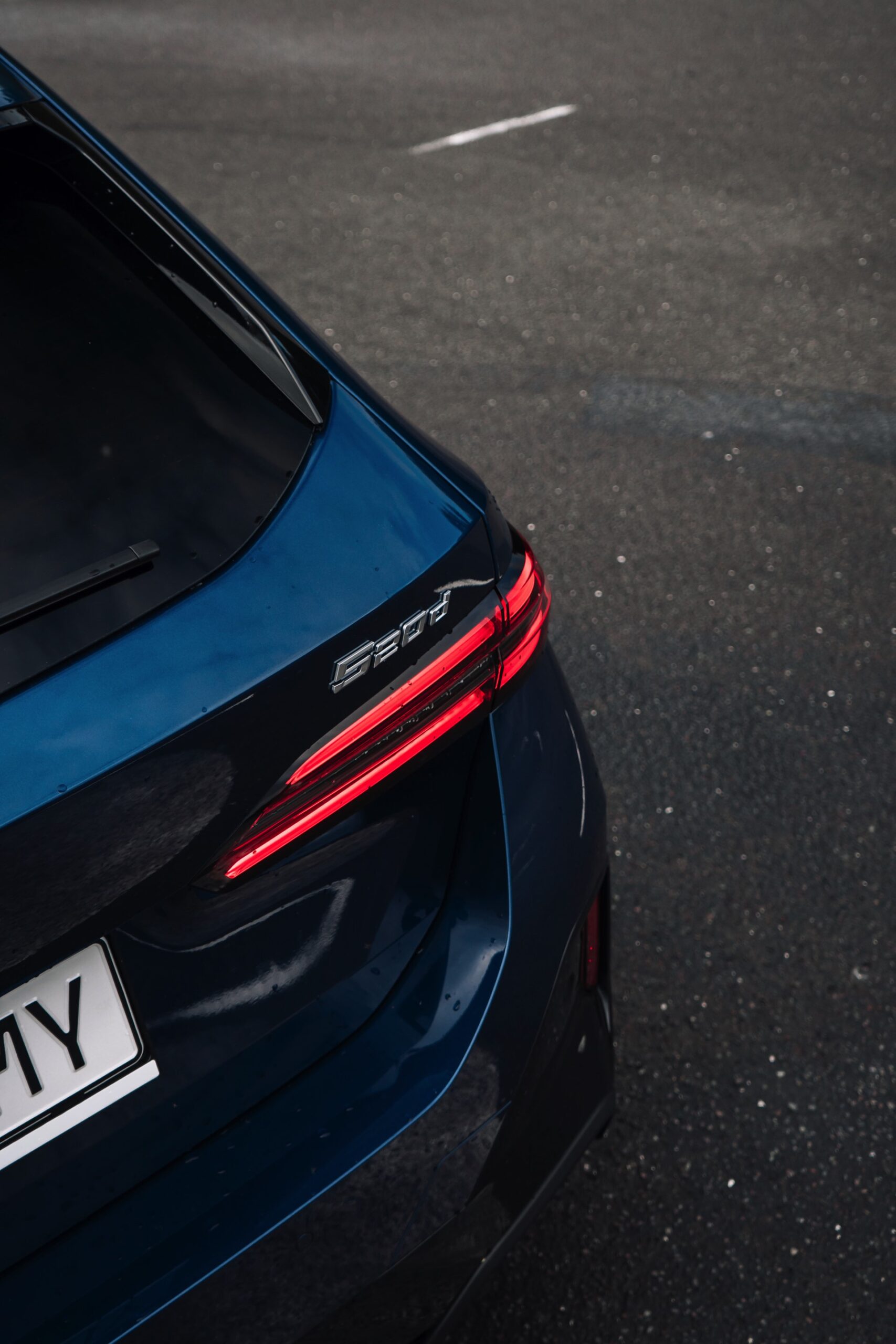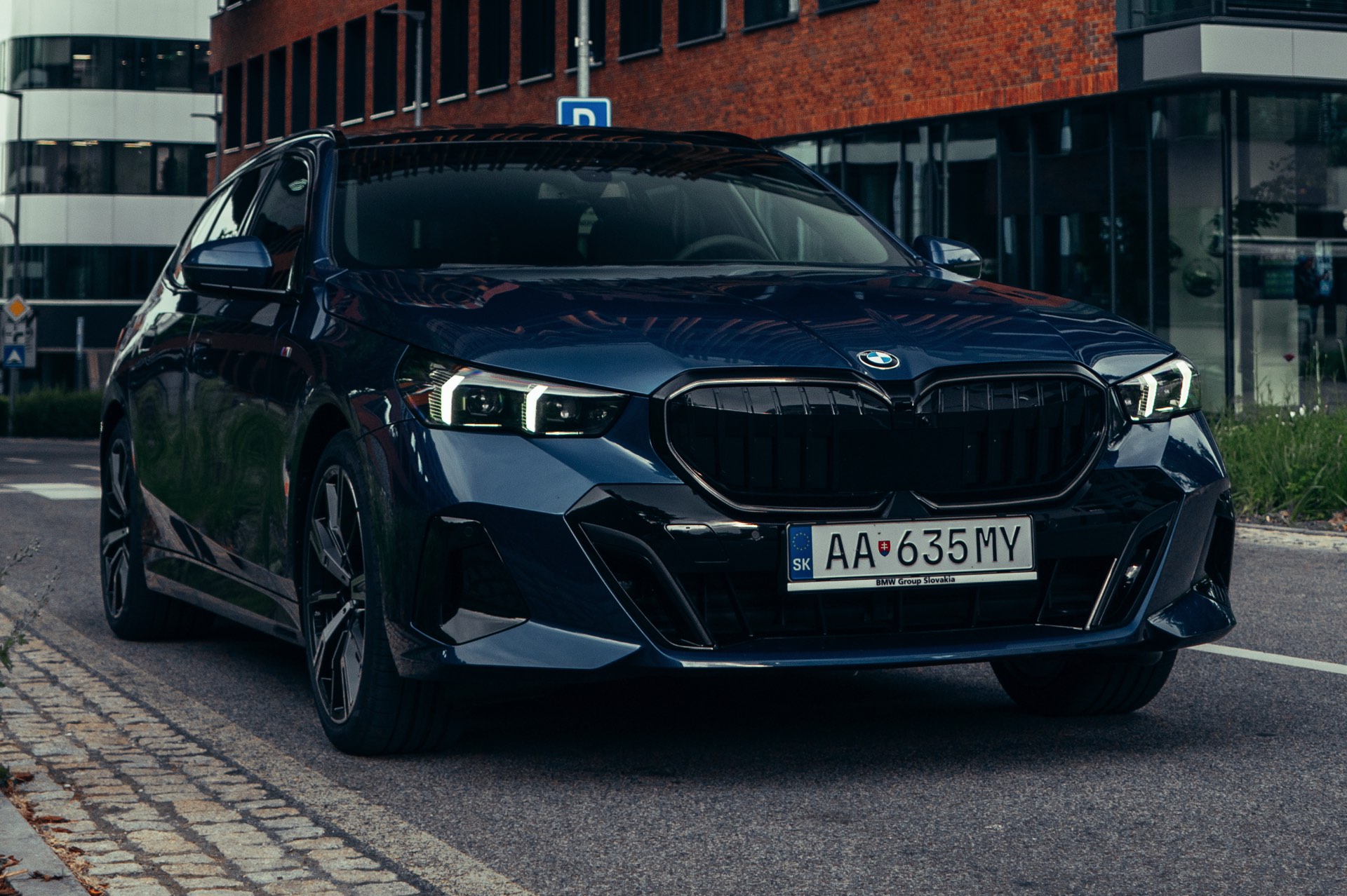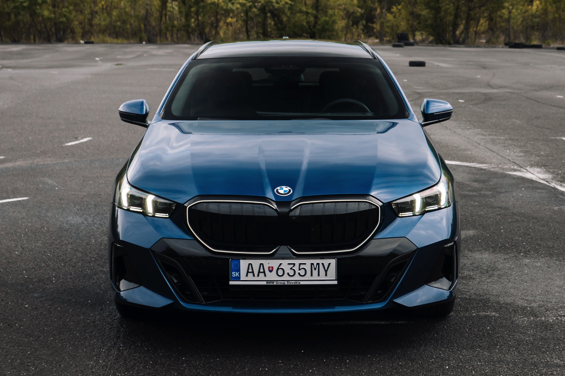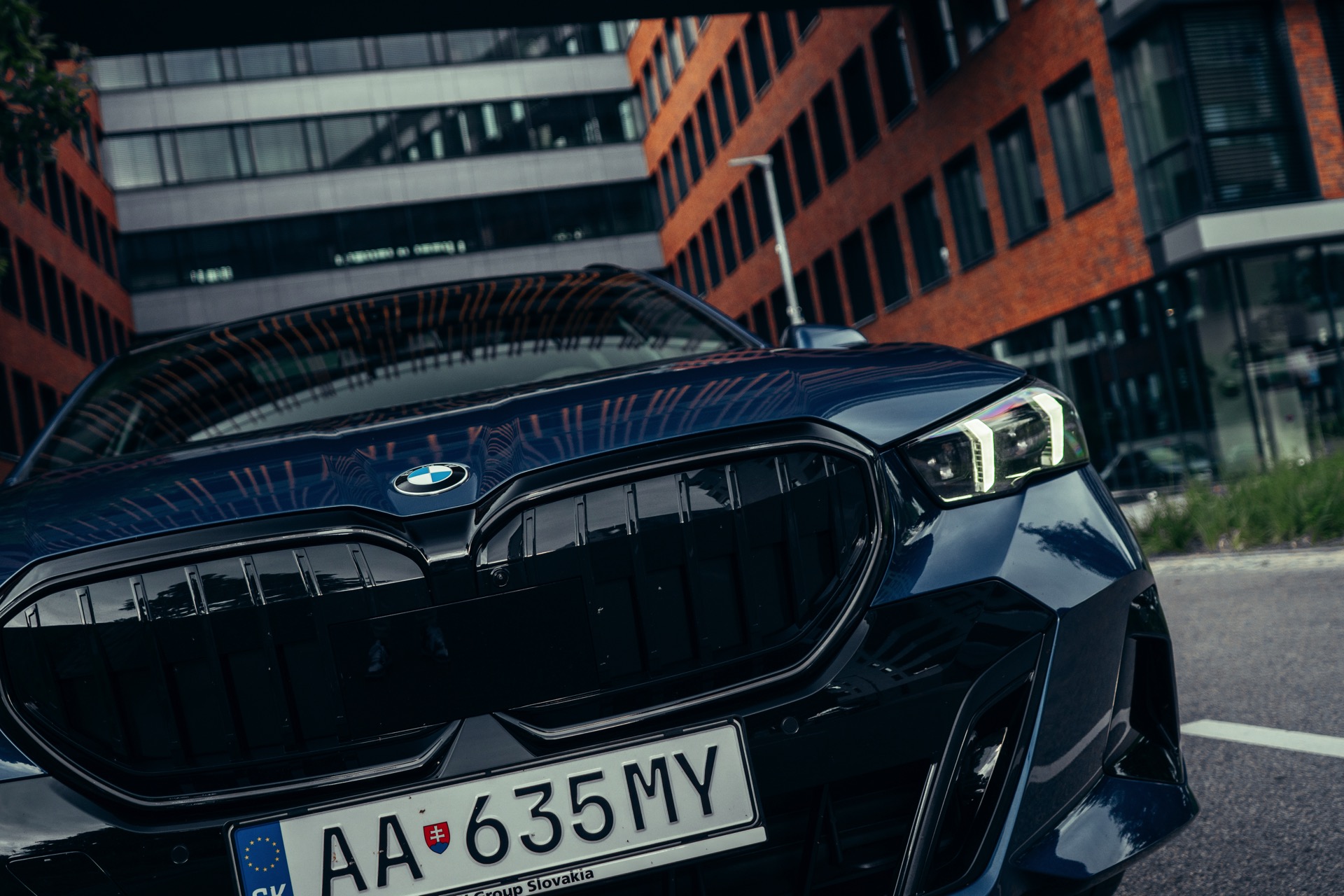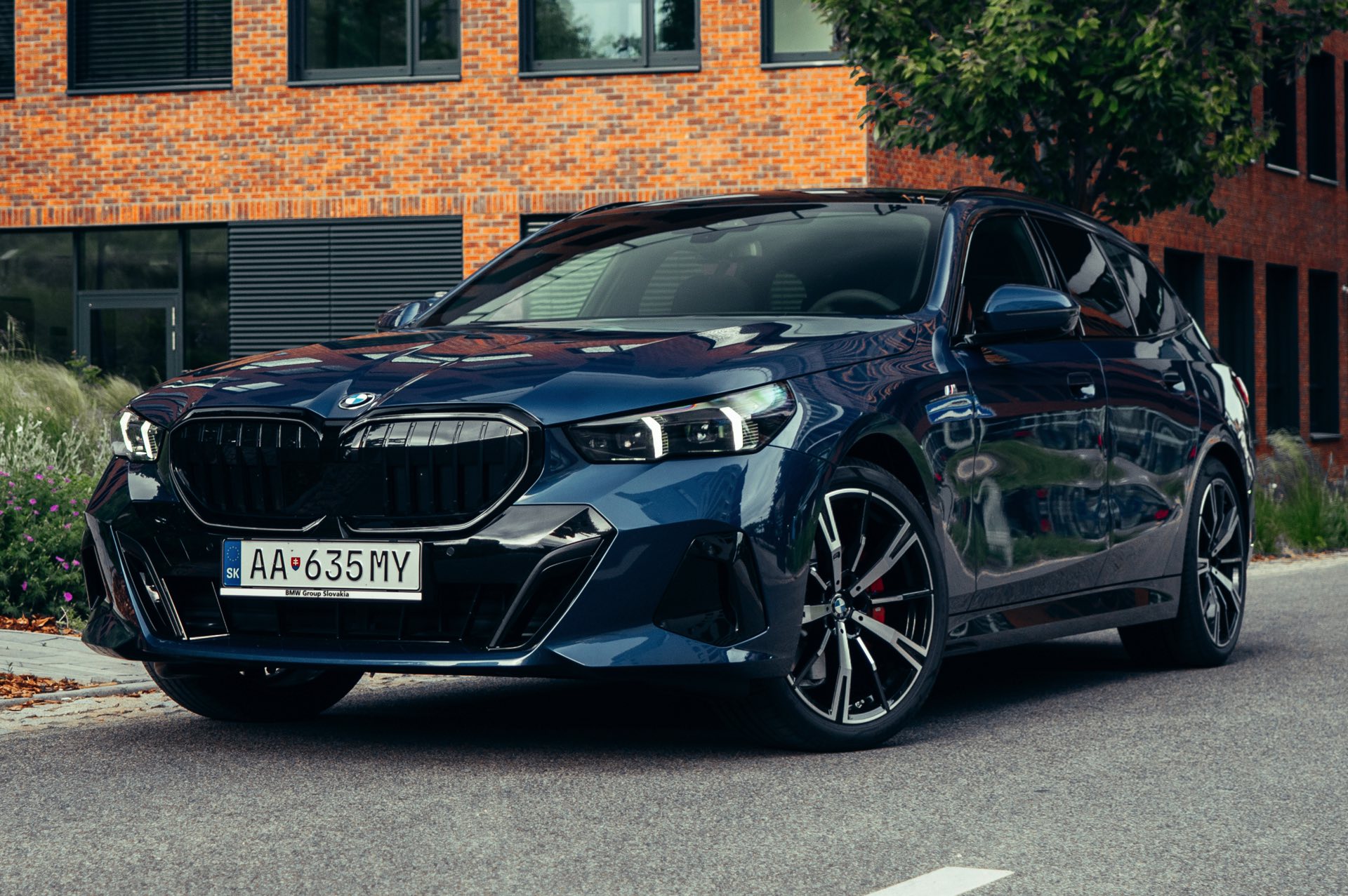 Auf den Fotos aus der Slowakei sehen wir den neuen BMW 5er Touring vorwiegend ohne Sonne auf dem Lack, weshalb sich auch Phytonic Blue eher von seiner dunklen Seite zeigt. Passend dazu präsentiert sich der Edel-Kombi mit dem M Sport Pro-Paket samt Shadow Line mit erweiterten Umfängen, weshalb er unter anderem die schwarz lackierte Variante der beleuchteten Iconic Glow-Niere tragen darf. Was er im Gegensatz dazu nicht tragen darf, sind sichtbare Endrohre: Genau wie alle übrigen bisher vorgestellten 5er der neuen Generation G6x verzichtet auch der BMW 520d xDrive auf jeden sichtbaren Hinweis auf den Verbrennungsmotor an Bord.