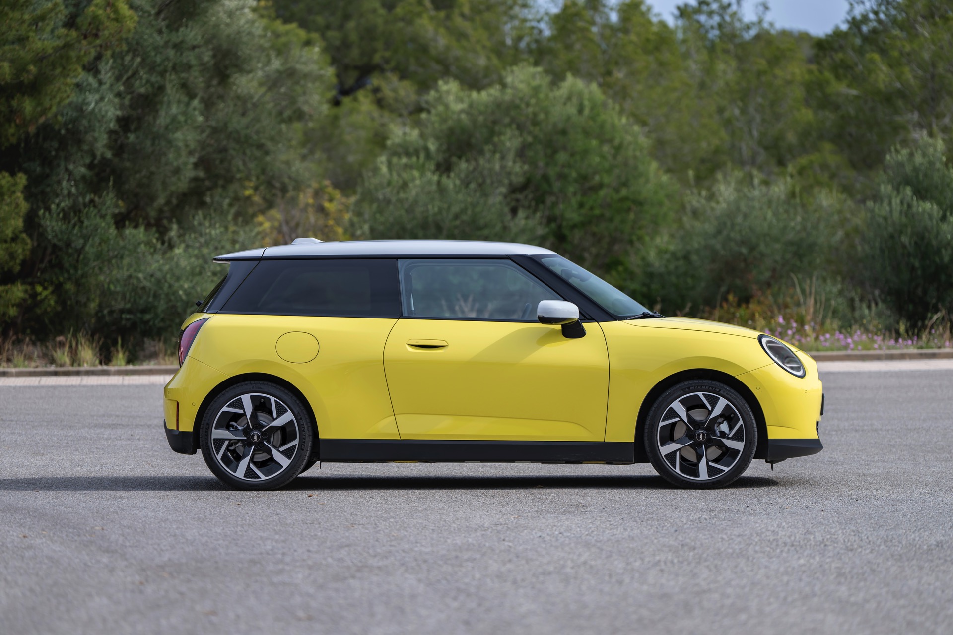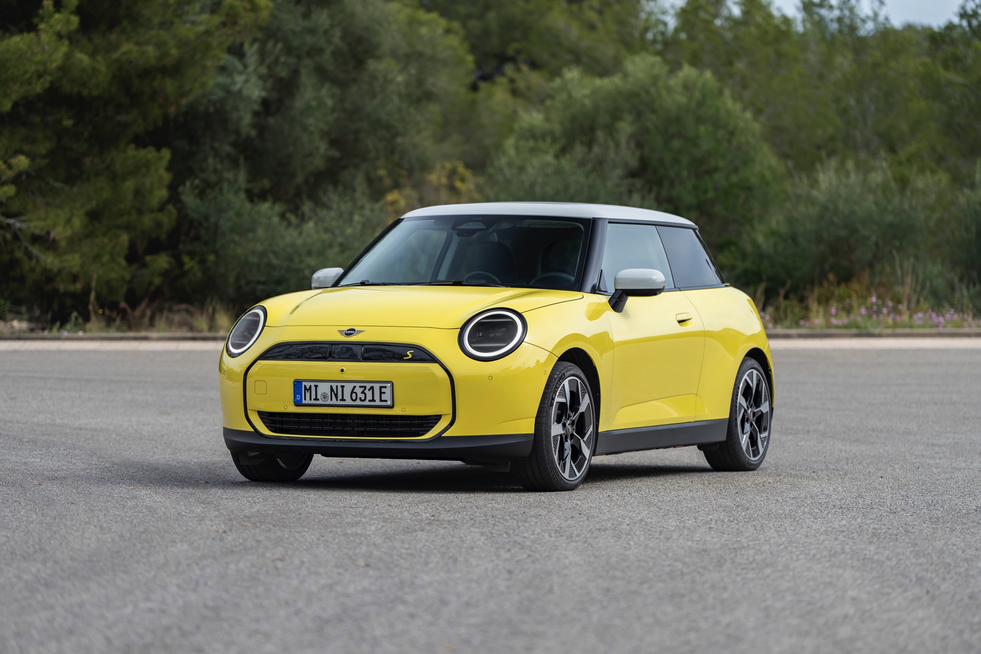 Auf die Sonnenseite des Lebens lädt der neue MINI Cooper (J01) in Sunny Side Yellow. Eine Serie neuer Fotos zeigt uns den Elektro-MINI im Classic Trim, der zwischen den Ausstattungslinien Essential und Favoured platziert ist und damit für viele Kunden einen kosteneffizienten Mittelweg bei der Konfiguration ihres neuen Fahrzeugs darstellen dürfte. Aus Sicht einiger Kunden mag der Classic Trim auch so etwas wie der effektive Einstiegs-Trim sein, weil beim Essential Trim mit Melting Silver und Midnight Black nur zwei eher gedeckte Farben zur Wahl stehen – wer den Kleinwagen also farbenfroh fahren will, muss mindestens zum Classic Trim greifen und kann dann neben Sunny Side Yellow auch Chili Red, Blazing Blue und Nanuq White wählen.