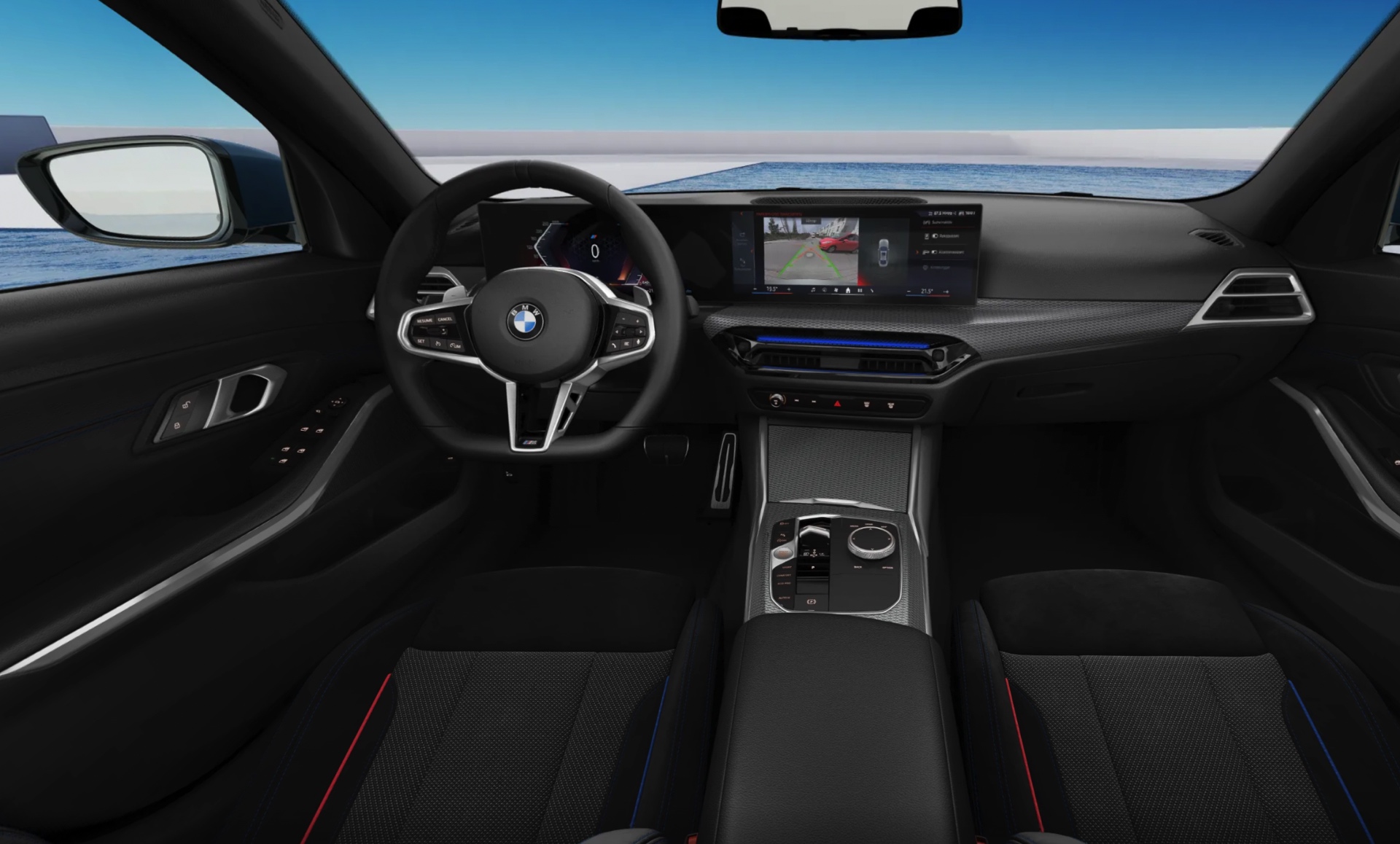 Mindestens so spannend wie die neuen Exterieur-Optionen ist das neue Cockpit, denn hier fallen die Änderungen unabhängig von der Konfiguration relativ groß aus: Wie schon im 4er Facelift 2024 gibt es eine völlig neue Form der Ambientebeleuchtung, die aus der zentralen Lüftungsdüse unterhalb des CurvedDisplays hervorgeht. Außerdem kommt die neue Lenkrad-Generation zum Einsatz – mit Zwei-Speichen-Lenkrad in der Basis und einem neuen M Sport-Lenkrad, das allerdings nur in Verbindung mit dem M Sport-Paket erhältlich ist. Wer also weiterhin ein Drei-Speichen-Lenkrad in den Händen halten will, muss zwingend auch das teure Sportpaket erwerben.