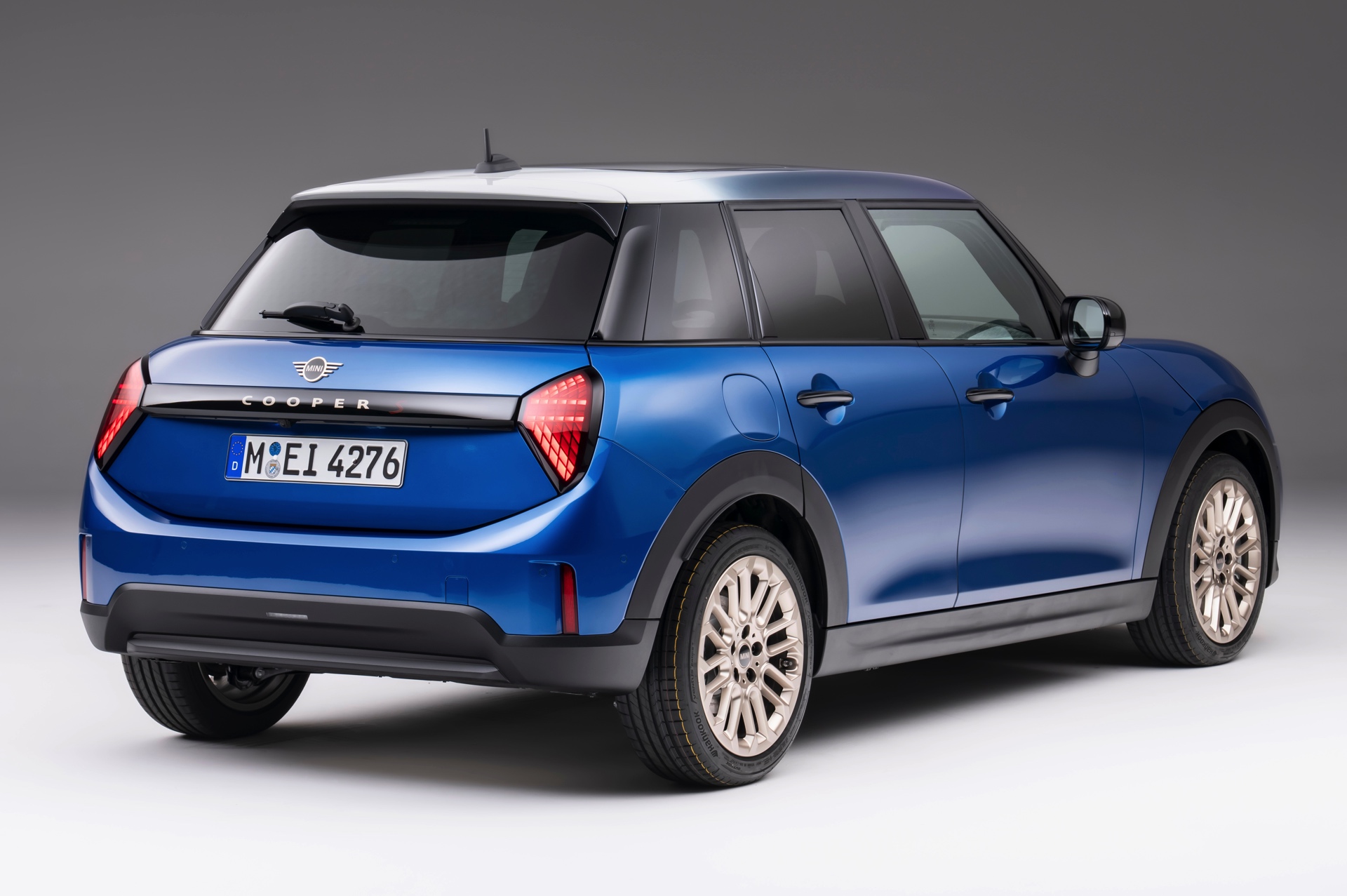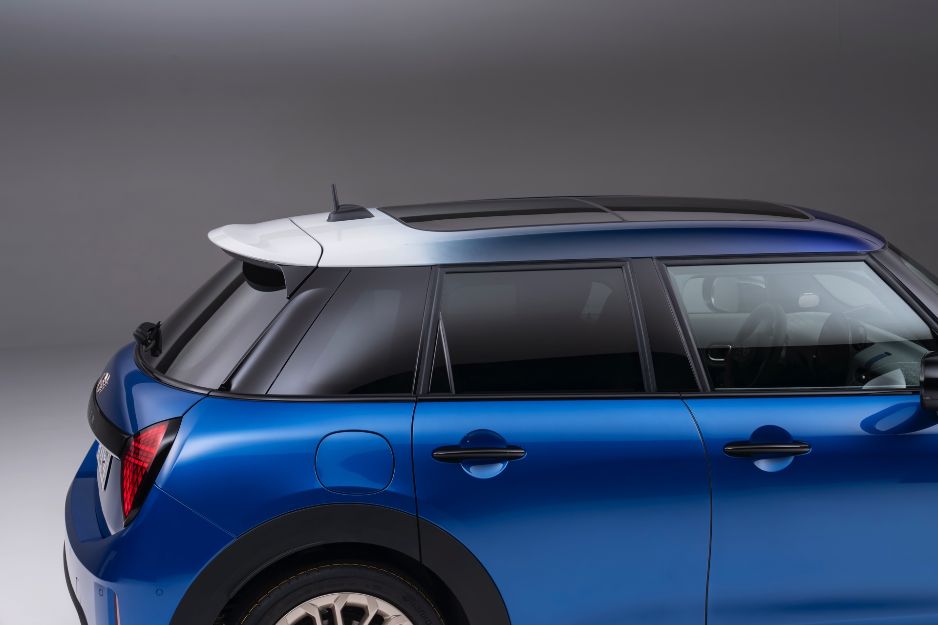 Im Vergleich zum immer elektrischen und stets dreitürigen J01 ist der fünftürige F65 genau wie der dreitürige F66 anhand der nicht flächenbündig integrierten Türgriffe und der in schwarzer Kontrastfarbe abgesetzten Radhaus-Blenden recht gut erkennbar. Auf die sichtbaren Endrohre, die gerade die stärkeren Varianten des Vorgängers zum Hingucker machen konnten, müssen Kunden beim F65 allerdings ebenso verzichten wie bei anderen neuen Modellen – natürlich mit Ausnahme des MINI John Cooper Works (F66).