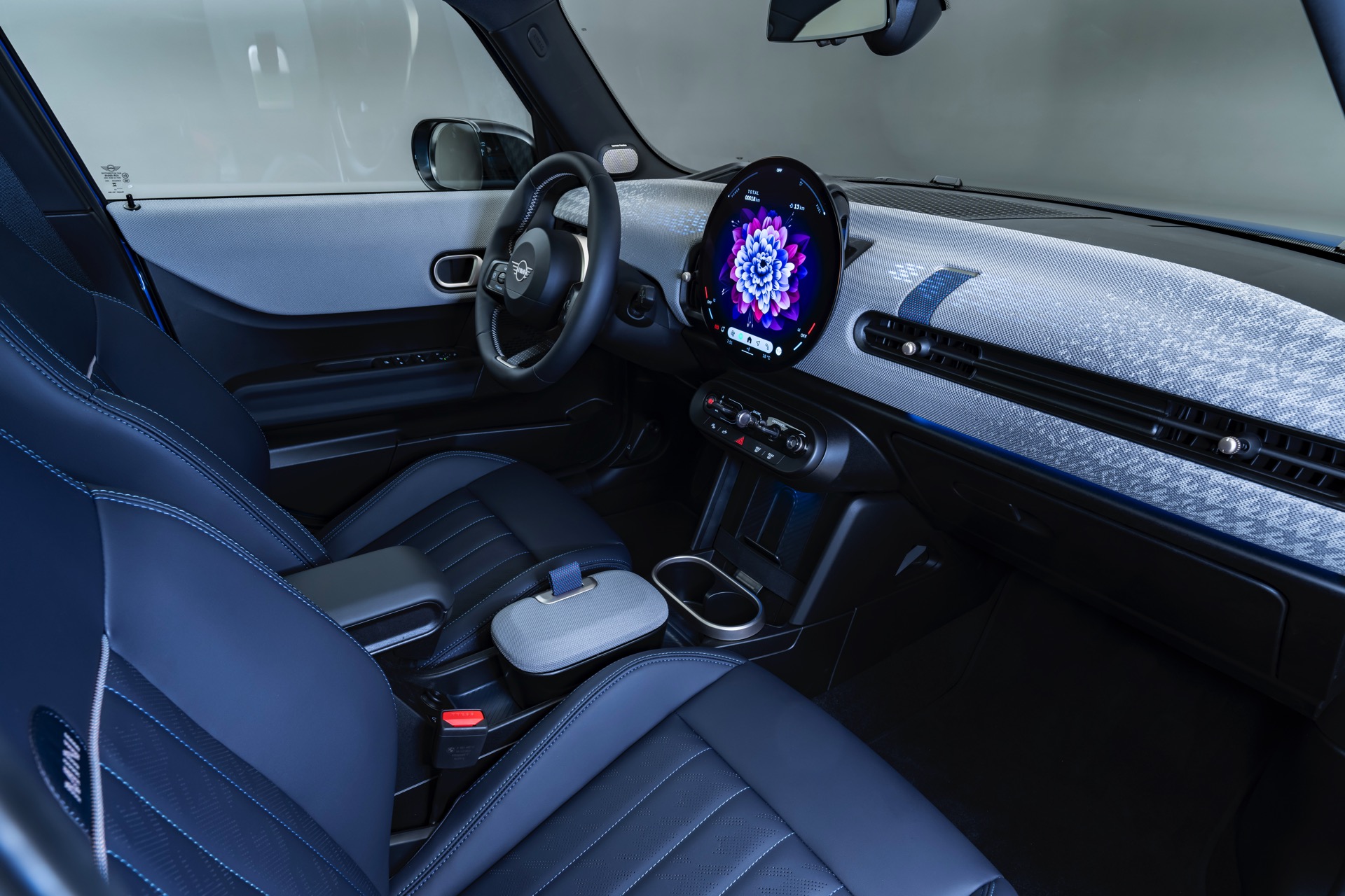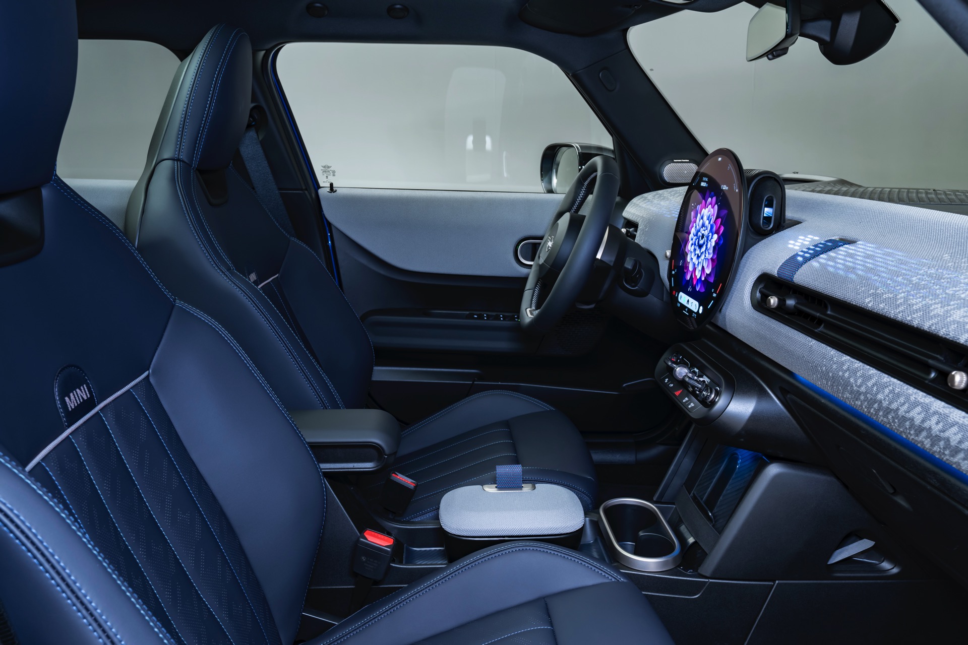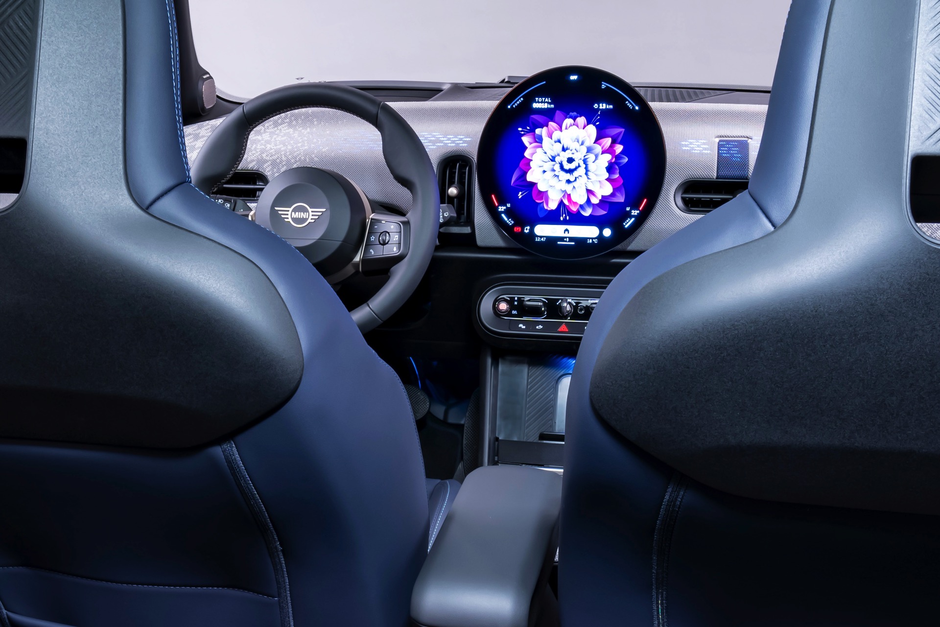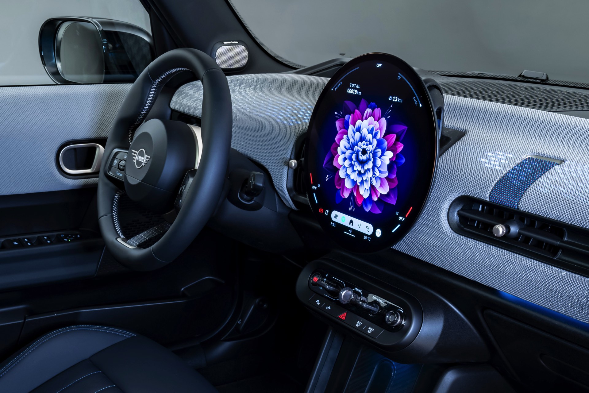 Ganz eng am aktuellen Familien-Look präsentiert sich das Interieur des neuen MINI Fünftürers 2024: Wie schon bei anderen Neuheiten der letzten Monate stehen mit Textilien bezogene Oberflächen und das 24 Zentimeter große, kreisrunde OLED-Display als Bühne für das Operating System 9 im Fokus.