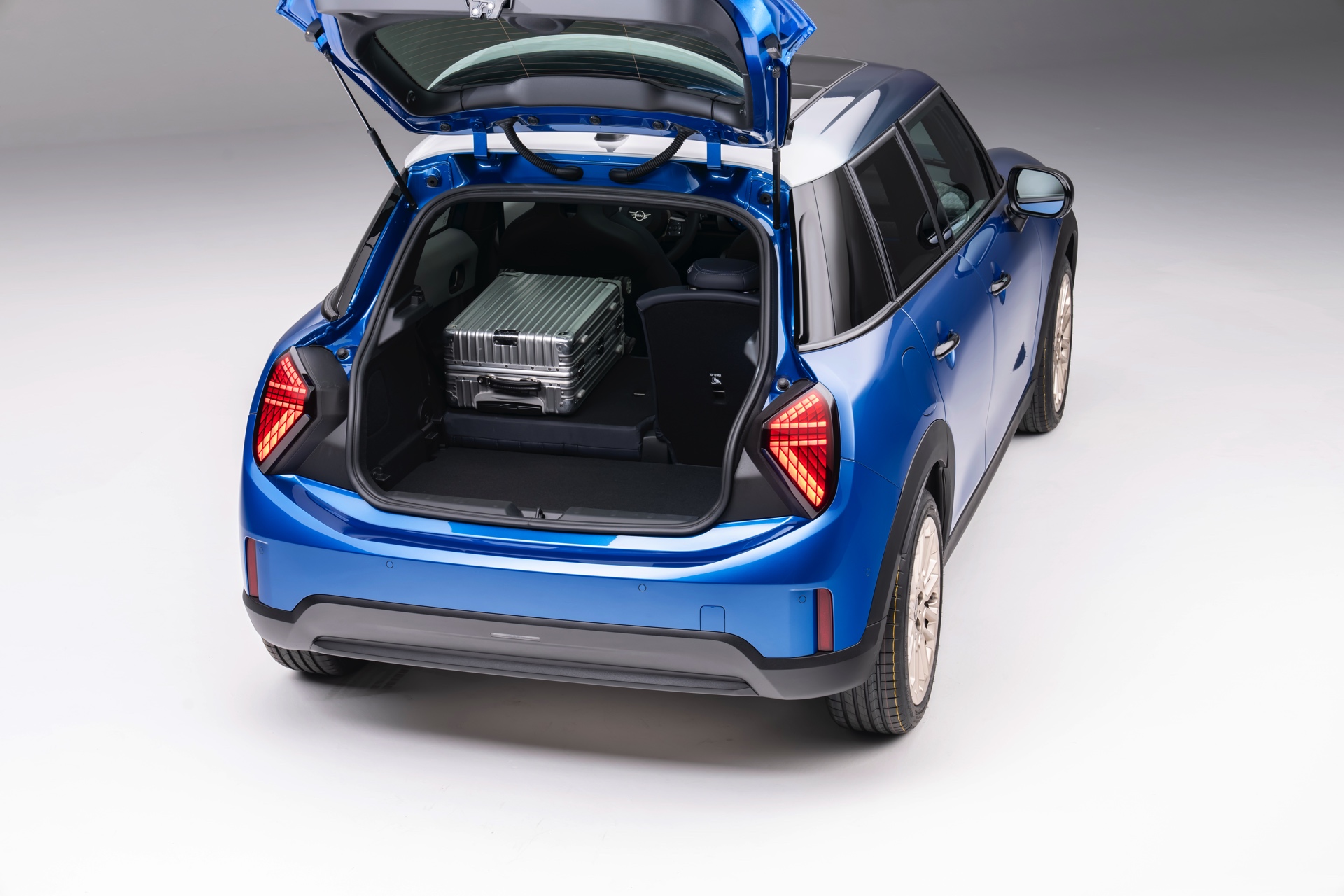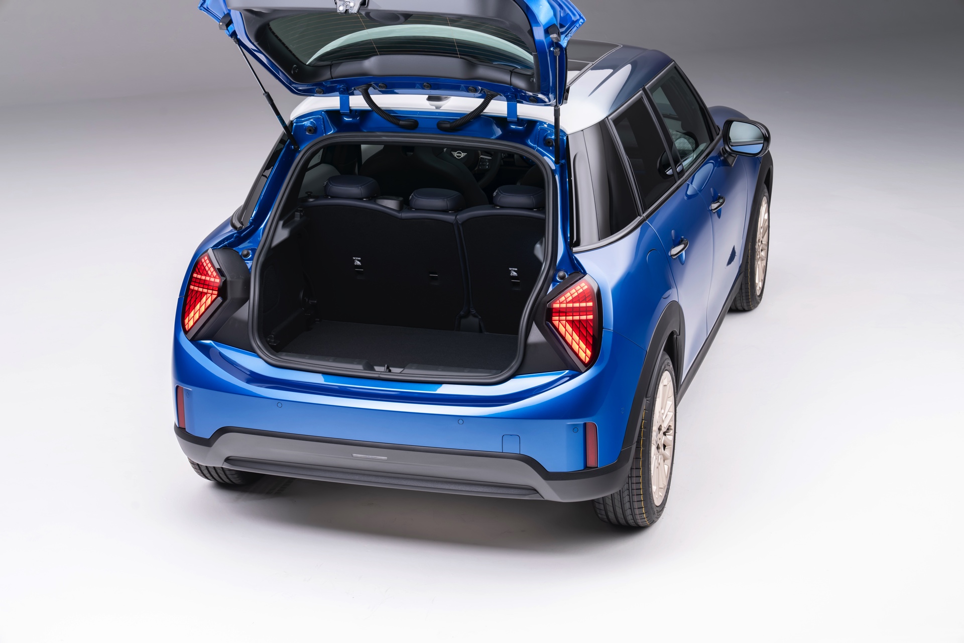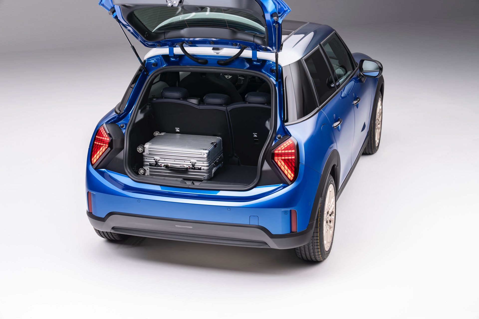 Das größere Platzangebot des MINI Cooper Fünftürers kommt wie bei anderen Langversionen in erster Linie den Fond-Passagieren zugute. Diese dürfen sich nicht nur über mehr Beinfreiheit und einen wesentlich bequemeren Einstieg freuen, sondern können auch mehr Gepäck mitnehmen: 275 bis 925 Liter Kofferraum-Volumen – 65 bis 200 Liter mehr als im Dreitürer. Den gewachsenen Dimensionen zum Trotz erinnert auch der neue 5-Türer aus vielen Perspektiven stark an den F66 und somit an den elektrischen MINI Cooper (J01). Speziell das neue Design von Schürzen, Scheinwerfern und Rückleuchten sorgt dafür, dass sich der neue Fünftürer klar von seinem Vorgänger unterscheidet.