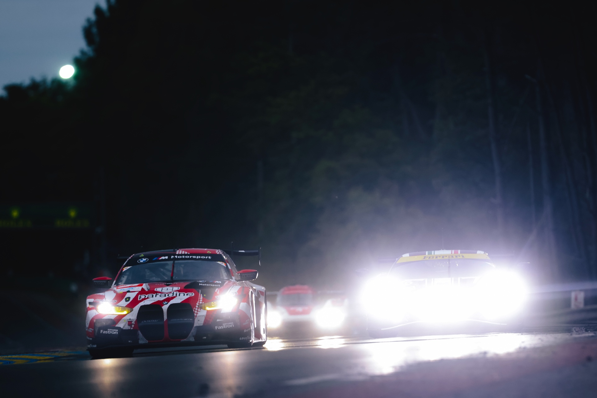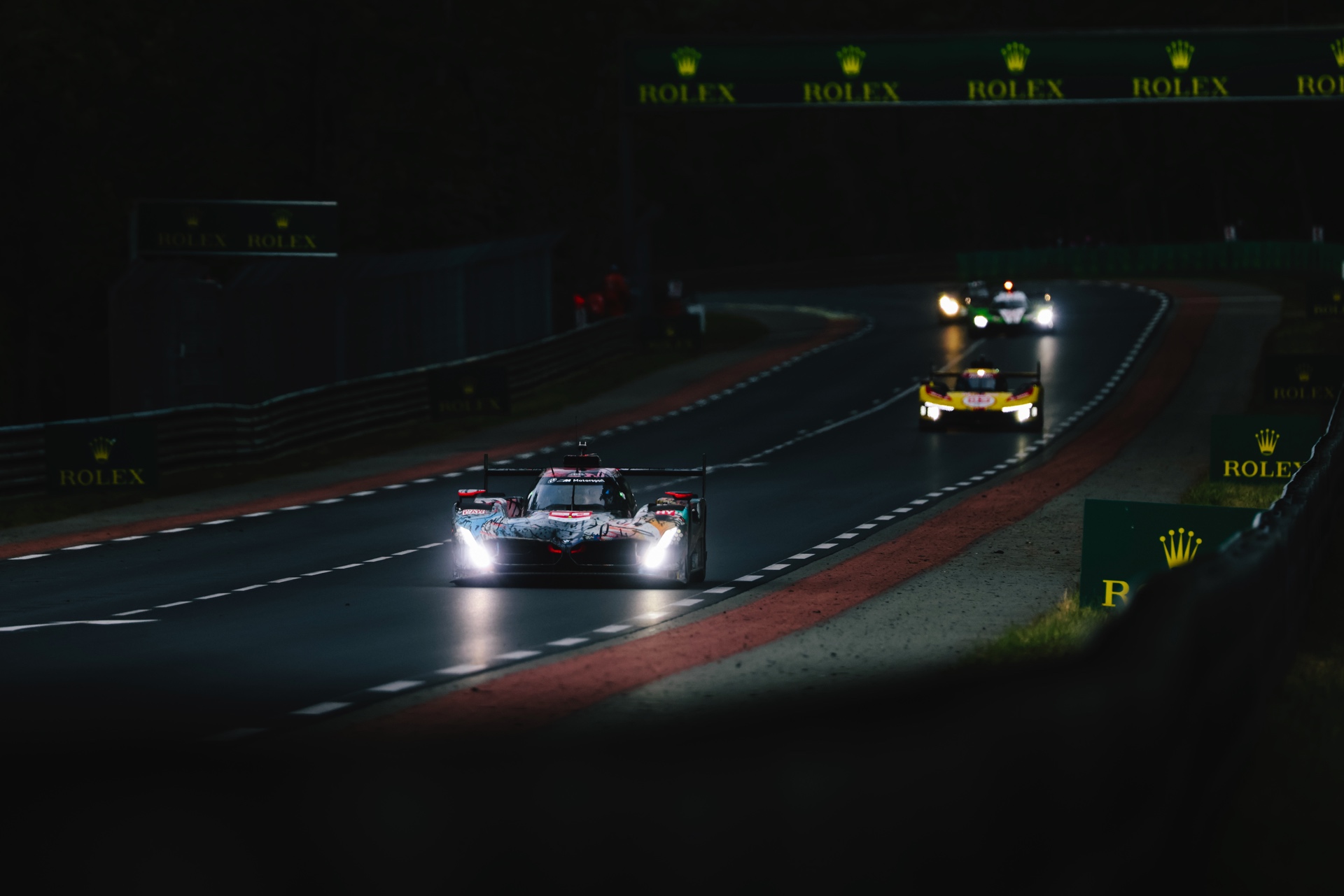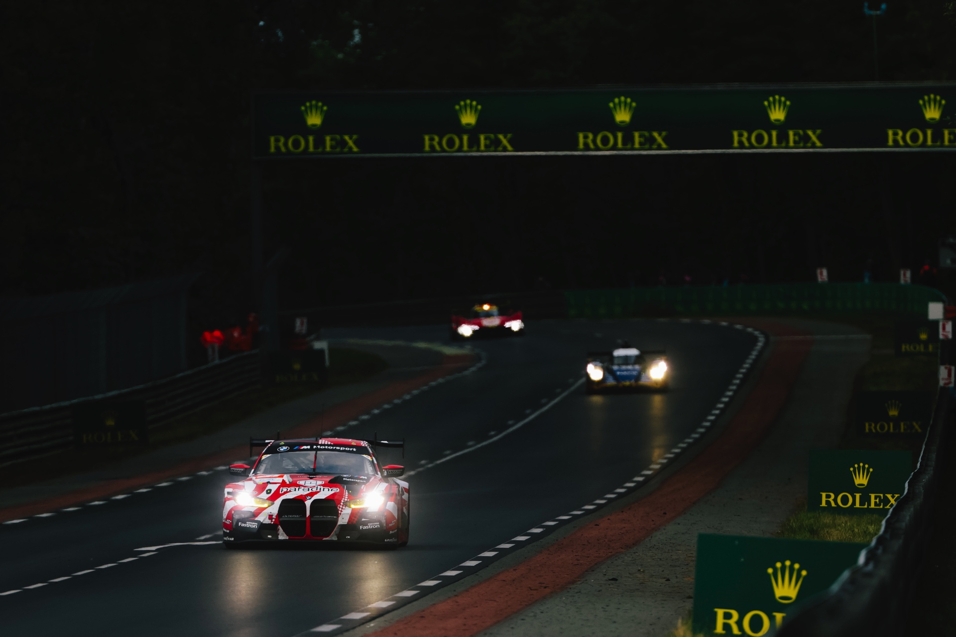 Als rasendes Trostpflaster waren fortan nur noch die beiden BMW M4 GT3 im Rennen, doch hier lief längst nicht alles nach Plan: Der unter anderem von Valentino Rossi und Maxime Martin pilotierte M4 mit der Startnummer 46 hatte sich zu Beginn der Nacht in der Spitze festgesetzt und zählte zu diesem Zeitpunkt zu den Favoriten auf den Sieg in der LMGT3, doch nach einem Unfall von Ahmad Al Harthy mussten die Hoffnungen auch hier begraben werden. Nun schlug die Stunde des einzig verbleibenden BMW M4 GT3 mit der Startnummer 31, der zuvor klar im Schatten der 46 stand: Augusto Farfus, Sean Gelael und Darren Leung setzten jetzt voll auf Attacke und konnten sich immer weiter nach vorne arbeiten. "