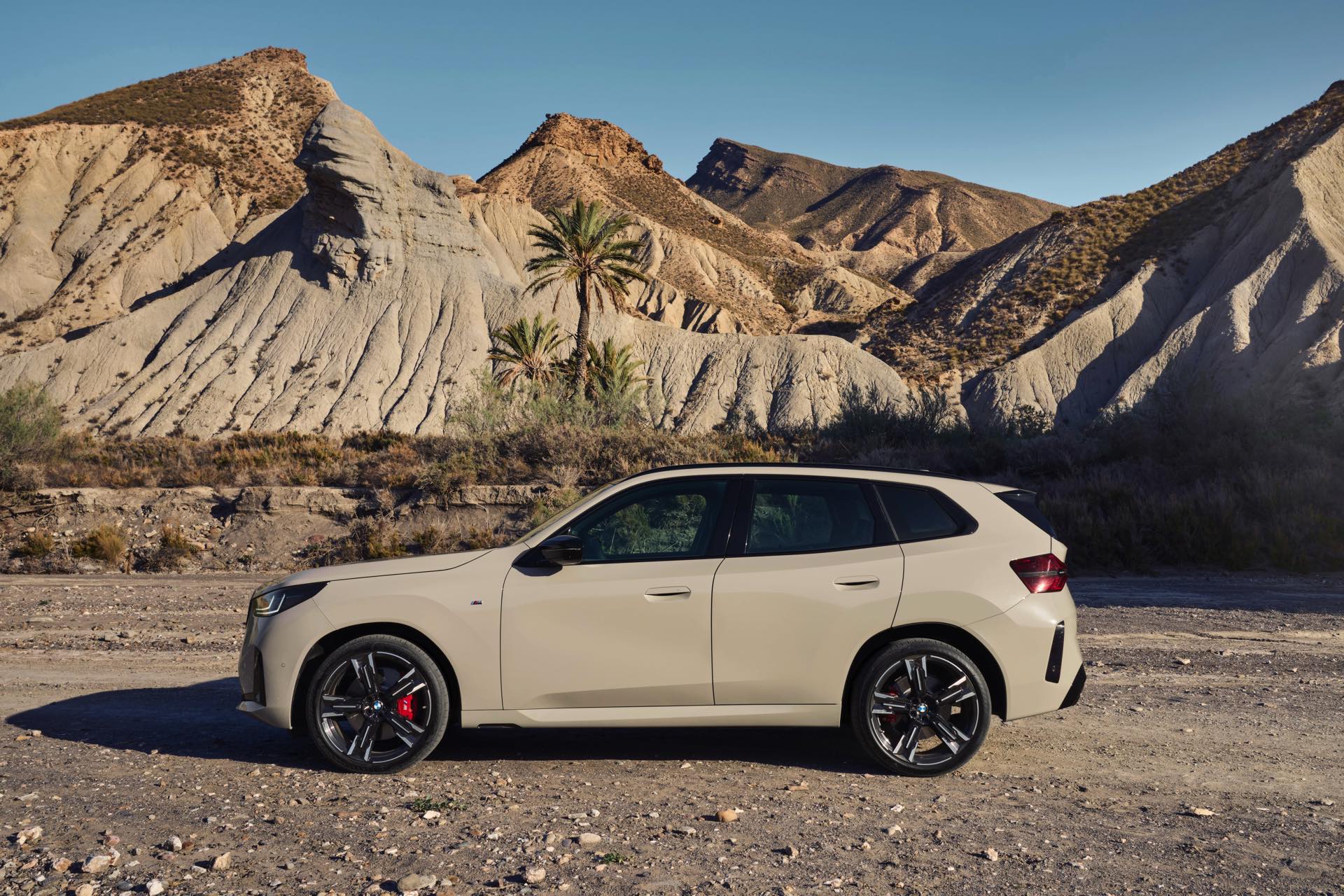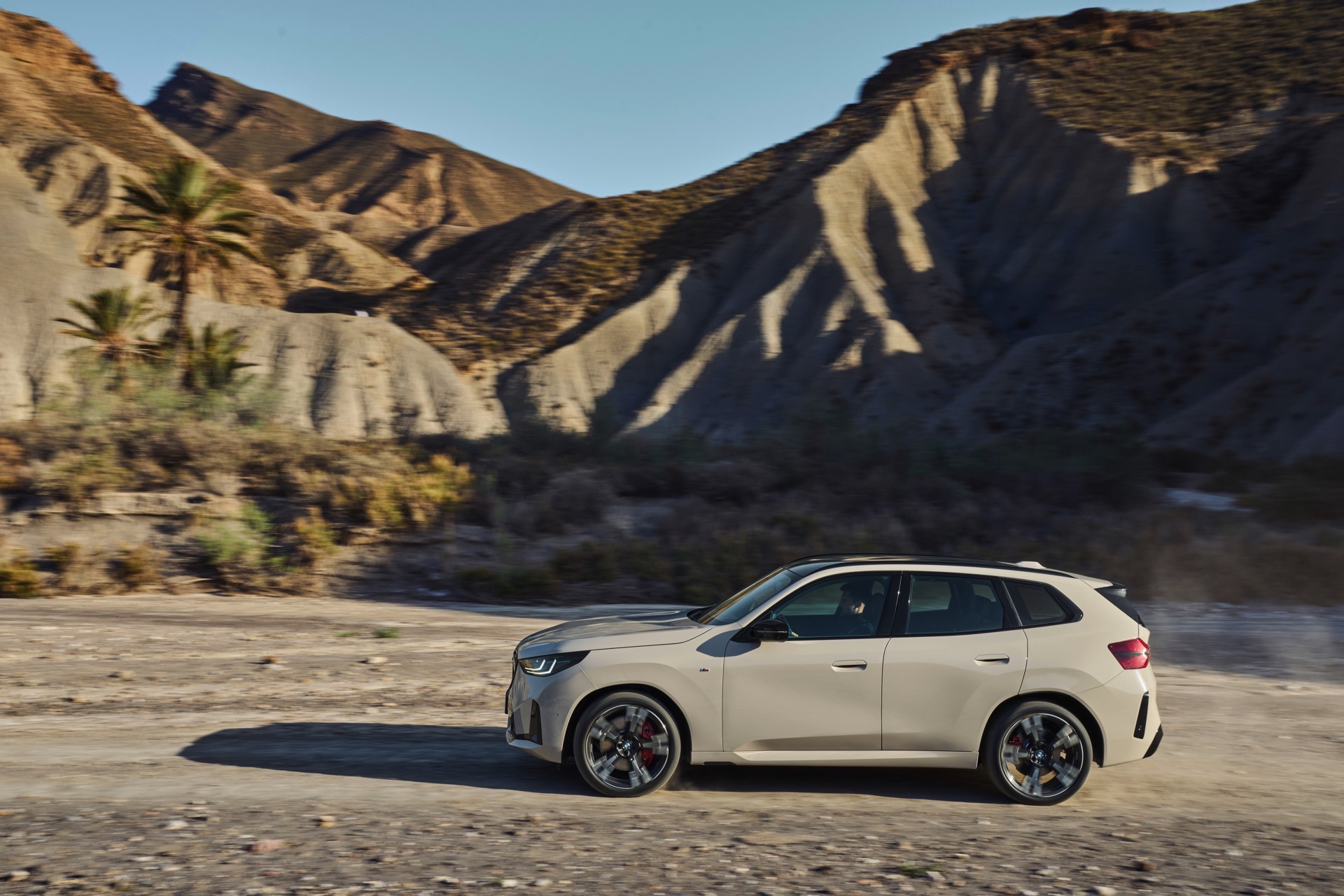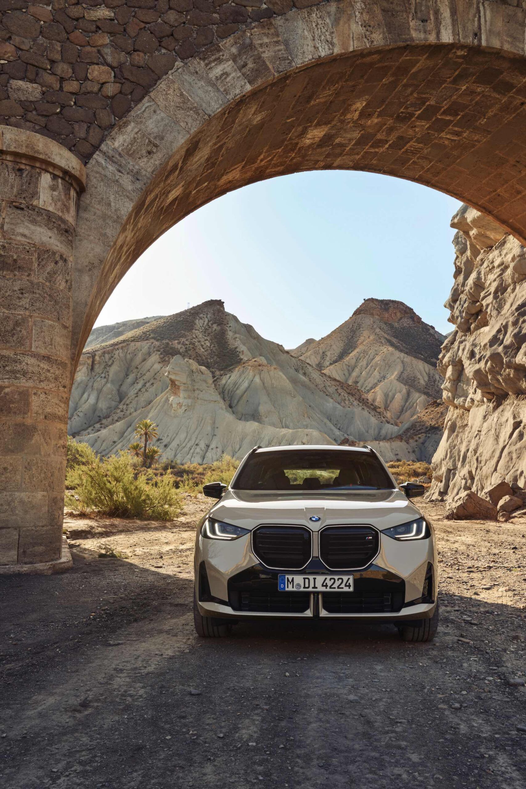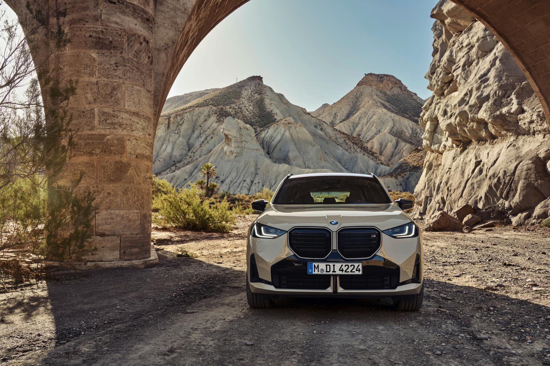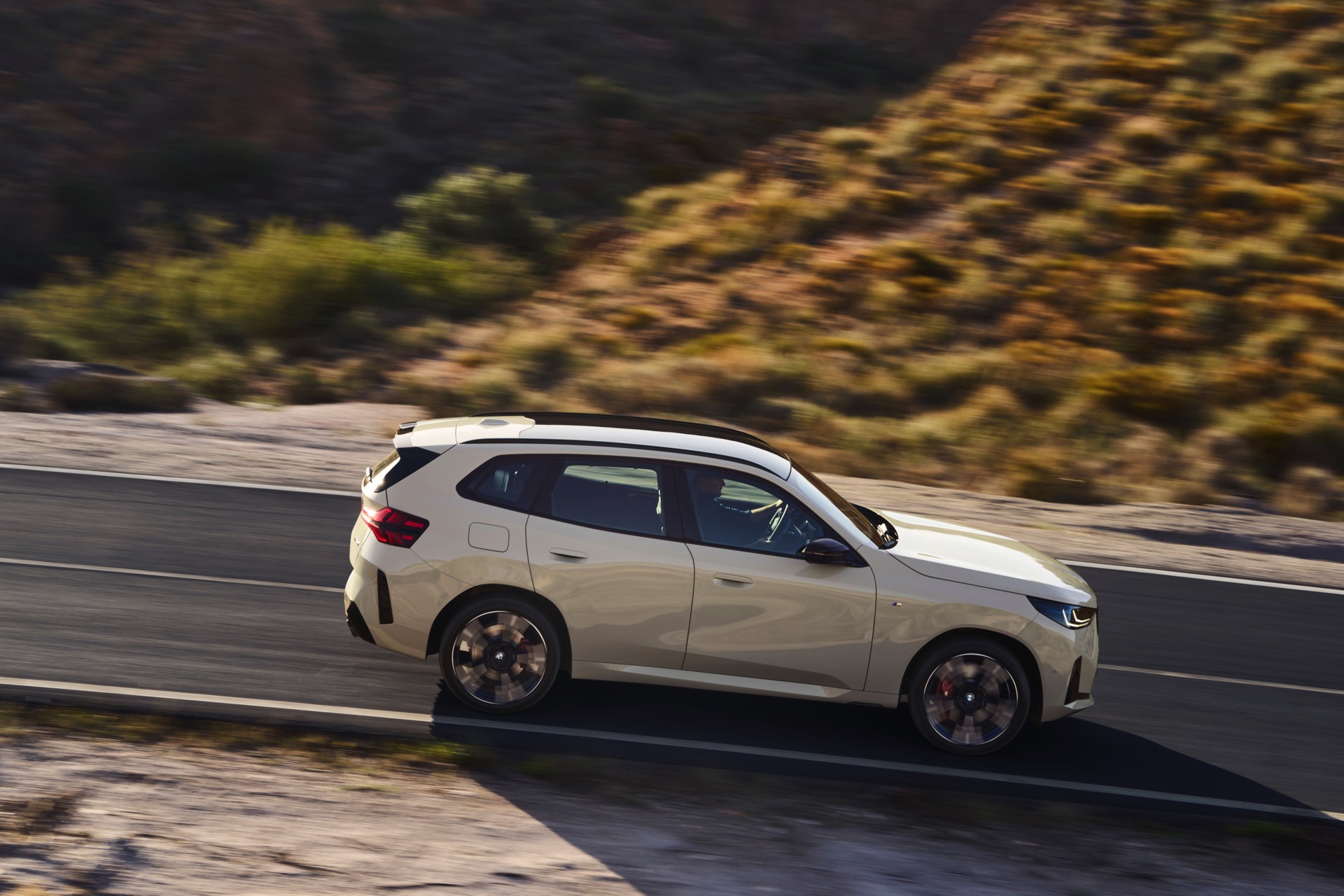 Auf den ersten Fotos sehen wir den neuen BMW X3 M50 in der neuen Farbe Dune Grey Metallic, deren sanfter Gelbton an Sandwüsten und Dünen erinnert. Zur Abgrenzung von den schwächeren Varianten des neuen X3 trägt der M50 eine exklusive Niere mit horizontalen Streben, M Außenspiegel und eine Abgasanlage mit vier Endrohren. In den Radhäusern des X3 M50 kommen serienmäßig 20 Zoll-Felgen zum Einsatz, auf Wunsch stehen auch 21-Zöller zur Wahl.