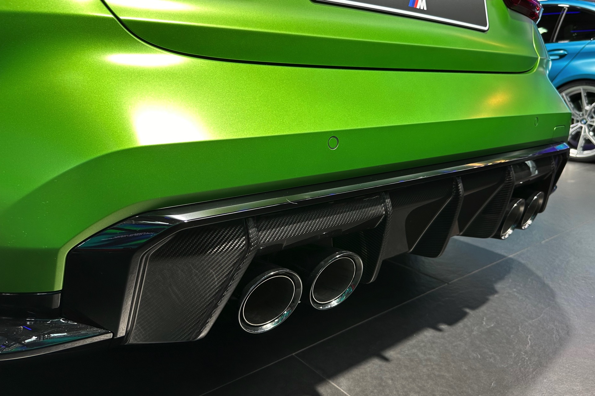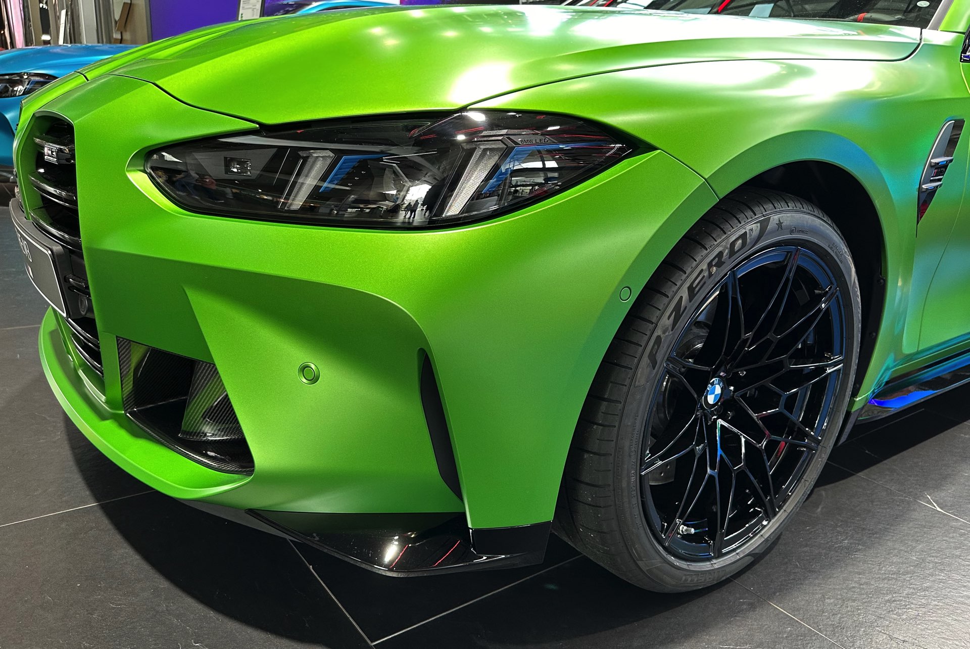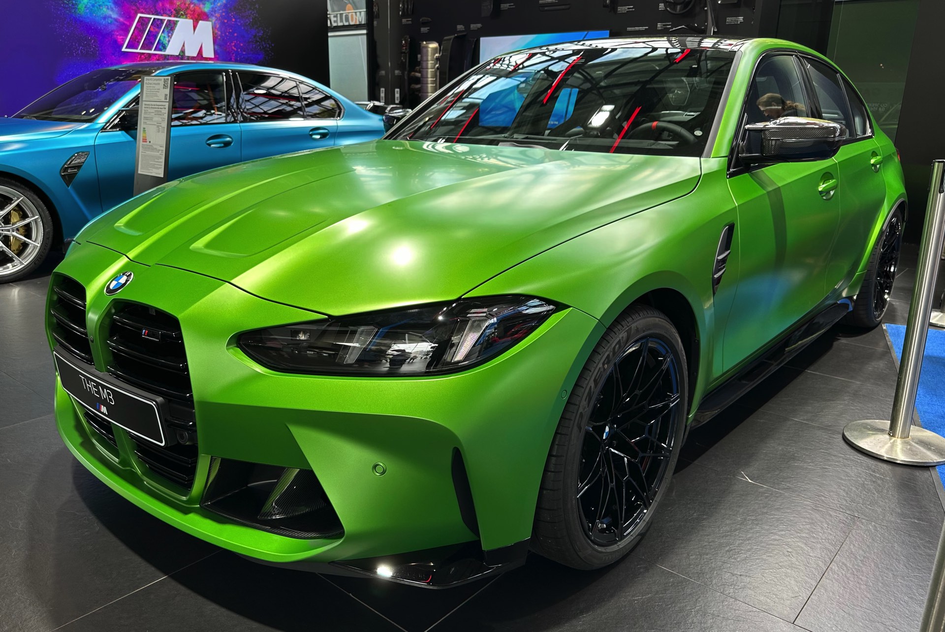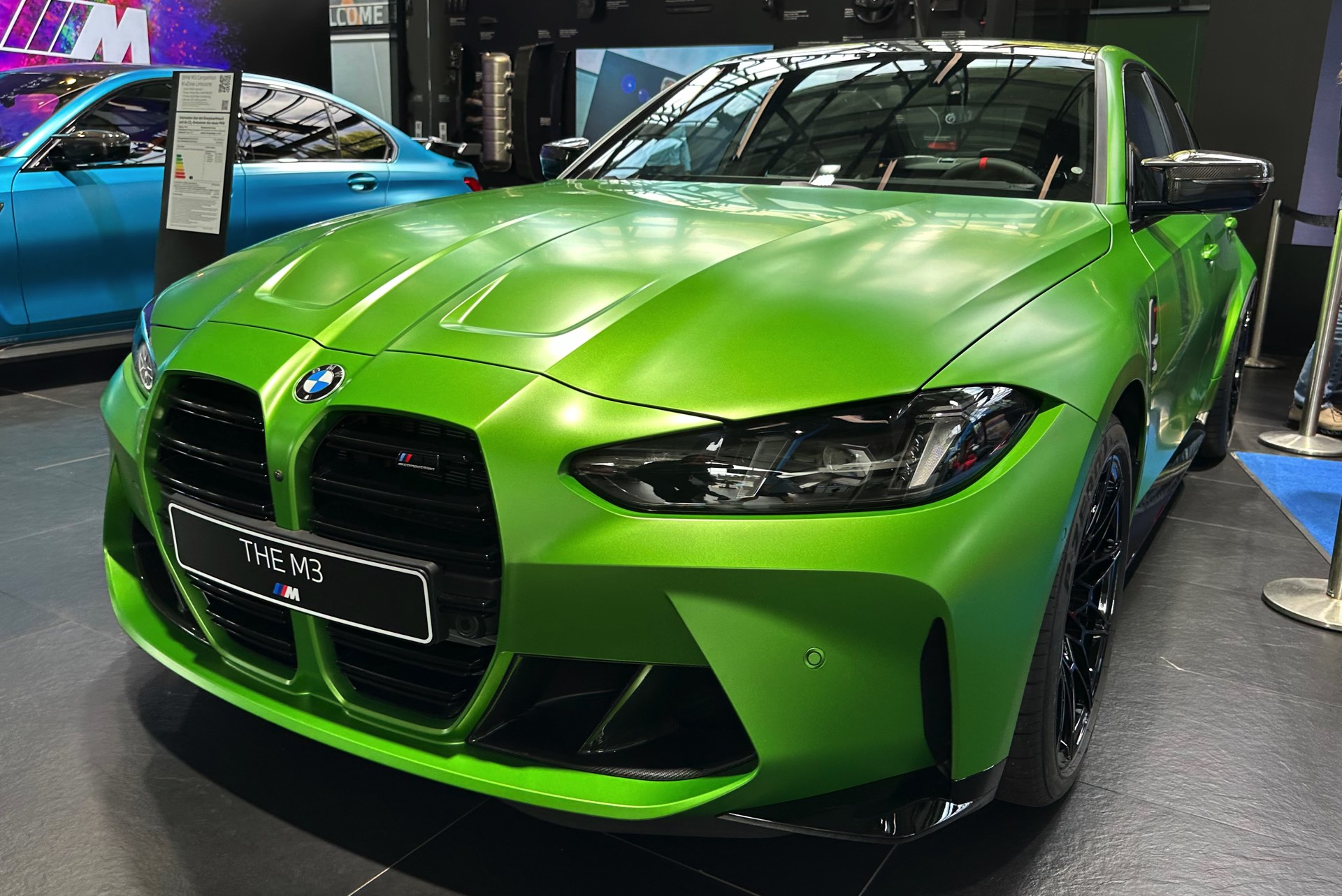 Dass Frozen Tampa Bay Green auch auf anderen aktuellen Modellen für eine spannende Optik sorgen kann, hat das matte Grün bereits auf dem BMW X2 M35i (U10) gezeigt. Generell steht die Lackierung natürlich in scharfer Konkurrenz zu anderen krassen Farben, wie auch der direkt daneben gezeigte BMW M3 in Frozen Tulum Blue deutlich macht.