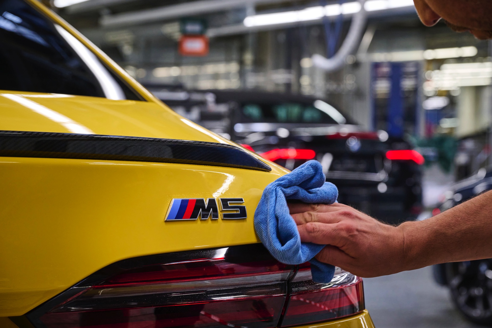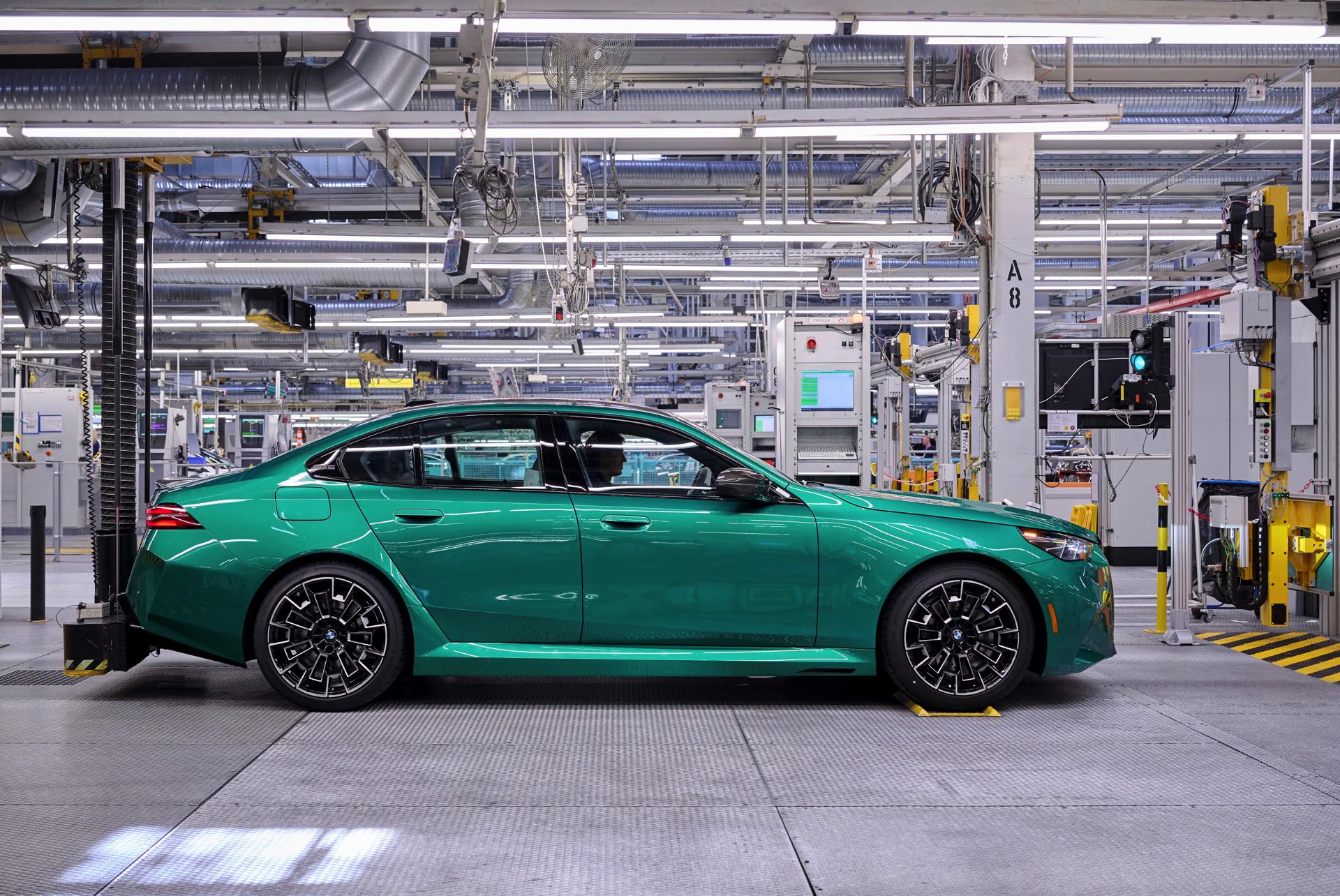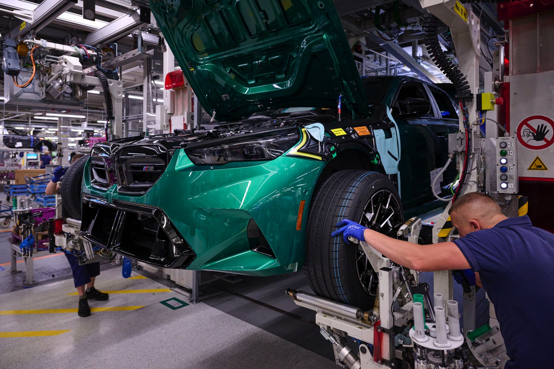 Einige weitere Fotos zeigen die Produktion am Beispiel eines neuen BMW M5 in Isle of Man Green, allerdings ist diese Farbe bereits auf den Launch-Fotos in aller Ausführlichkeit zu sehen gewesen: