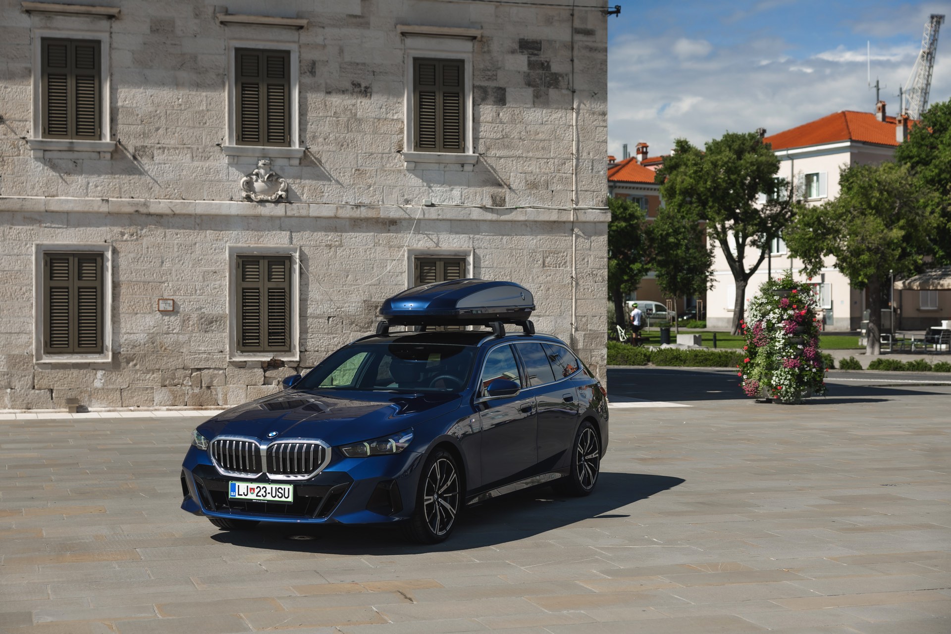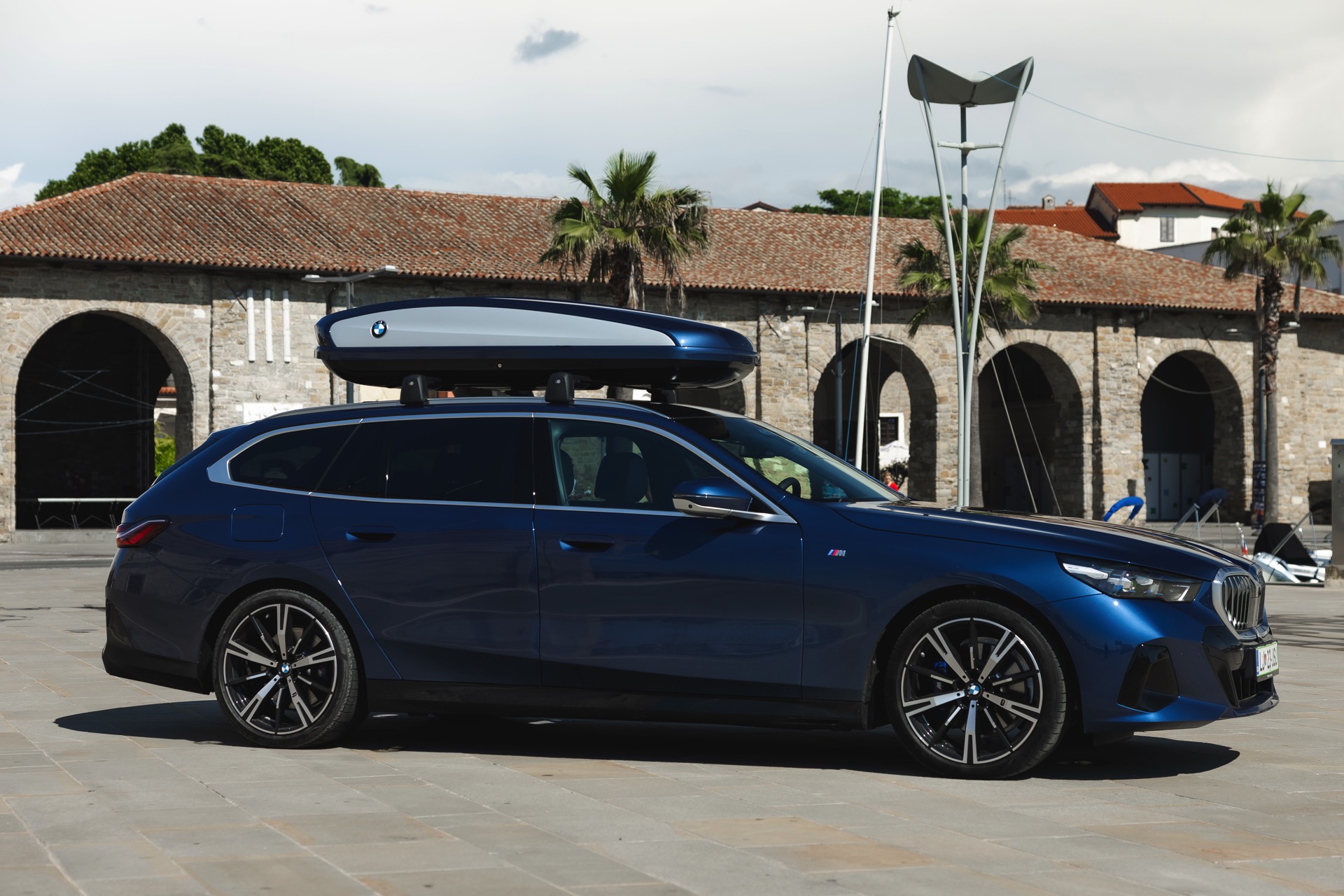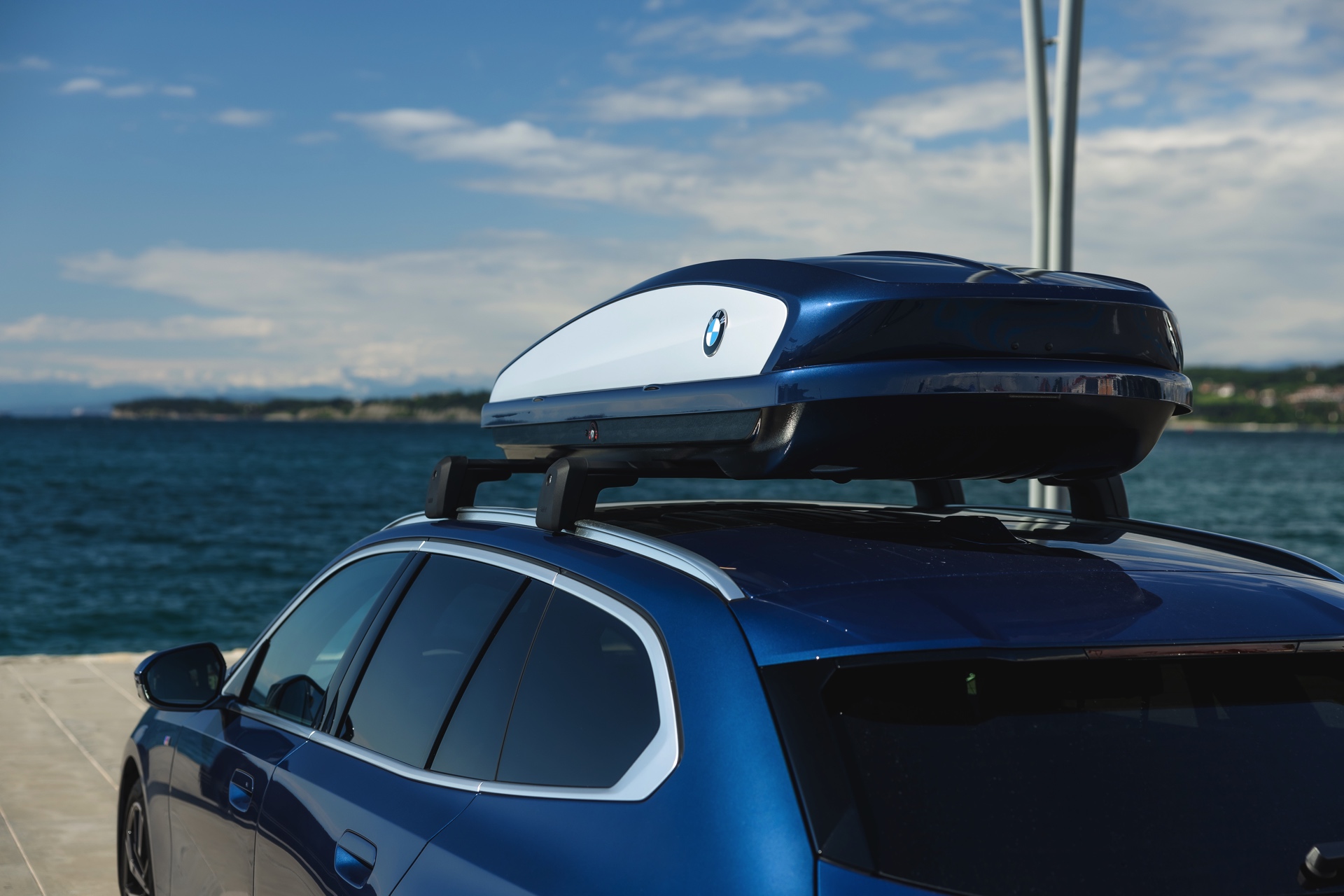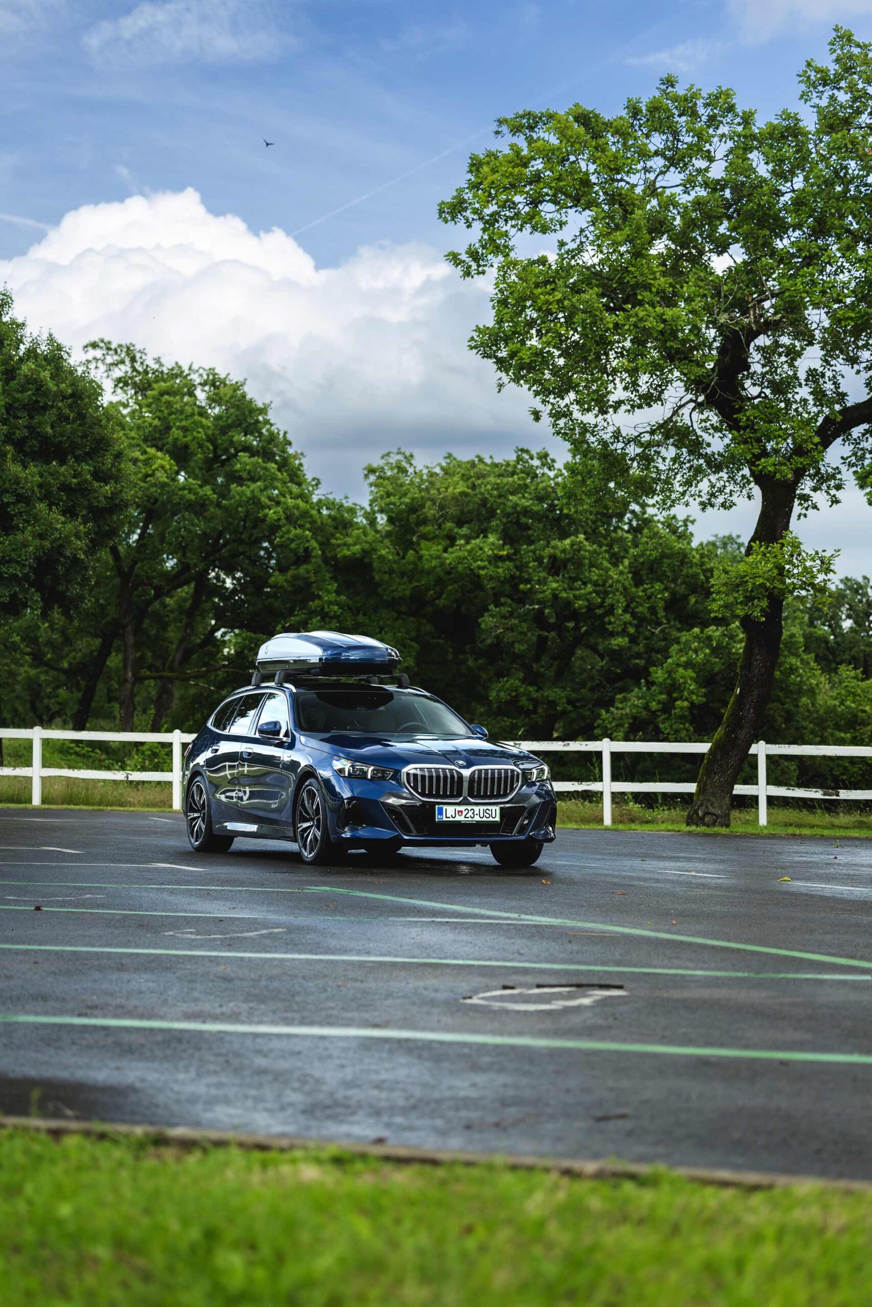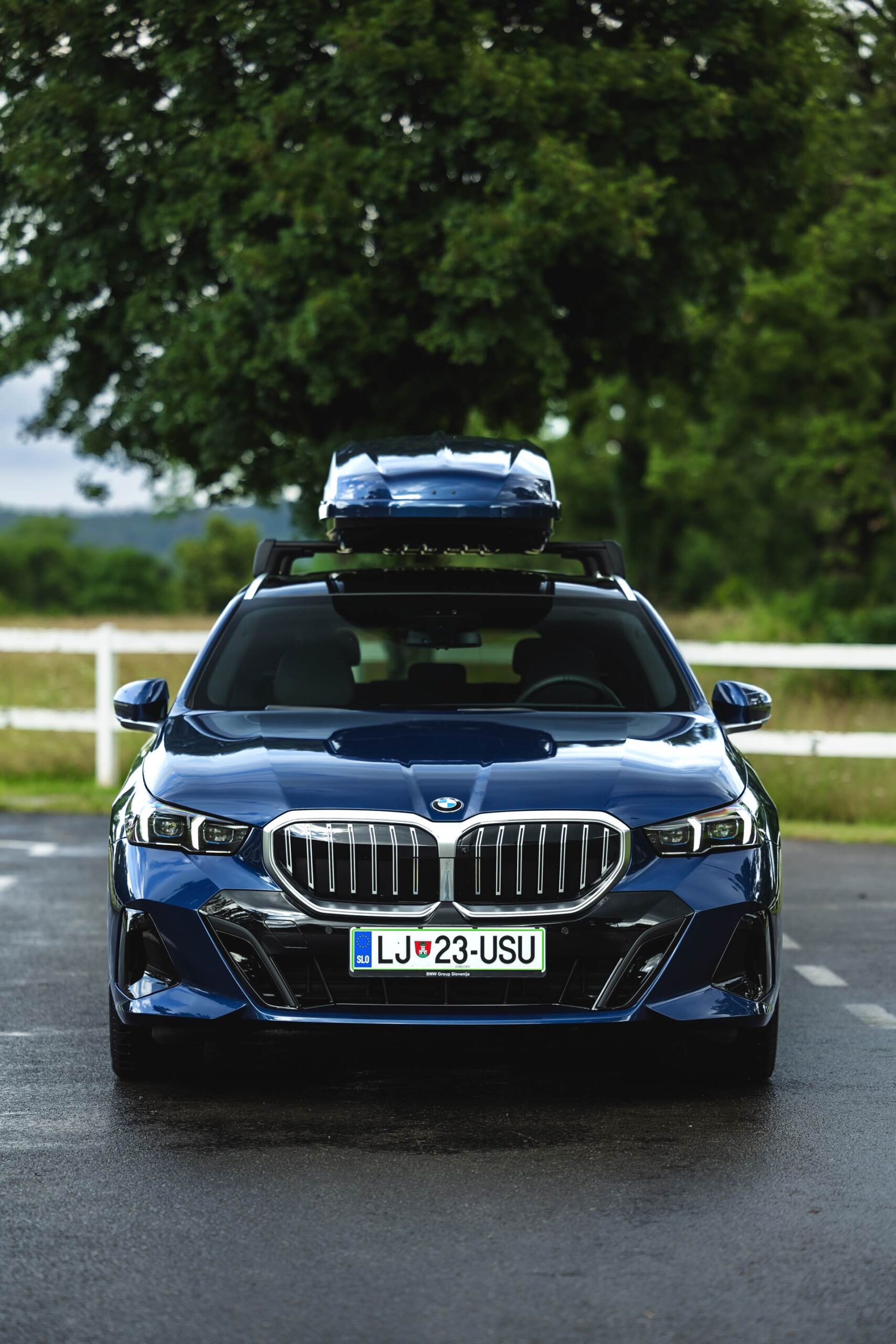 Genau diese Konfiguration sehen wir nun in einem neuen Foto-Set aus Slowenien, denn im Fokus steht der neue BMW 520d Touring mit M Sportpaket, Lackierung in Phytonic Blau und der BMW Dachbox 520, die mit einer Bicolor-Lackierung in Silber und Phytonic Blau glänzt. In der äußerlich 2,35 Meter langen, 94 Zentimeter breiten und 41 Zentimeter hohen Dachbox lassen sich bis zu 8 Paar Ski mit einer Länge von bis zu 220 Zentimetern, aber natürlich auch unzählige andere Dinge unterbringen.
