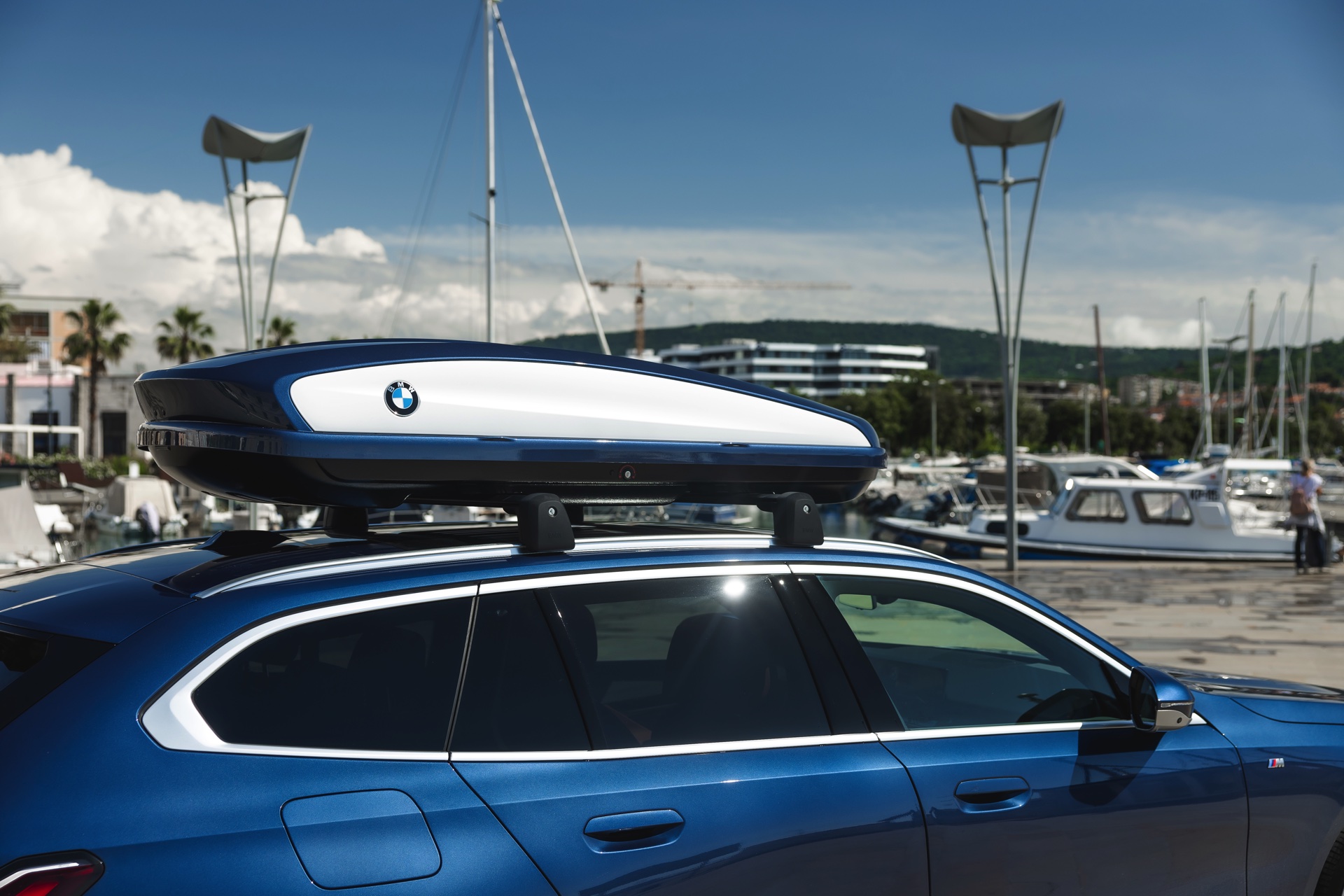 Mit 570 bis 1.700 Liter Kofferraum-Volumen bietet der neue BMW 5er Touring (G61) zweifellos einen üppigen Stauraum, aber bei mancher Urlaubsfahrt mit der ganzen Familie ist selbst dieses Platzangebot nicht ausreichend. Abhilfe kann eine Dachbox schaffen, in der sich viele weitere Dinge ebenso sicher wie stilvoll transportieren lassen – letzteres vor allem dann, wenn die Dachbox mit Elementen in Wagenfarbe glänzt und damit zu einem stimmigen Gesamtbild beiträgt.