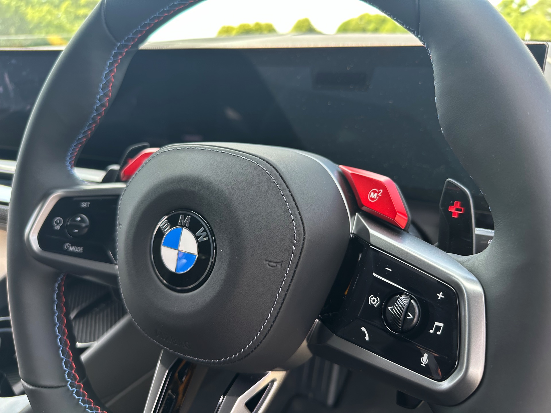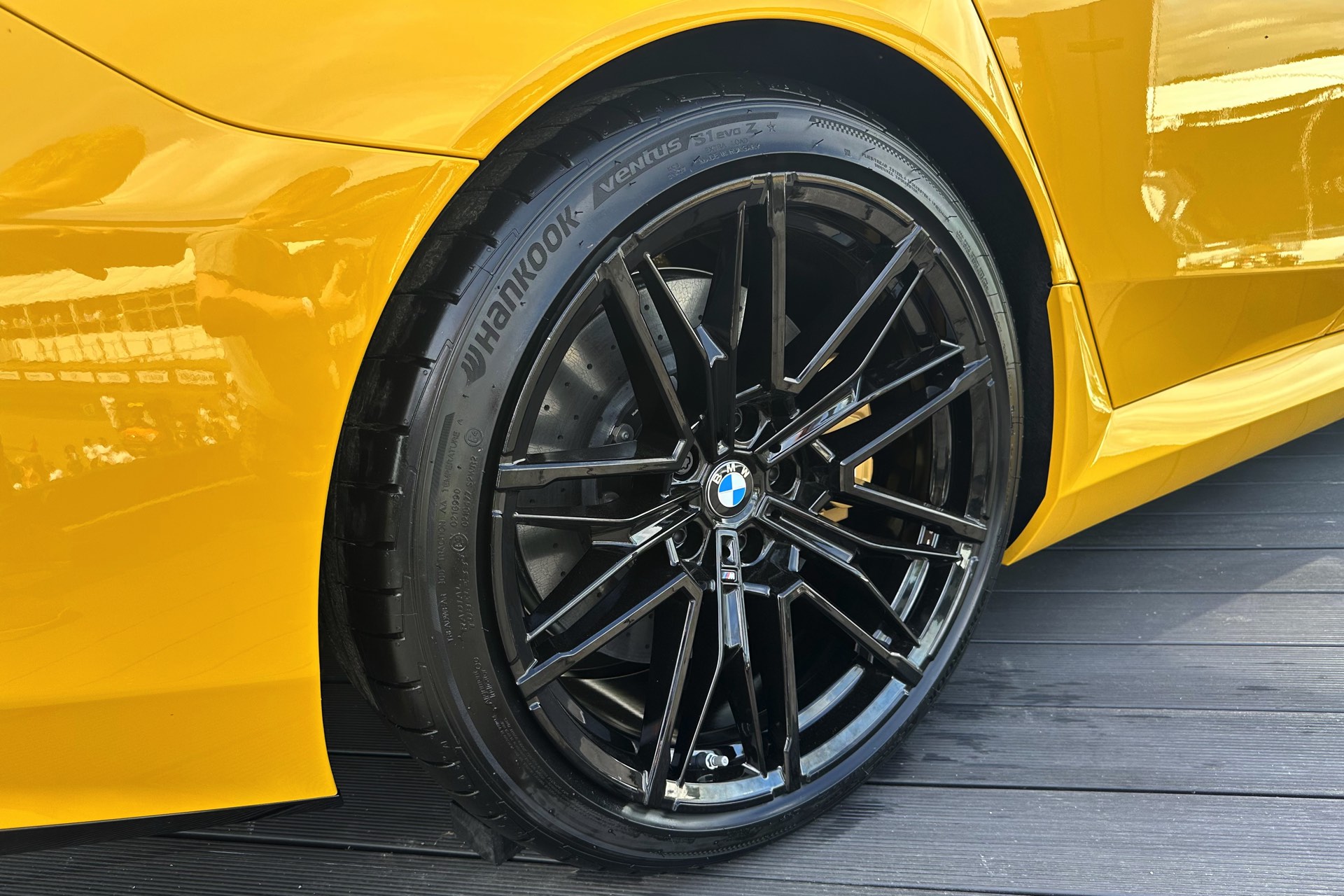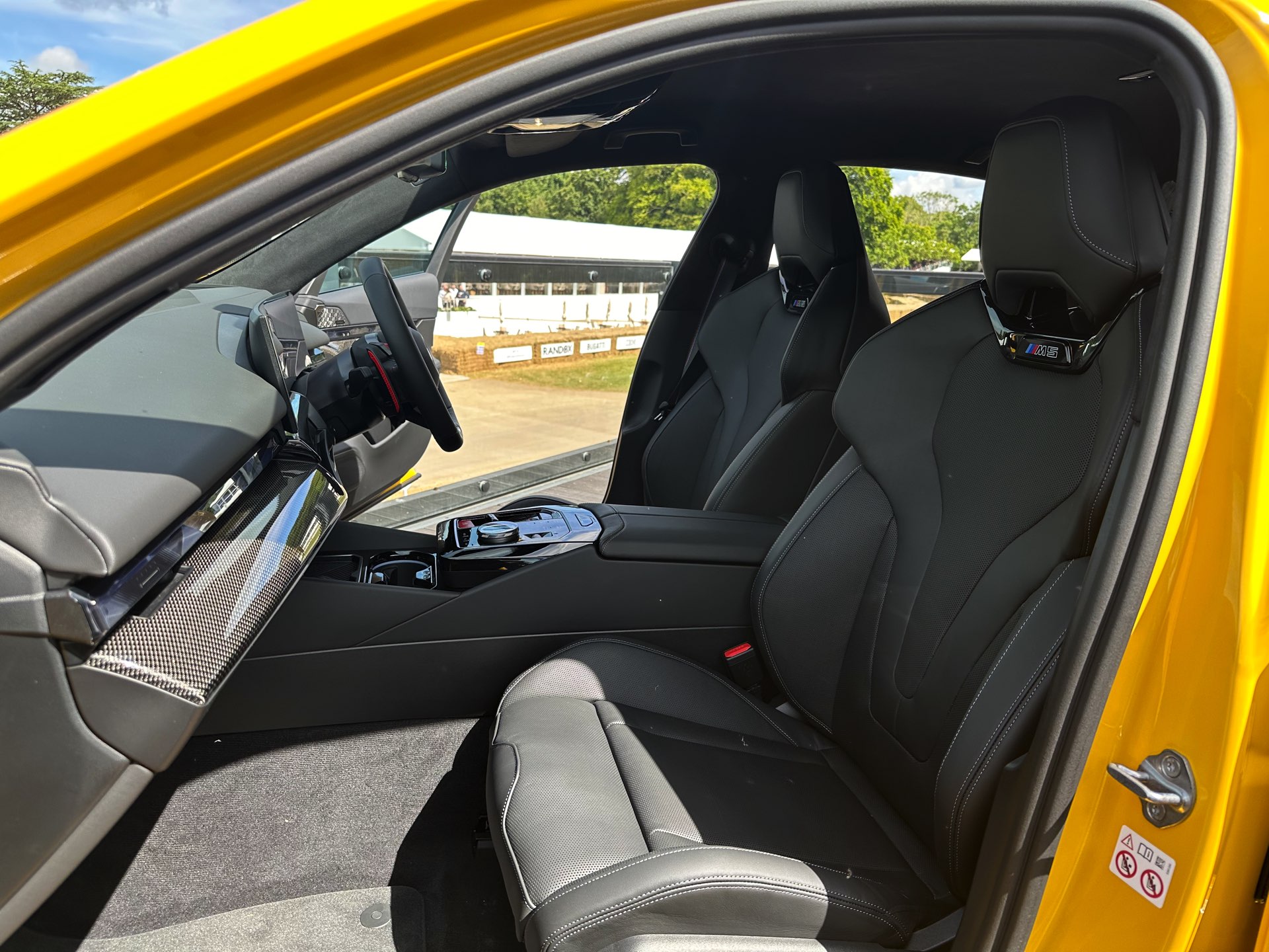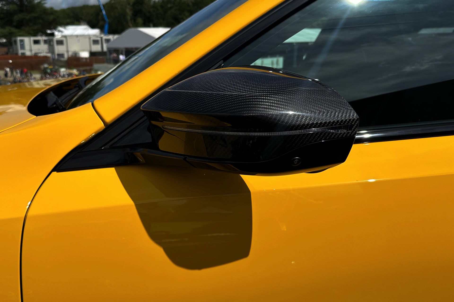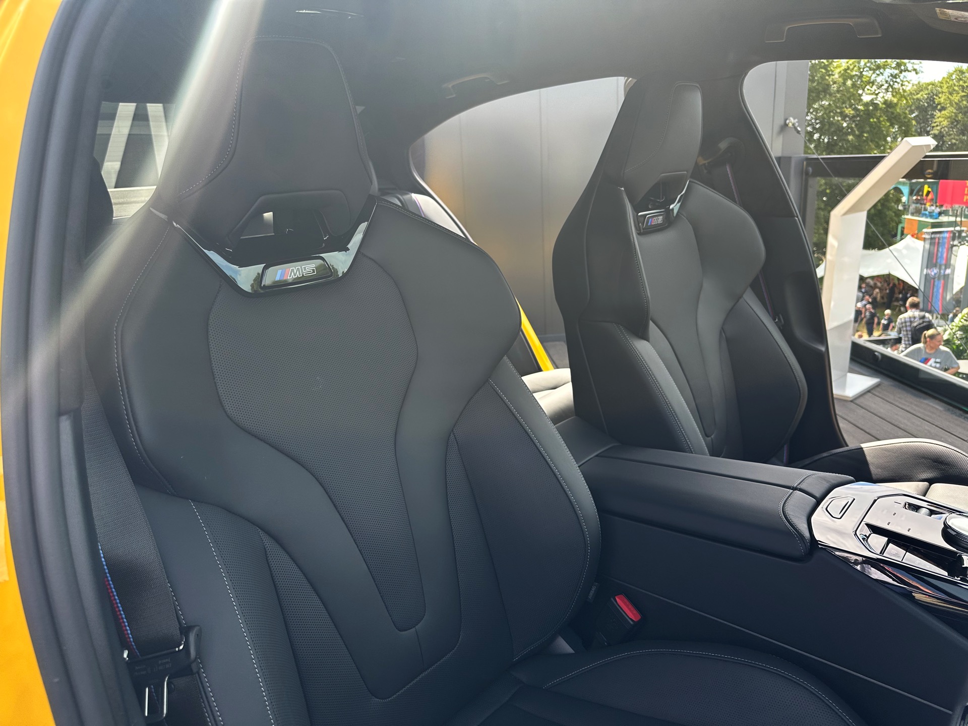 Unsere Live-Fotos aus Goodwood zeigen den neuen BMW M5 in Speed Gelb und deuten an, wie gut die Formen der Power-Limousine mit kräftigen Farben harmoniert. Über BMW Individual stehen insgesamt rund 150 Sonderwunsch-Farben zur Verfügung und wir dürfen davon ausgehen, dass wir in den nächsten Jahren so manche spezielle Variante auf dem G90 zu sehen bekommen. Jede intensive Farben steht dabei in scharfem Kontrast zu einer Vielzahl von dunklen Elementen, die je nach Konfiguration in glänzendem Schwarz oder auch in Sicht-Carbon ausgeführt sind.