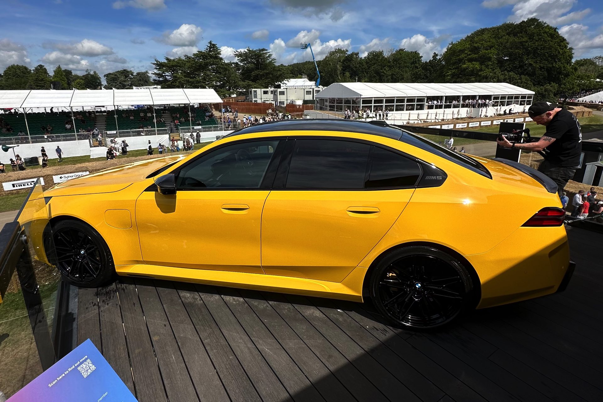 Kaum irgendwo auf der Welt gibt es eine solche Häufung von extrem starken und extrem auffälligen Fahrzeugen wie beim Goodwood Festival of Speed – und kaum irgendwo ist eine Farbe wie Speed Gelb besser aufgehoben als bei einem Festival, das schon dem Namen nach die Leidenschaft für Geschwindigkeit feiert. Zur Weltpremiere des neuen BMW M5 (G90) haben die Garchinger ihre neue Business-Limousine deshalb nicht “nur” in der Launch-Farbe Frozen Deep Grey mitgebracht, sondern präsentieren als weithin sichtbares Statement auch ein Exemplar mit leuchtend-gelber Individual-Lackierung.