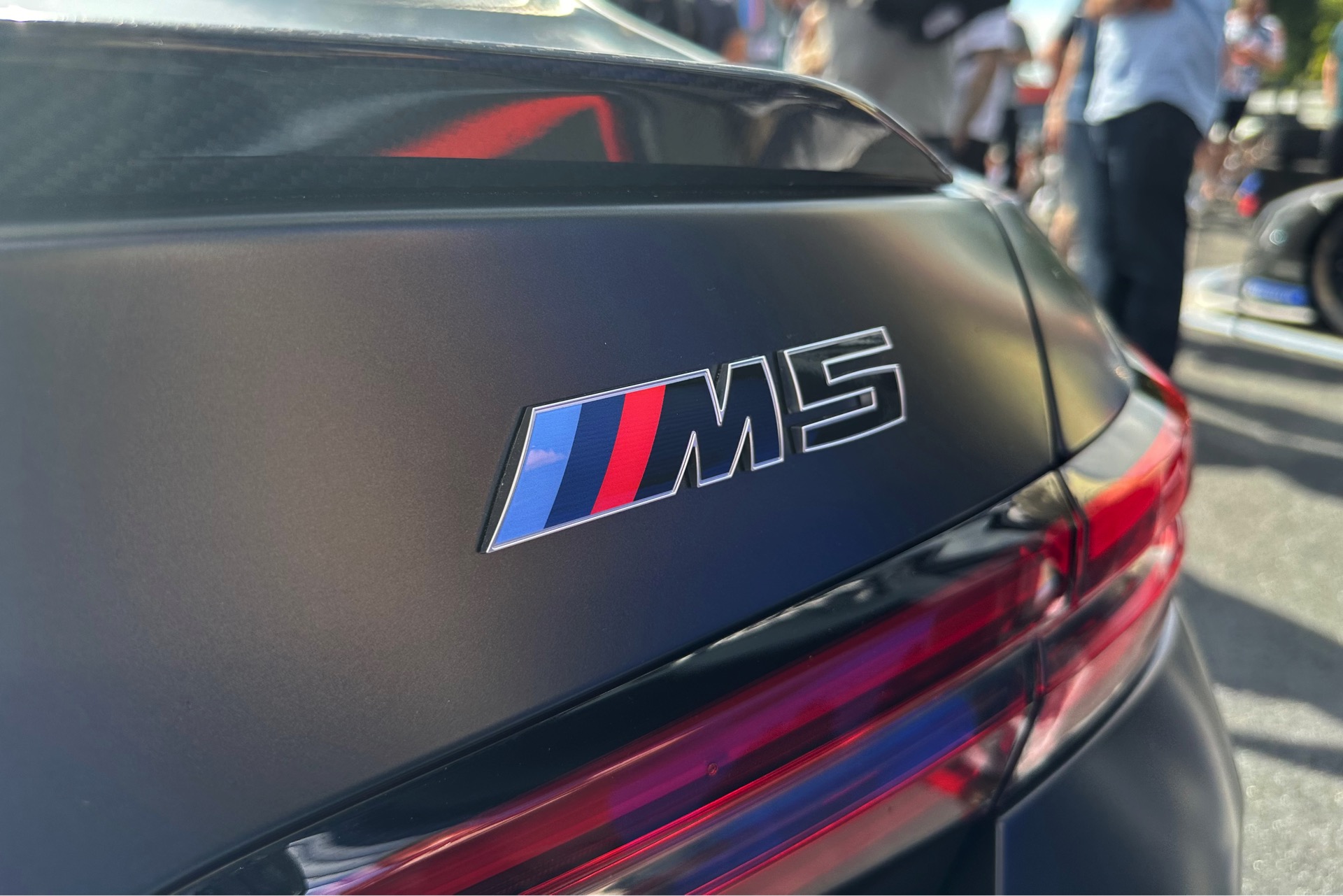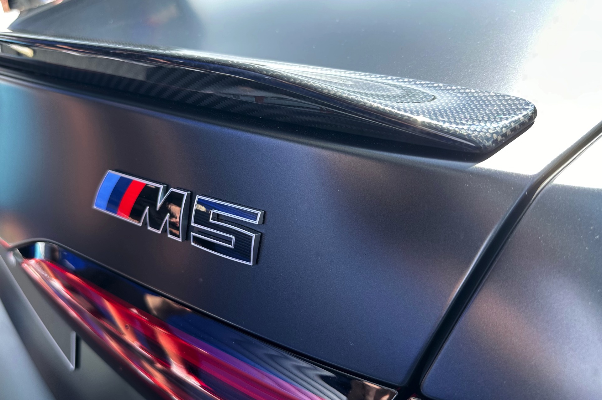 Besonders hervorzuheben sind dabei die schwarze und im oberen Bereich geschlossene M-Niere mit ihren Querstreben, das optionale Carbon-Dach, die Fenstereinfassungen samt eingeprägtem M5-Logo und natürlich der zweigeteilte Heck-Diffusor. Letzterer ragt mehrere Zentimeter über die Heckschürze hinaus und beherbergt die vier beinahe armdicken Endrohre, die unübersehbar auf den mächtigen Antrieb des neuen BMW M5 hinweisen. Auf der Heckklappe trägt der M5 außerdem eine dezente Spoiler-Lippe, die für mehr Stabilität bei hohen Geschwindigkeiten sorgt. "