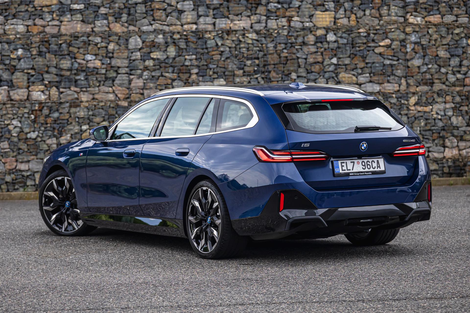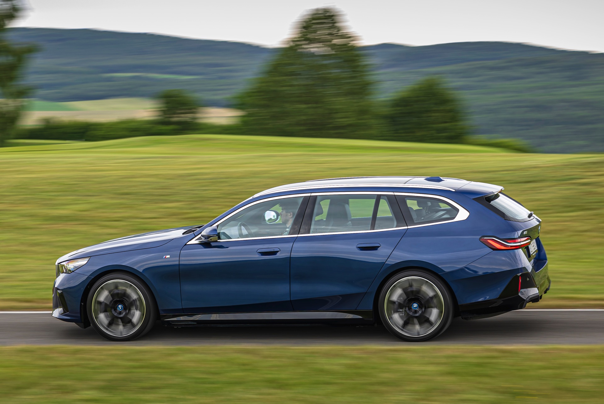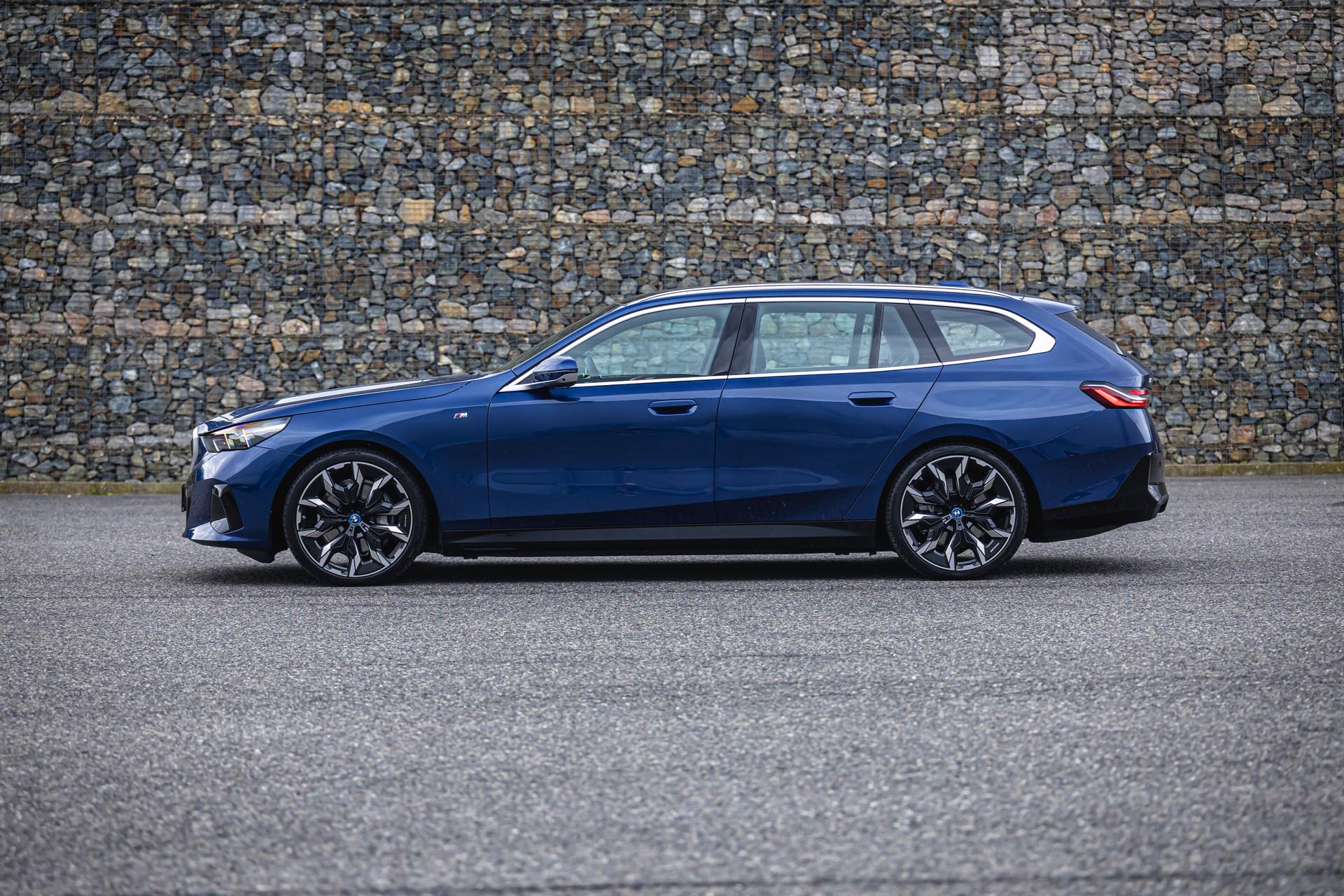 Der auf den Fotos gezeigte BMW i5 eDrive40 Touring profitiert nicht nur in der Seitenansicht von den 21 Zoll großen BMW Individual Aerodynamikrädern 954 I Bicolor. Er kommt mit 340 PS und reinem Heckantrieb, in wenigen Monaten wird der Kombi genau wie die Limousine auch als BMW i5 xDrive40 mit zweitem E-Motor an der Vorderachse, Allradantrieb und 394 PS erhältlich sein. Darüber gibt es schon heute den BMW i5 M60 Touring, der die Kombi-Qualitäten des G61 mit 601 PS und entsprechend fulminanten Fahrleistungen kombiniert.