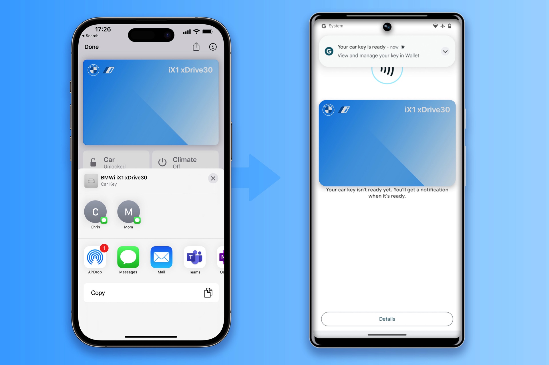 Ein klarer Vorteil gegenüber klassischen Autoschlüsseln ist die Möglichkeit, den Digital Key auf digitalem Weg an Dritte zu vergeben: Sollen Familien-Mitglieder, Freunde oder Bekannte Zugang zum Auto erhalten, kann der Schlüssel seit 2022 mit diversen Messengern an diese geschickt werden. Seit einiger Zeit ist es auch möglich, den Digital Key auf einer Smartwatch wie der Apple Watch zu hinterlegen, sodass auch das Smartphone nicht mehr zwingend mitgeführt werden muss.