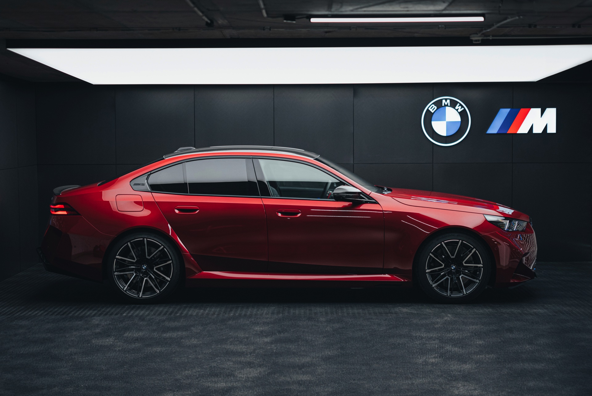 Noch vor seinem Marktstart im November 2024 wird der neue BMW M5 (G90) auf einigen Events potenziellen Kunden präsentiert. Bei einem Auftritt in Polen war die Power-Limousine dabei nun in Fire Red Metallic zu sehen – ohne Zweifel eine der auffälligsten Farben diesseits des rund 150 Farben umfassenden BMW Individual-Portfolios, allerdings auch eine Gemeinsamkeit mit den Farboptionen für den regulären 5er sowie den i5. Dennoch ist klar, dass kaum ein Auto-Interessierter den M5 mit Fahrzeugen wie dem BMW i5 M60 in Fire Red verwechseln wird, auch wenn es neben einer Vielzahl von Unterschieden durchaus auch ein paar Gemeinsamkeiten gibt.