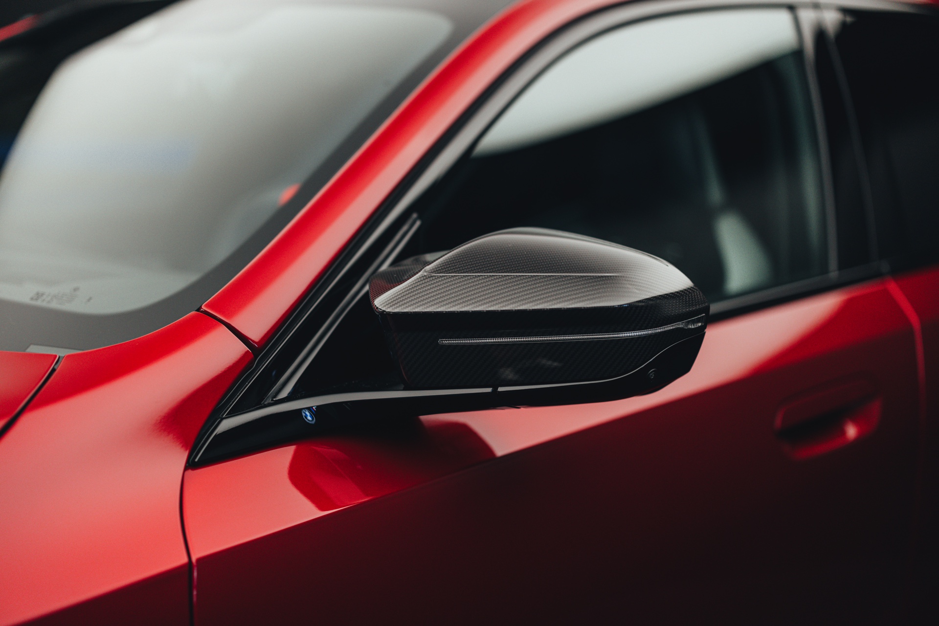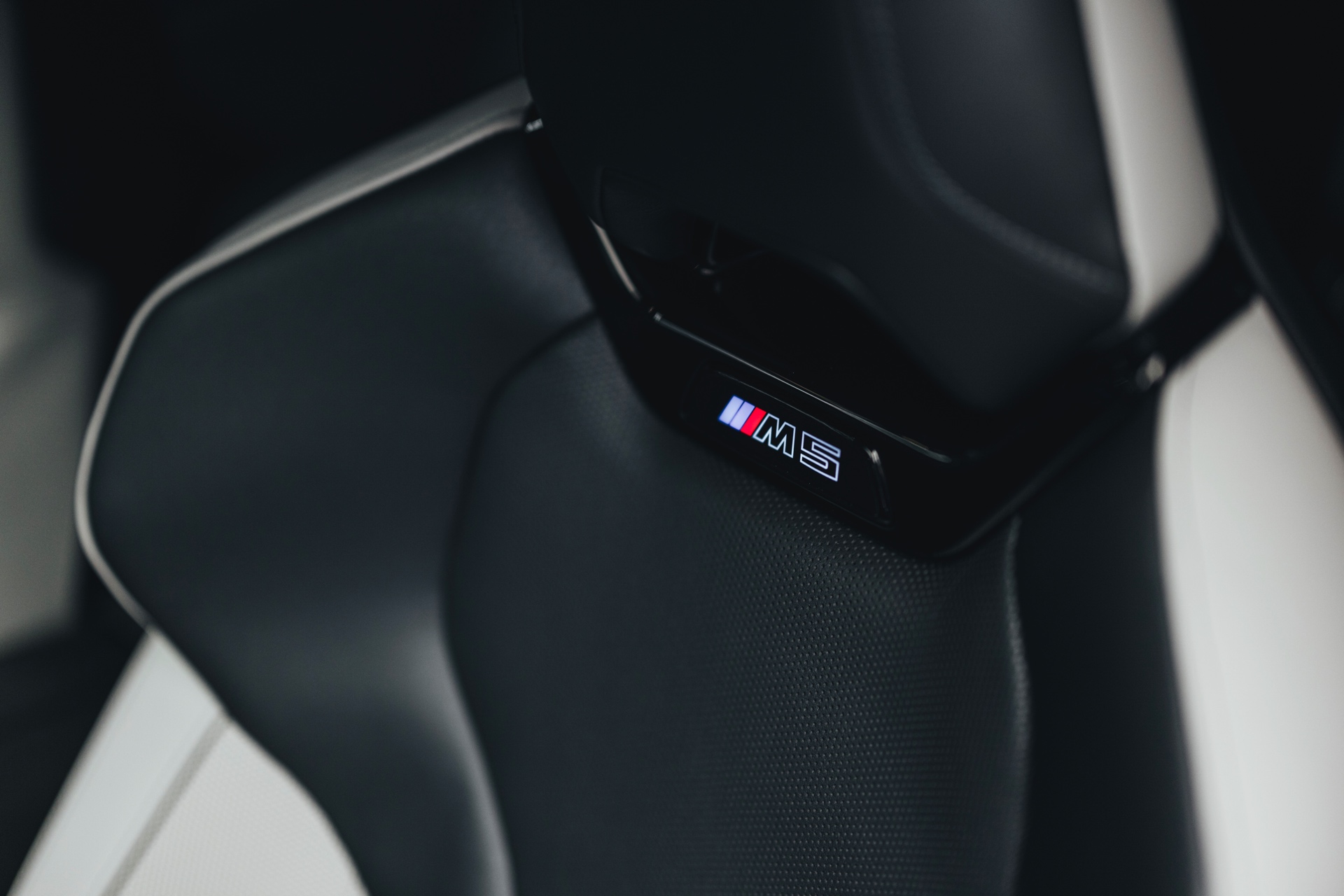 Die dezente Vertiefung in der Mitte des Dachs macht außerdem klar, dass der gezeigte BMW M5 (G90) das neuerdings optionale Carbon-Dach trägt: Anders als beim Vorgänger der Generationen F90 kommt serienmäßig ein Panorama-Glasdach zum Einsatz, die wesentlich leichtere Kohlefaser-Option kostet als Bestandteil des M Carbon Exterieurpakets 3.200 Euro Aufpreis. Im Paket enthalten sind auch die Carbon-Spoilerlippe auf der Heckklappe sowie Außenspiegel-Kappen in Sicht-Carbon. Mit Blick auf den Grundpreis von 144.000 Euro fällt der Aufpreis für die Sonderausstattung, die den M5 deutlich von allen schwächeren 5er-Varianten abgrenzt, kaum ins Gewicht.