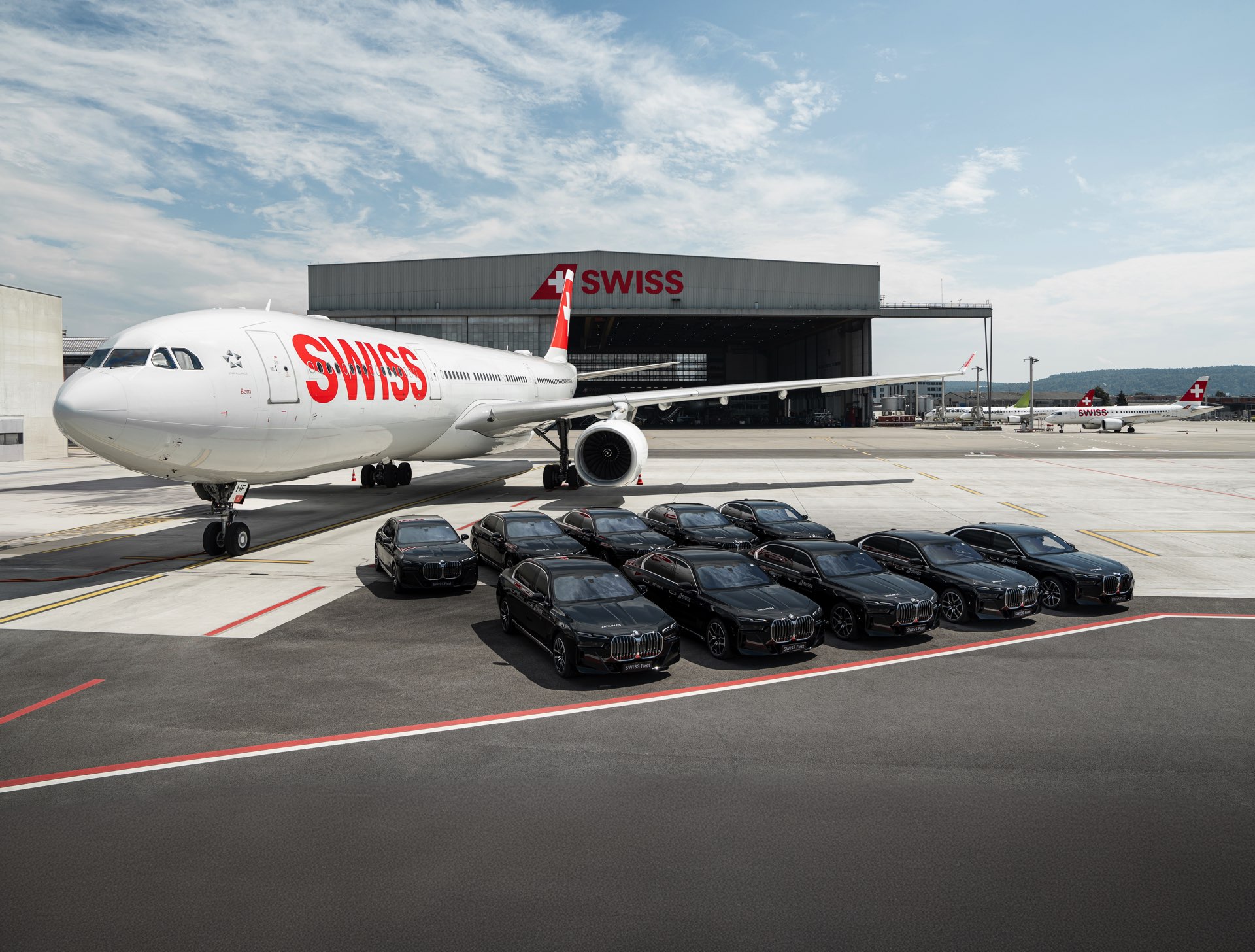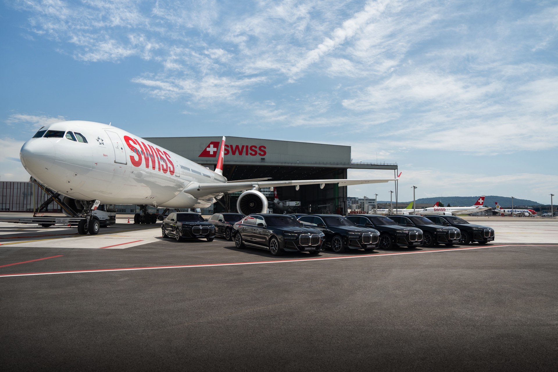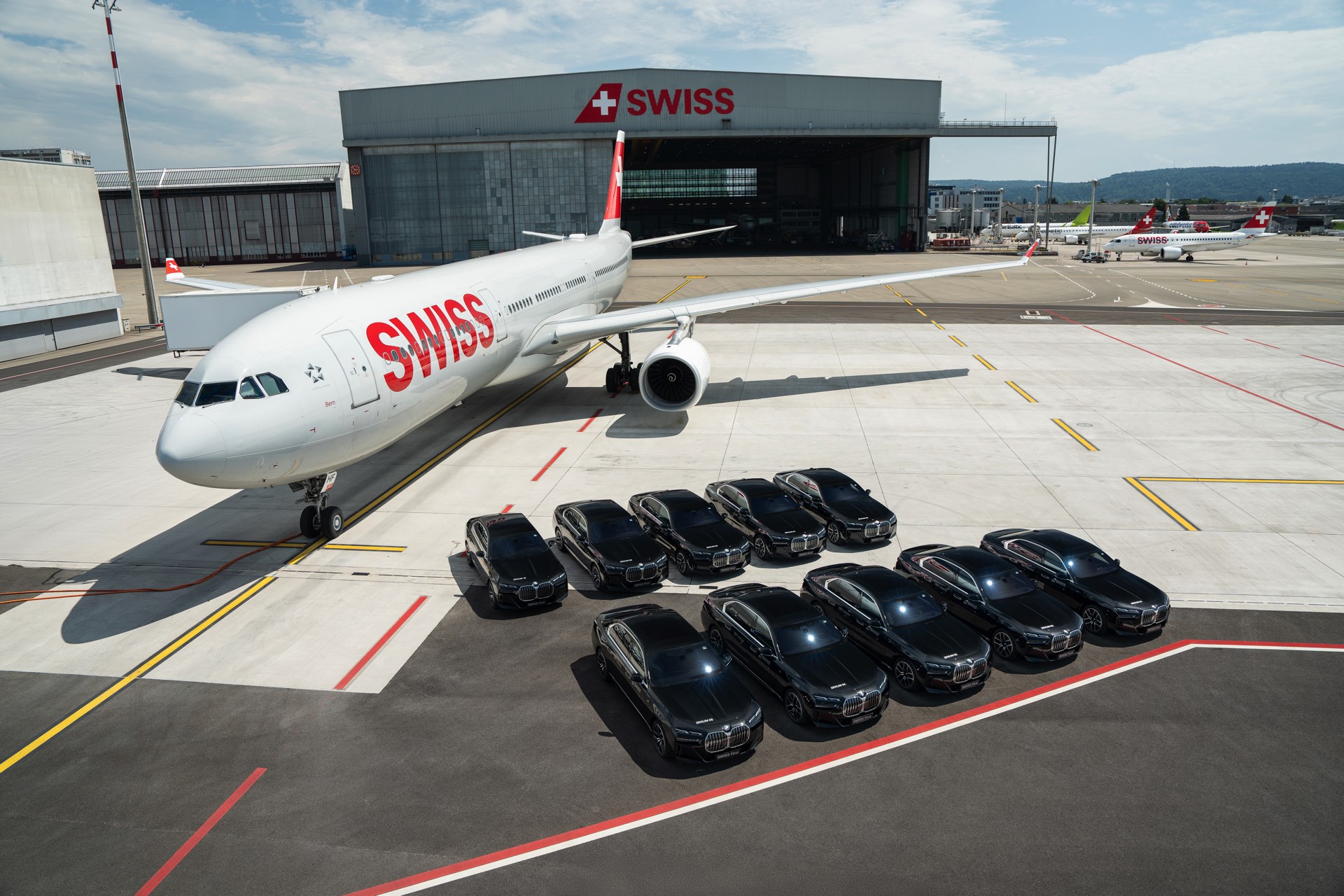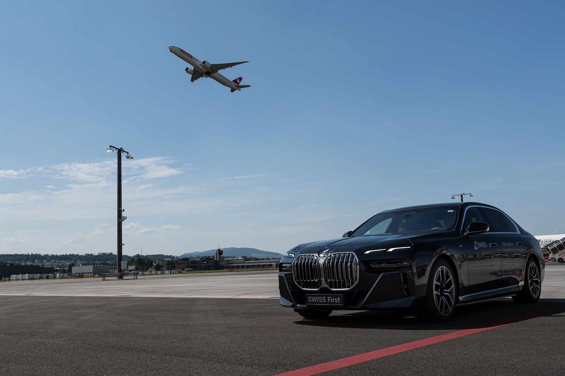 Auch ohne eine aktuelle Produktion von Flugmotoren bleibt BMW der Luftfahrt in gewisser Weise verbunden: In der Schweiz kommt ab sofort eine ganze Flotte von BMW i7 zum Einsatz, wenn Reisende der First Class oder Mitglieder des HON-Circle der Star Alliance in Zürich oder Genf zum oder vom Flugzeug gebracht werden. Zwar hat der Elektro-7er nicht einen einzigen Zylinder, aber er punktet mit annähernd geräuschloser Fahrt und großzügigem Platzangebot – und hilft vielleicht auch ein klein wenig dabei, das grüne Gewissen der Reisenden zu beruhigen: Die Kooperation von BMW und SWISS, einem Mitglied der Lufthansa Group, soll auch einen Beitrag zum Ziel eines lokal komplett emissionsfreien Bodenbetriebs der Fluglinie leisten.