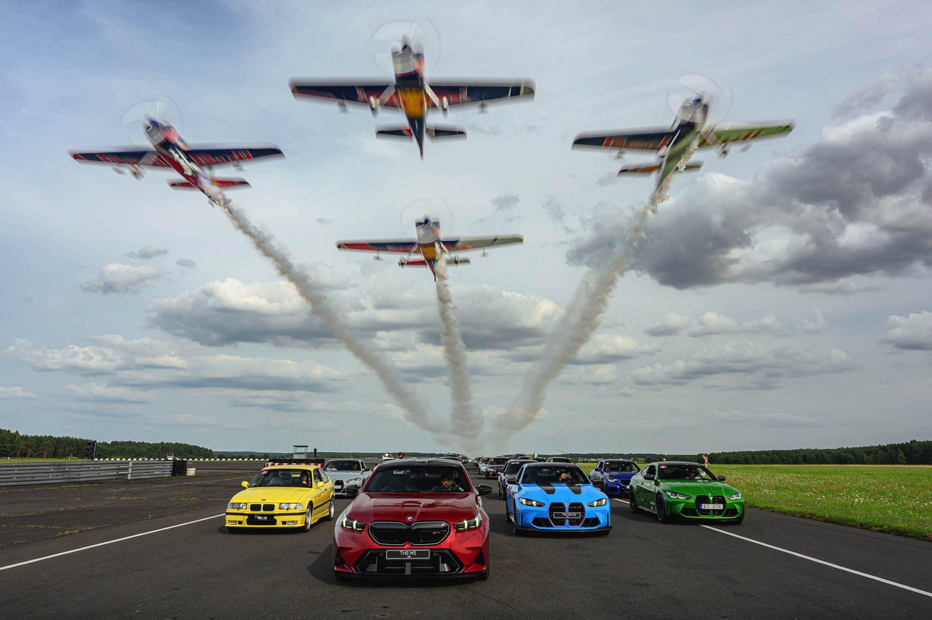 Mit vor Ort waren aber auch eine Vielzahl weiterer spannender Modelle aus der Historie der M GmbH: Vom M3 der ersten Generation E30 über den M3 (E36) in Dakar Gelb und diverse weitere M-Modelle mit Individual-Lackierungen von Feuerorange bis Zanzibar Metallic gab es wahrlich viel zu sehen – und für extrem spektakuläre Fotos wurde auch noch eine Airshow mit Unterstützung von Red Bull realisiert: Gleich vier der rasanten Stunt-Flieger kamen zum Silesia Ring und feierten die Liebe zu Kraft und Geschwindigkeit auf eine Art und Weise, die fast so eng mit der BMW-Historie verbunden ist wie schnelle Automobile.