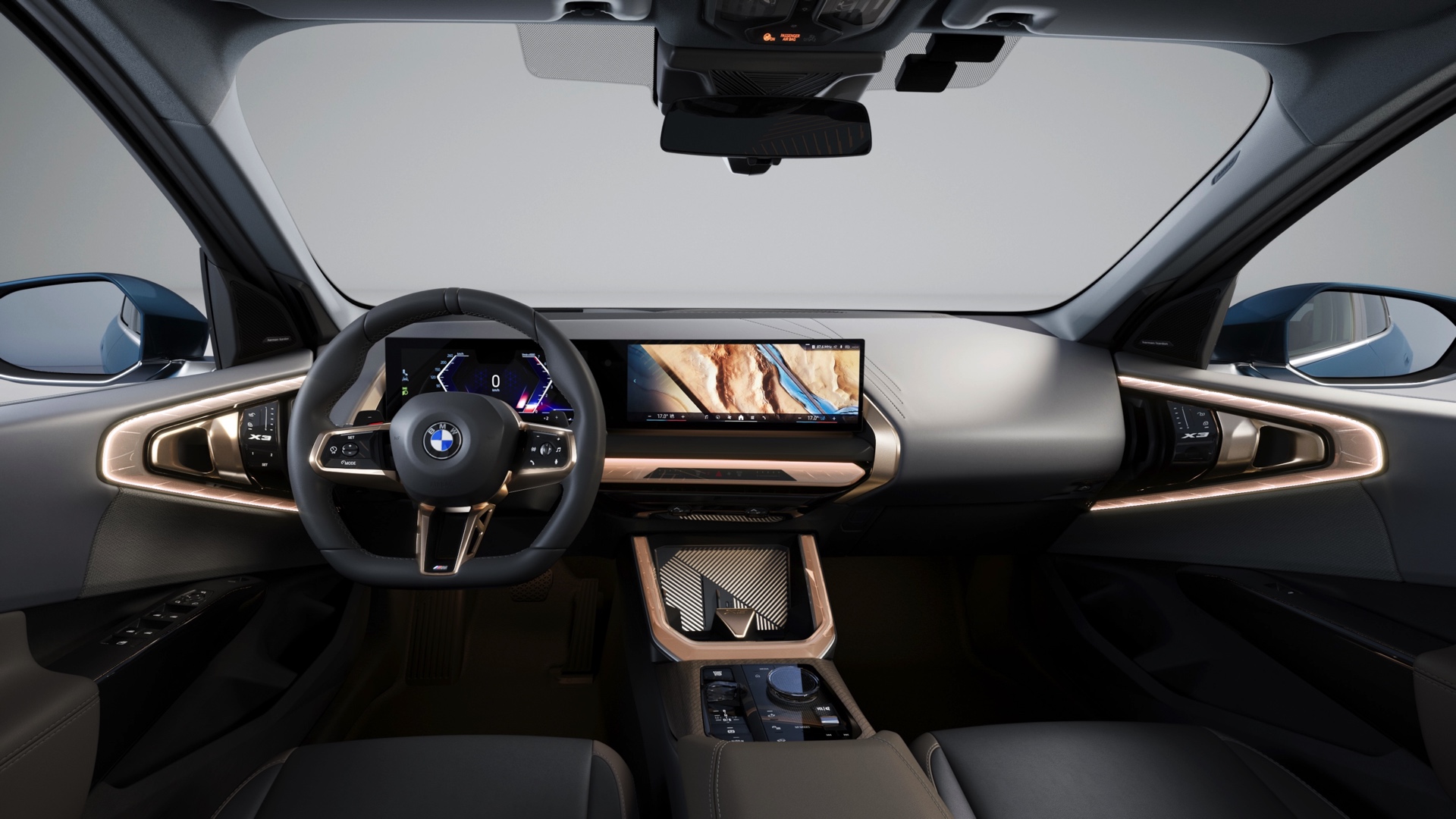 Noch weiter verbessert wird das Raumgefühl von einem großen Panorama-Glasdach, das wie im 7er mit einer mehrfarbigen Skylounge-Beleuchtung aufgewertet werden kann. Komfortkissen an den Kopfstützen und eine spezielle Mittelarmlehne mit integrierter Wireless-Charging-Ablage sorgen für eine zusätzliche Aufwertung im Vergleich zum regulären X3.