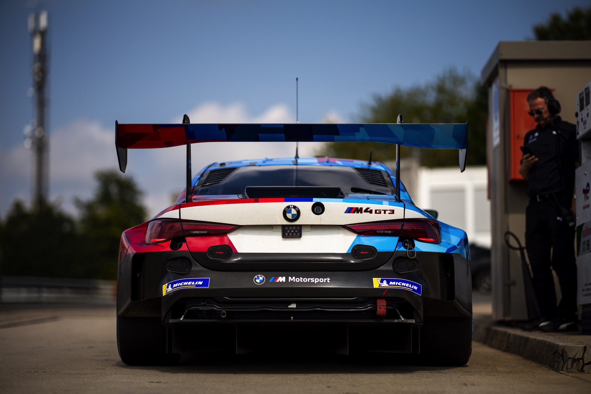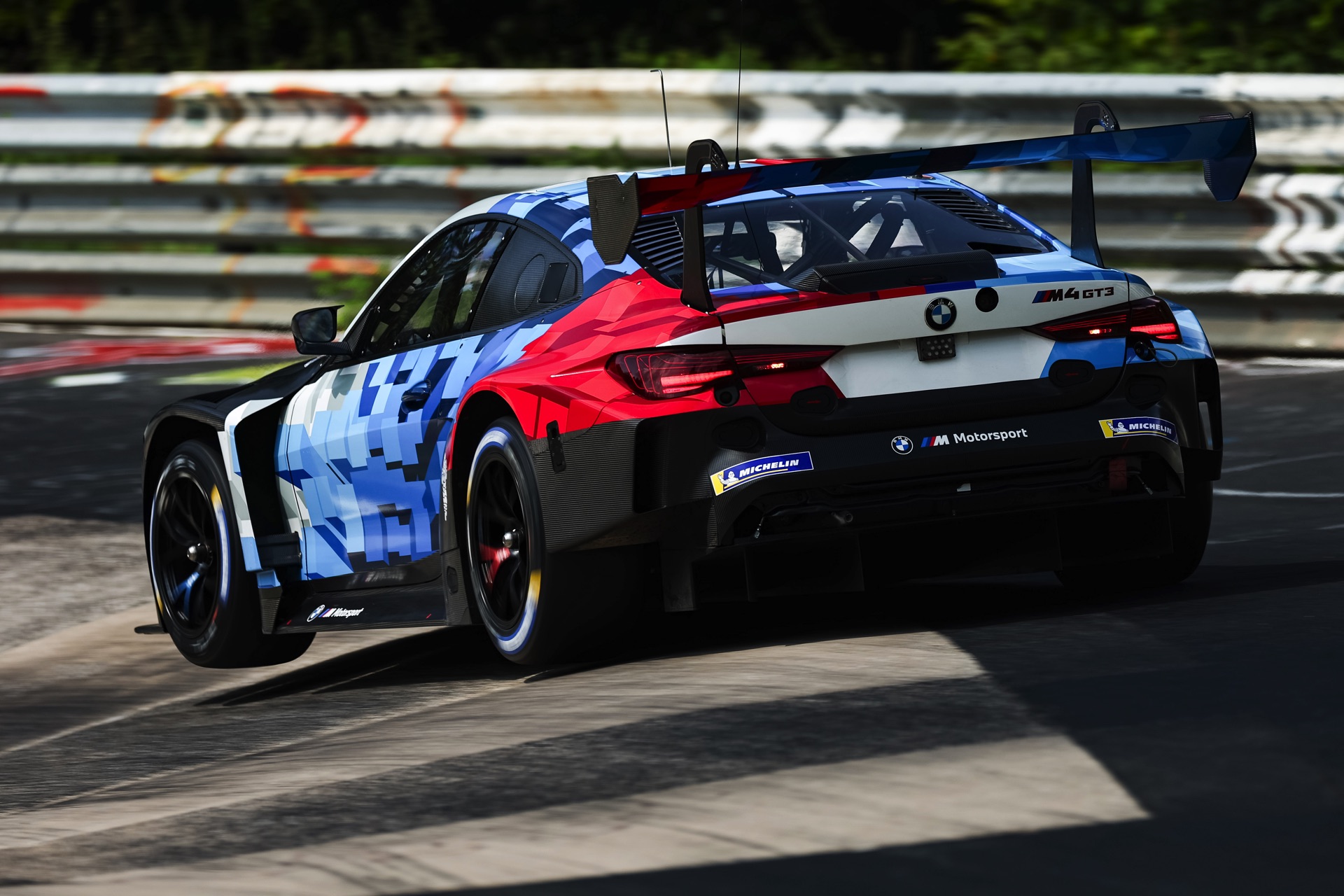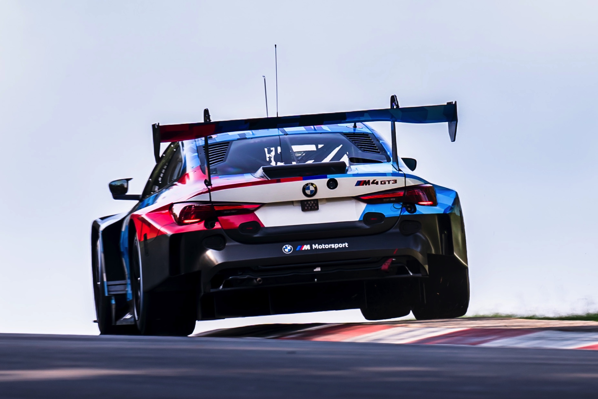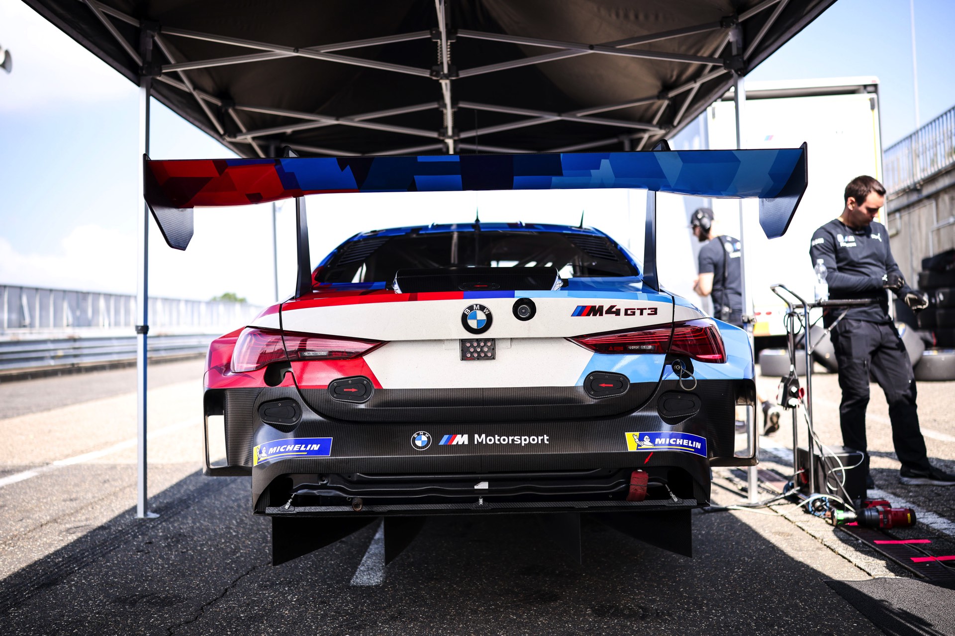 Auf den aktuellen Fotos aus der Grünen Hölle sehen wir einige Veränderungen, wobei das veränderte Innenleben von Scheinwerfern und Rückleuchten natürlich nur einen Teil darstellt: Im Stil des BMW M4 Facelift 2024 erhält auch der M4 GT3 Evo ein neues Tagfahrlicht-Design mit aufrecht stehenden Elementen sowie neue Rückleuchten im Stil des M4 CSL. Auffällig sind auch die wesentlich kompakter gestalteten Außenspiegel, der leicht veränderte Frontsplitter und die neuen Heckflügel-Träger. "