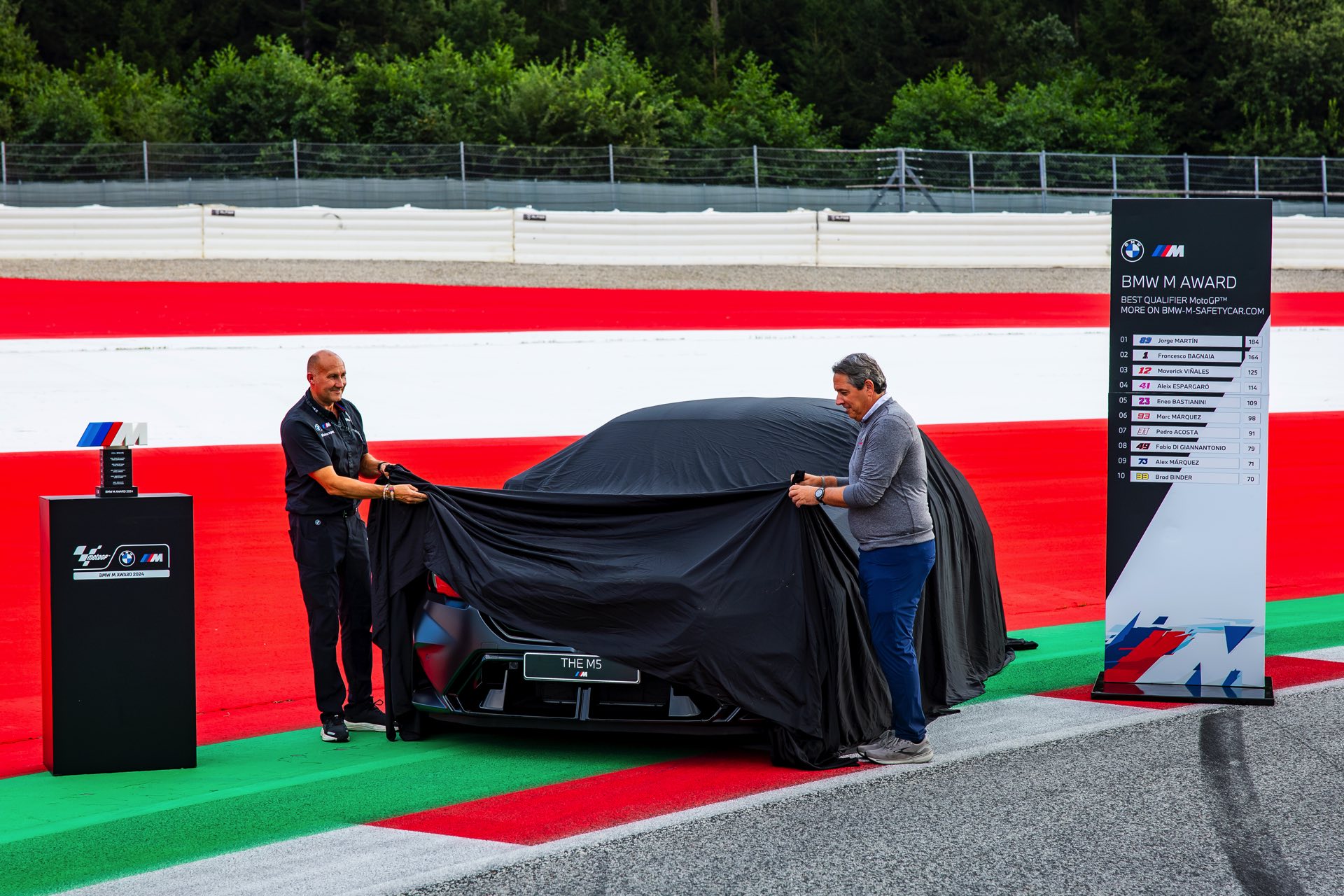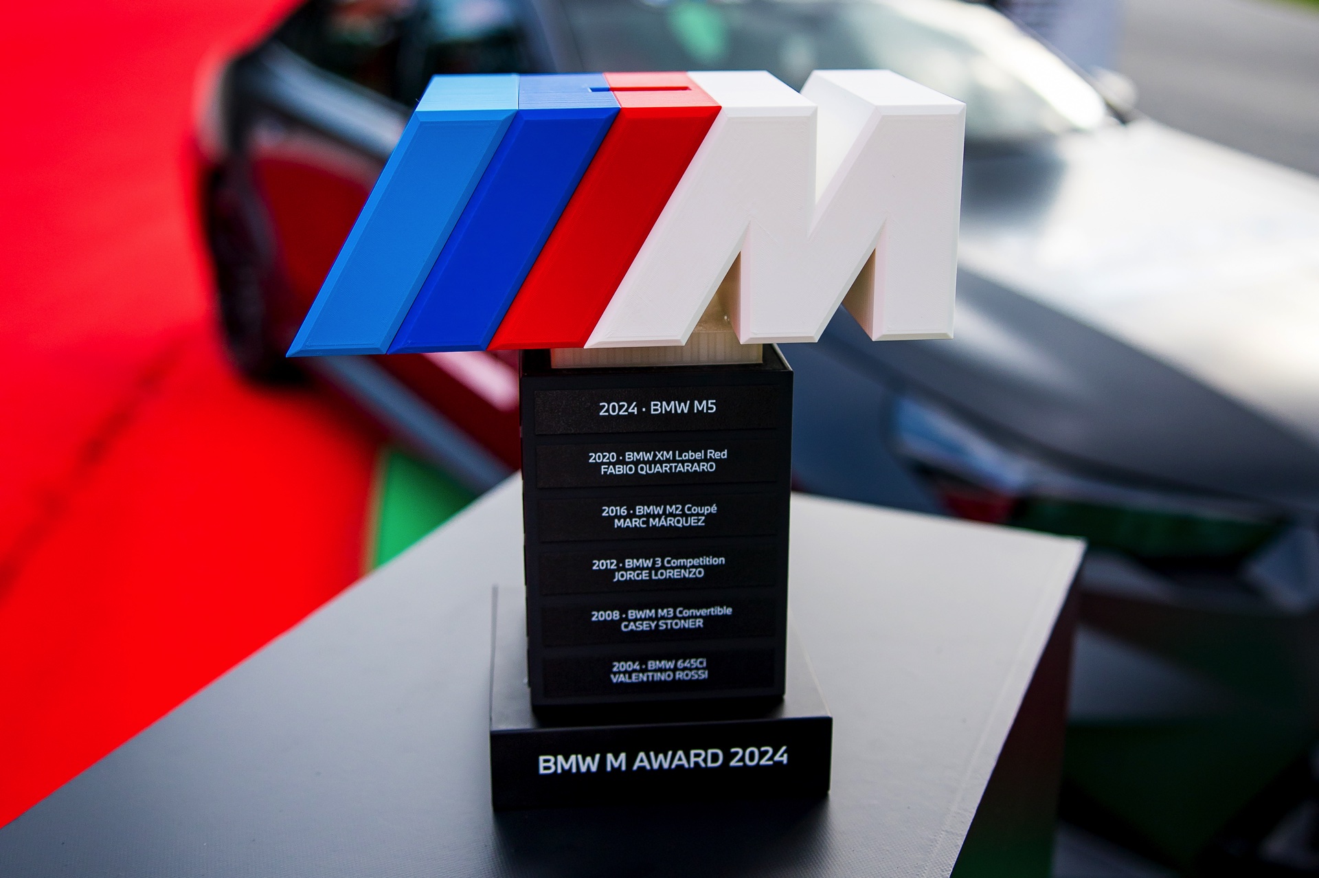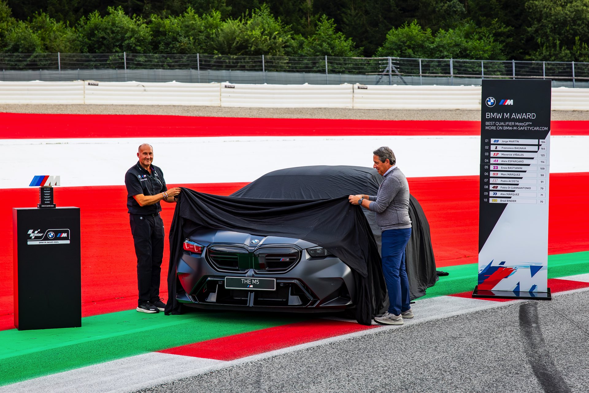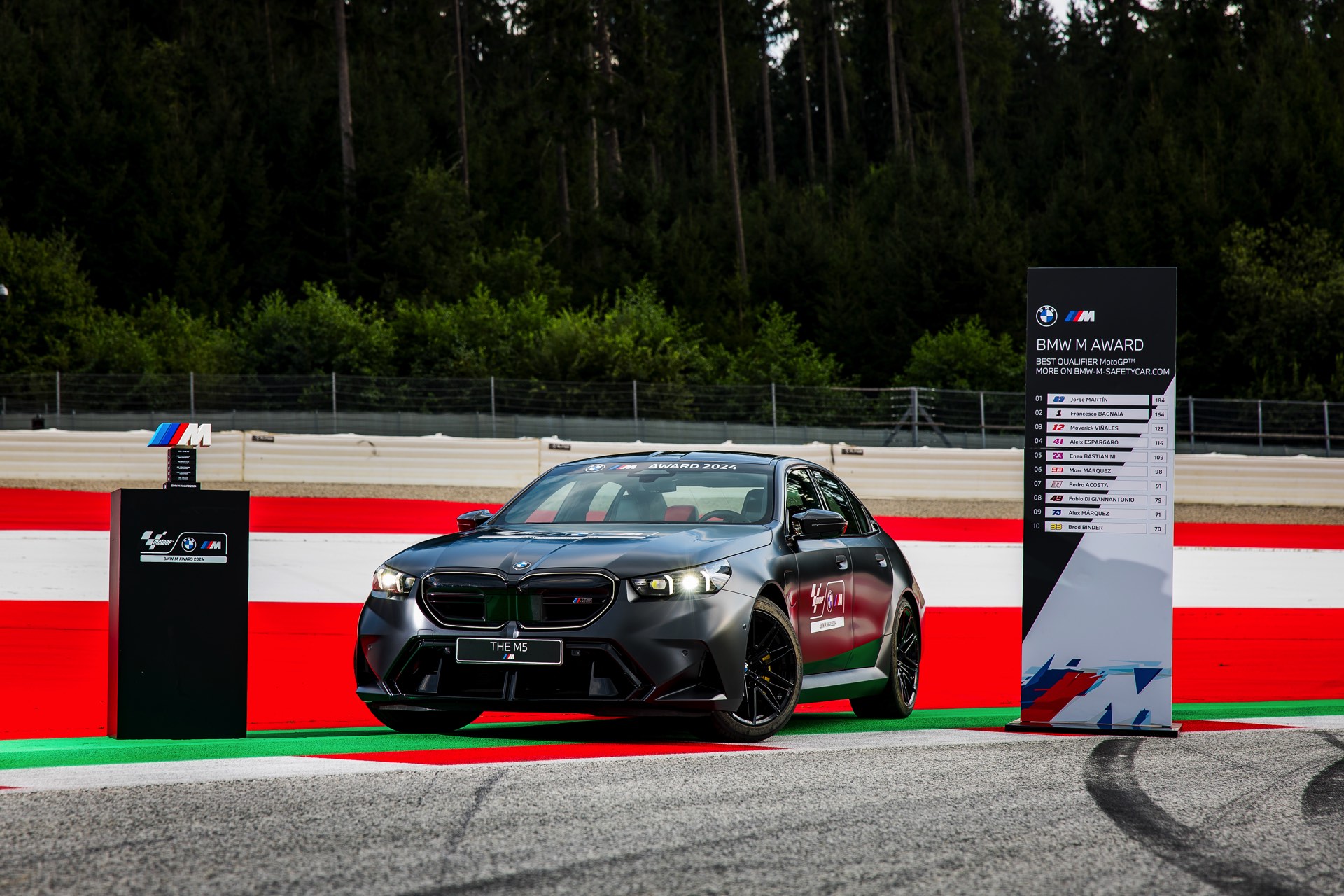 Ganz unabhängig von den Aktivitäten auf zwei Rädern bleibt die M GmbH im Umfeld der MotoGP extrem präsent: Neben dem Support durch Safety Car, Medical Car, Safety Bike & Co. stellen die Garchinger erneut den BMW M Award und ehren damit den besten Qualifier der MotoGP. Als Preis für die Saison 2024 wurde nun am Red Bull Ring in Spielberg ein neuer BMW M5 (G90) in Frozen Deep Grey präsentiert, dessen Gewinner im Lauf der verbleibenden Rennen ermittelt wird: Während die Piloten im Rennen Punkte für den Fahrer-Titel sammeln, werden im Qualifying nach ganz ähnlichem Muster Punkte für den M Award gesammelt.