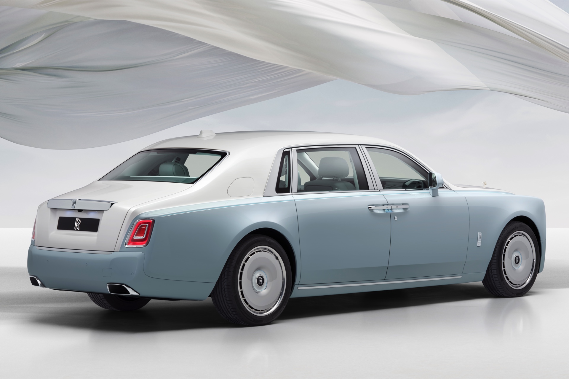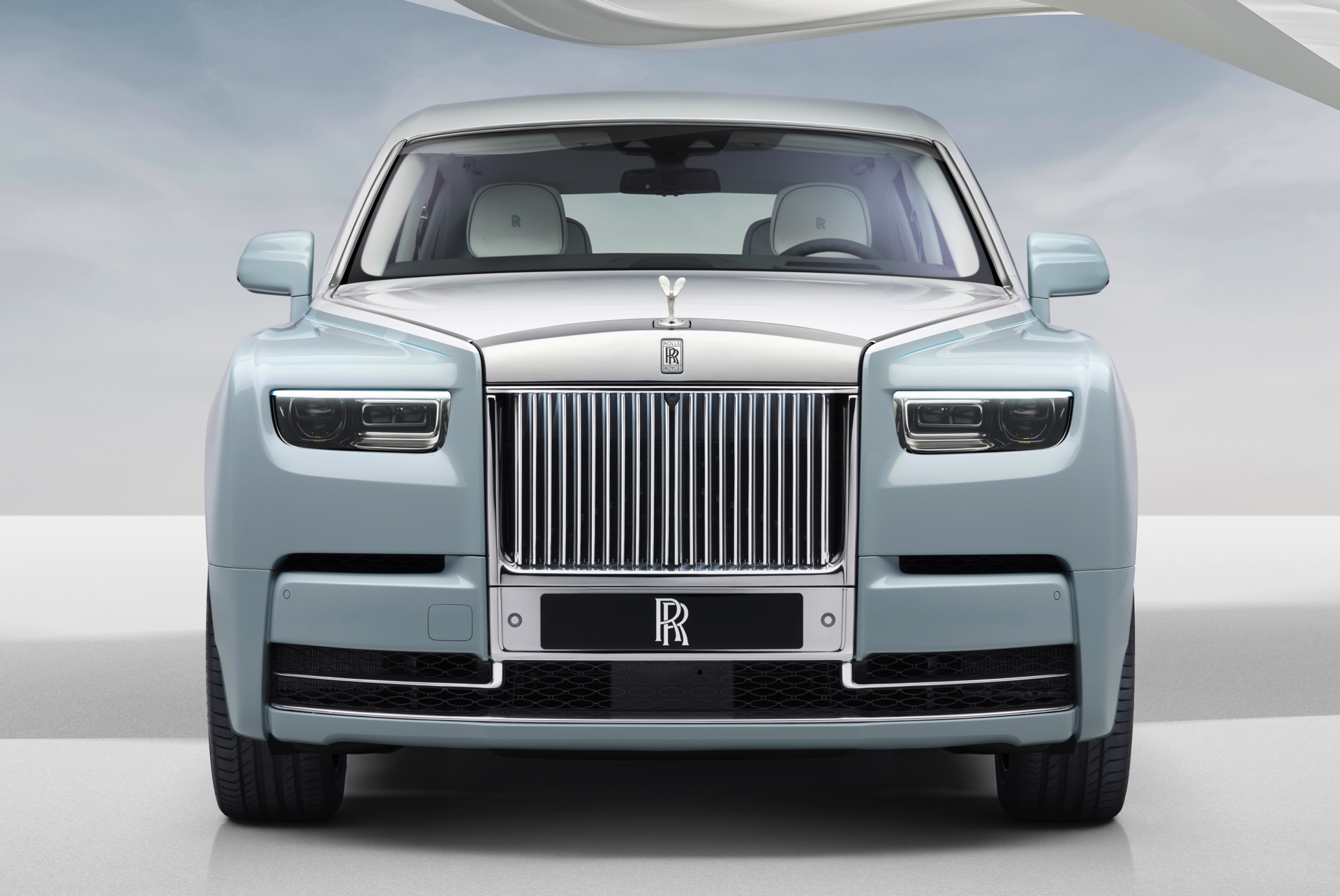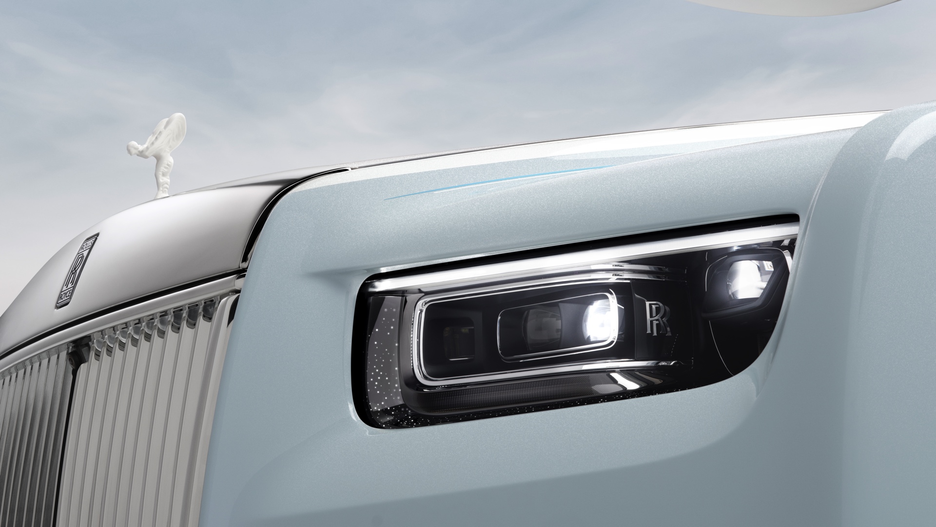 Die sanften Farben des Exterieurs und die Formen der Spirit of Ecstasy werden auch im Innenraum aufgegriffen und sorgen für eine beruhigende Atmosphäre: Mit Blue Grey, Arctic White, Spirit Blue, Powder Blue und Pastel Yellow kommen gleich fünf verschiedene Farben zum Einsatz und erinnern an die Eleganz eines im Wind wehenden Tuchs. Der charakteristische Look wird dabei erstreckt sich von den Interieurleisten über die Türen und Sitze bis hin zum Dachhimmel, dessen 1.500 Starlight-LEDs das Muster ebenfalls aufgreifen und gerade bei Nacht noch zusätzlich betonen.