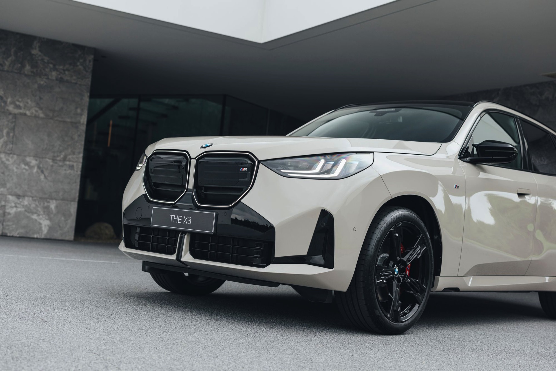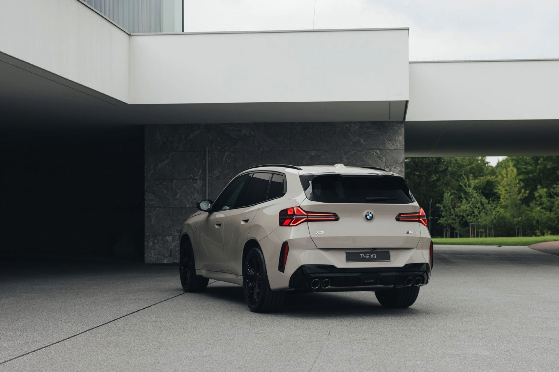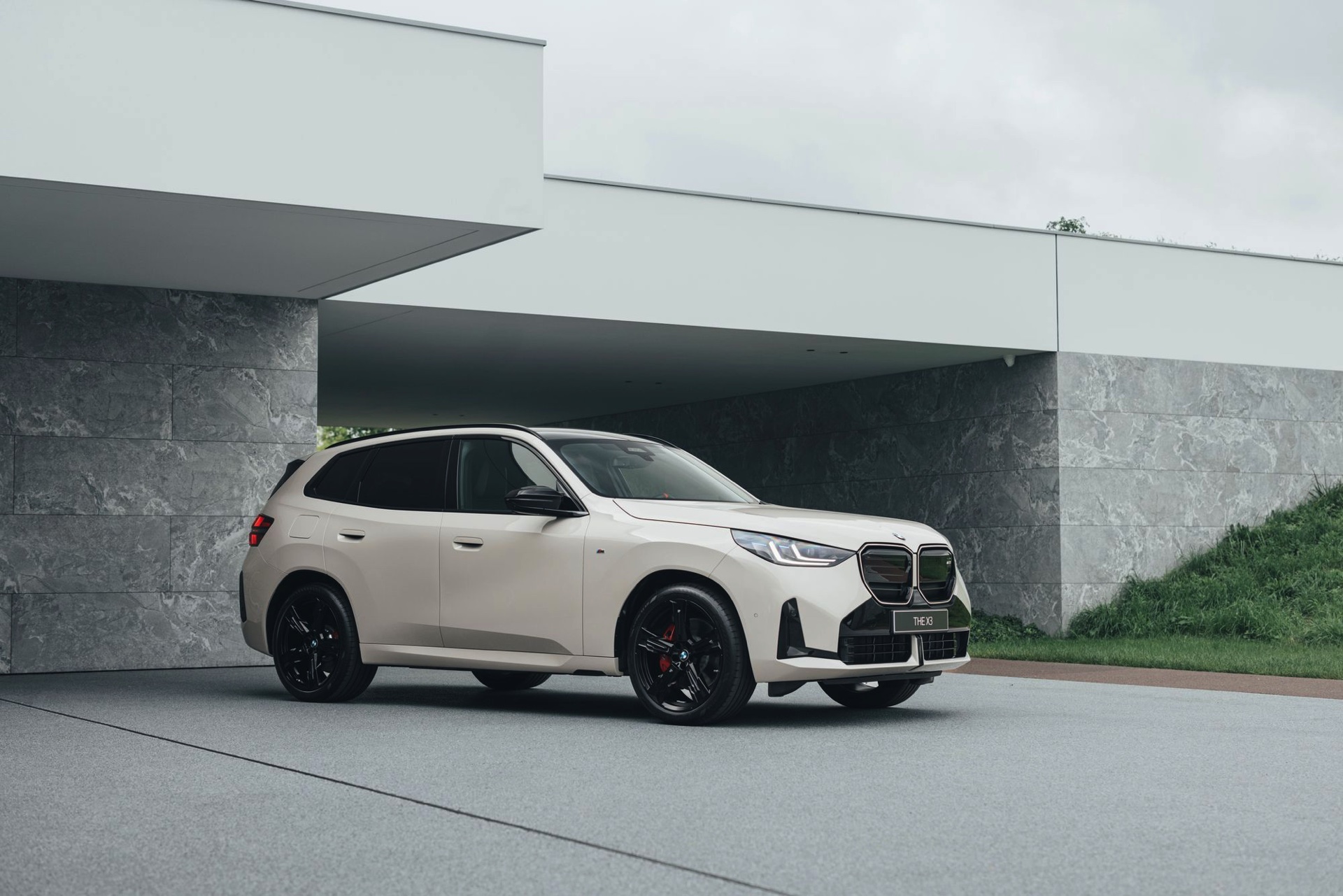 Mit dem neuen BMW X3 (G45) tritt auch eine ganz neue Farbe auf die große Bühne: Dune Grey Metallic ist für alle Varianten des Mittelklasse-SUV erhältlich, egal ob im Serien-Trim oder mit M Sportpaket. Das sportlichste Umfeld für die dünengraue Lackierung mit leicht-sandigem Gelbstich ist ohne Frage der neue BMW X3 M50, der mit einigen Details noch über die Optik des M Sportpakets hinausgeht: Horizontale Streben in der weitgehend geschlossenen Niere, M-Außenspiegel und eine Abgasanlage mit vier Endrohren grenzen das Topmodell deutlich von den schwächeren Varianten ab – weil diese einerseits ein neues Nieren-Design mit diagonalen Stäben tragen und andererseits komplett auf sichtbare Endrohre verzichten.
