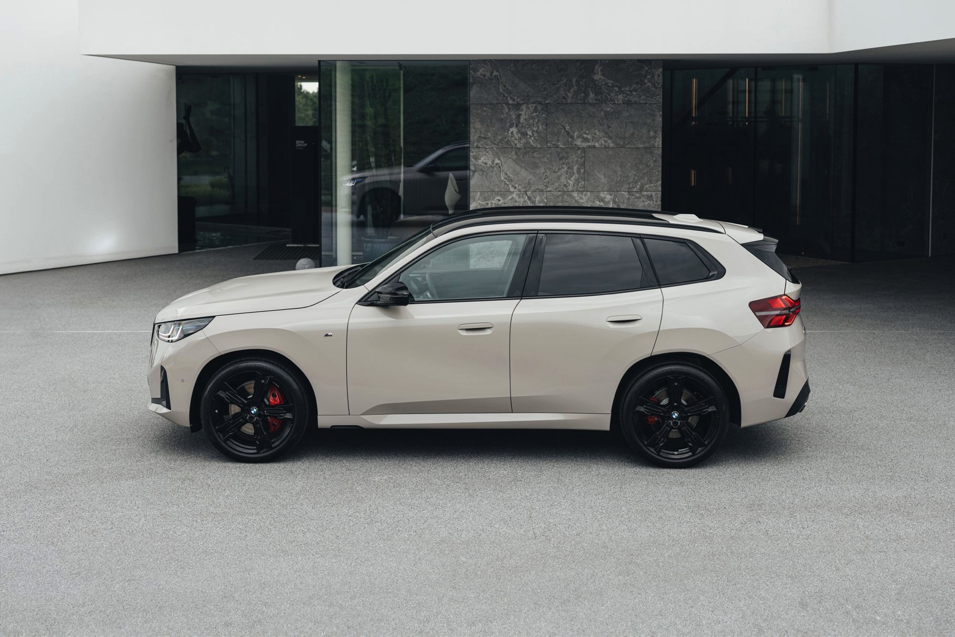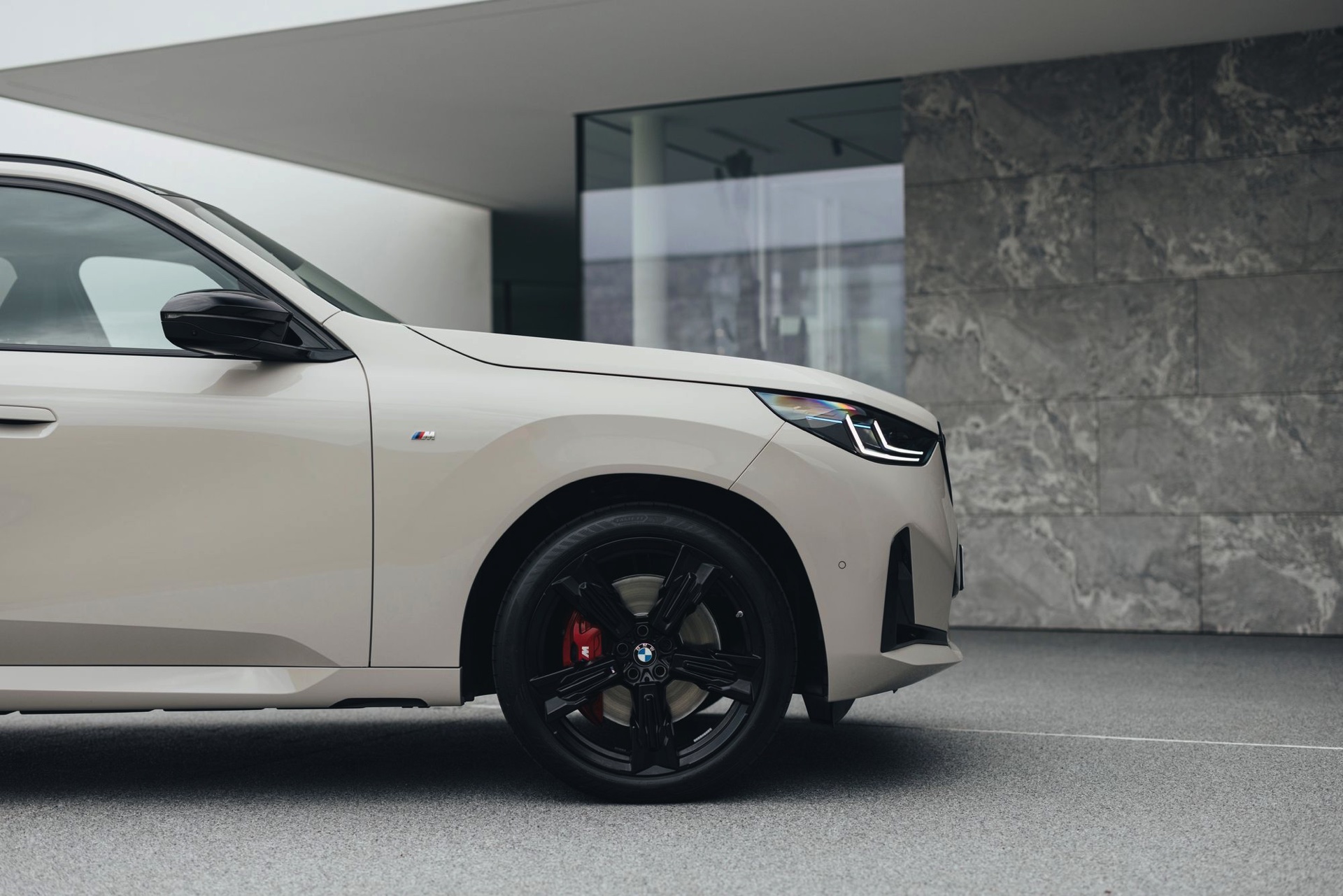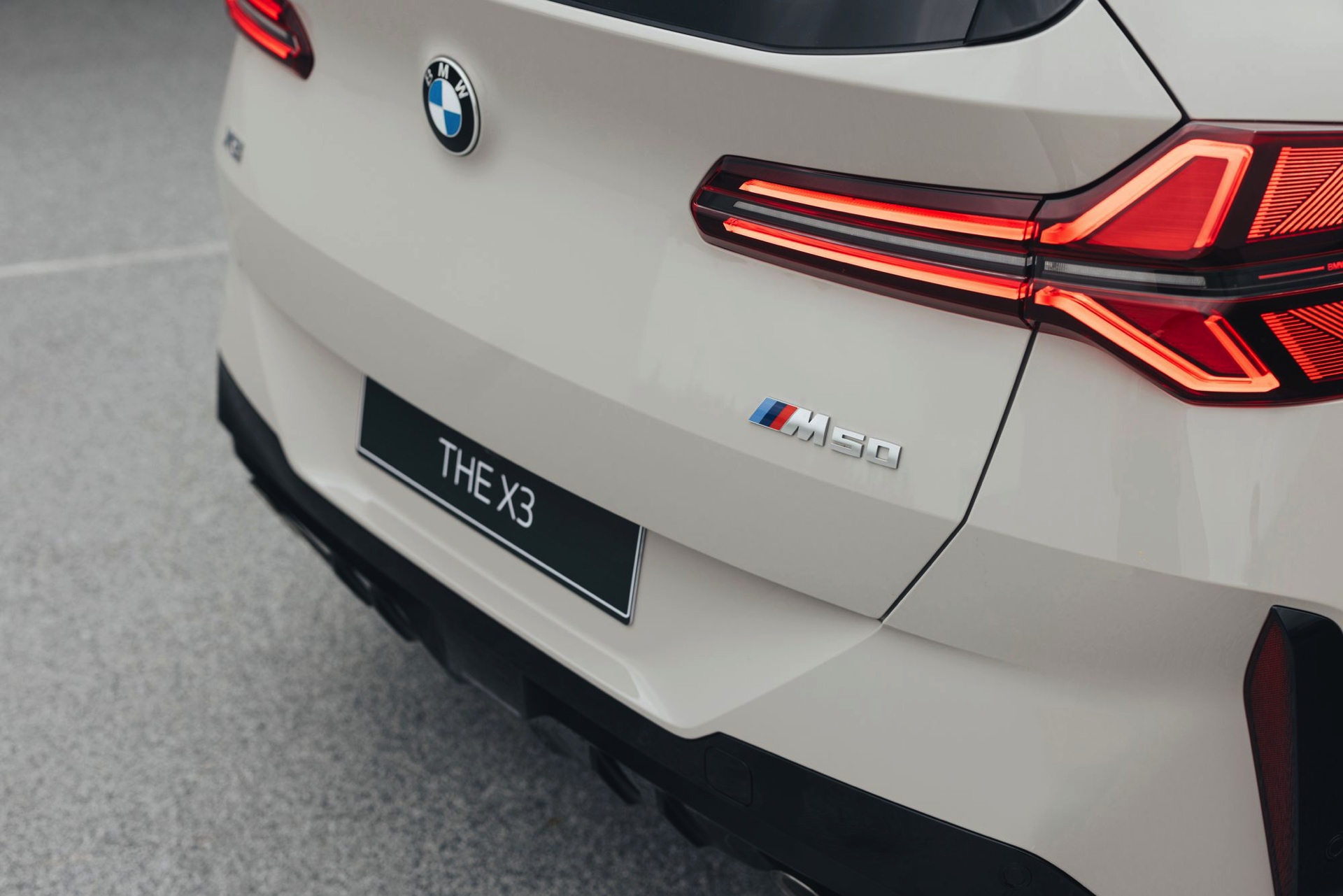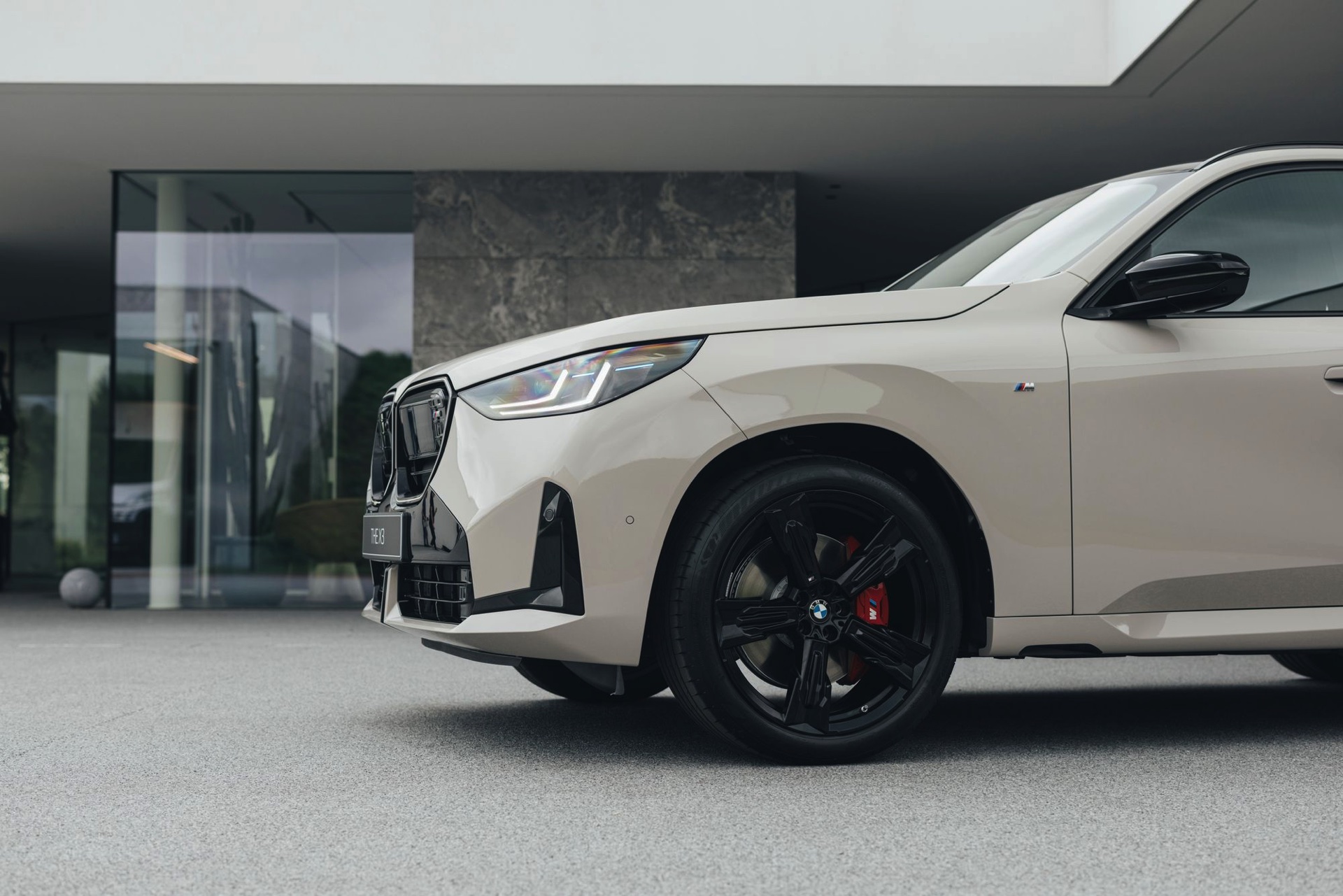 Mit dem neuen BMW X3 (G45) tritt auch eine ganz neue Farbe auf die große Bühne: Dune Grey Metallic ist für alle Varianten des Mittelklasse-SUV erhältlich, egal ob im Serien-Trim oder mit M Sportpaket. Das sportlichste Umfeld für die dünengraue Lackierung mit leicht-sandigem Gelbstich ist ohne Frage der neue BMW X3 M50, der mit einigen Details noch über die Optik des M Sportpakets hinausgeht: Horizontale Streben in der weitgehend geschlossenen Niere, M-Außenspiegel und eine Abgasanlage mit vier Endrohren grenzen das Topmodell deutlich von den schwächeren Varianten ab – weil diese einerseits ein neues Nieren-Design mit diagonalen Stäben tragen und andererseits komplett auf sichtbare Endrohre verzichten.