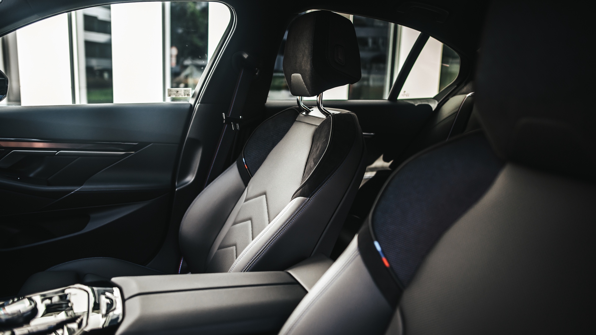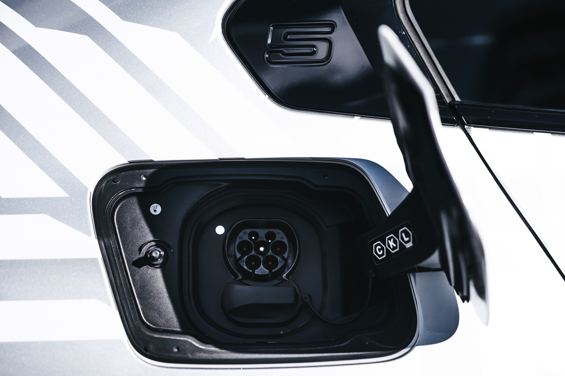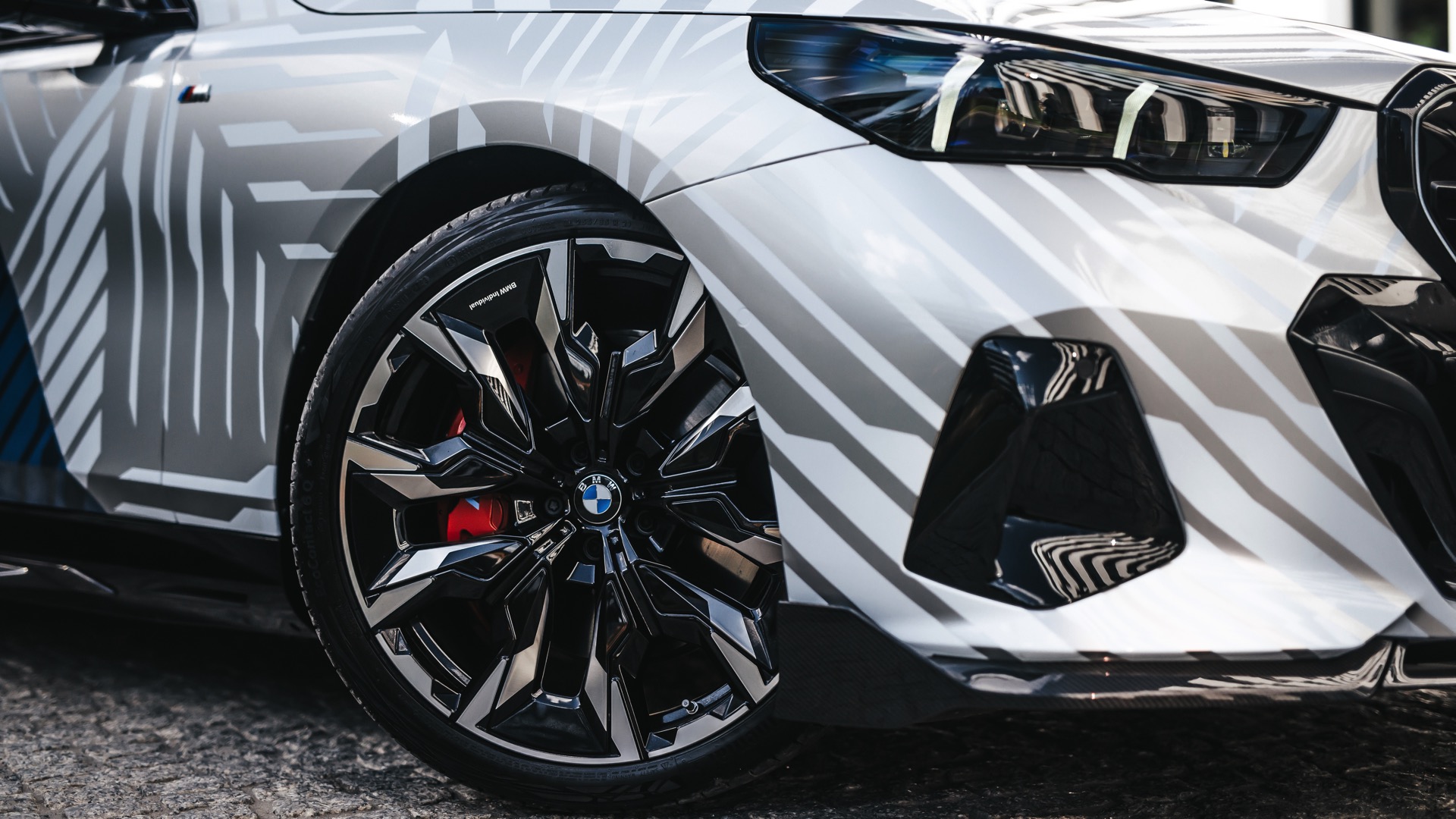 Kombiniert wird das spannende Spiel von Licht und Schatten mit vielen schwarzen Details, die zum Teil aus der Shadow Line mit erweiterten Umfängen und anderen Sonderausstattungen wie der Sonnenschutzverglasung resultieren, zum Teil aber auch nachgerüstet wurden. So sind die schwarz eingefasste Iconic Glow-Niere, die dunklen Fenster-Einfassungen und die abgedunkelten Scheiben auf Wunsch für jeden neuen 5er und i5 ab Werk erhältlich, auch die 21 Zoll großen Aerodynamikräder 954 I Bicolor Jetblack von BMW Individual stehen gegen Aufpreis ganz unproblematisch zur Wahl.