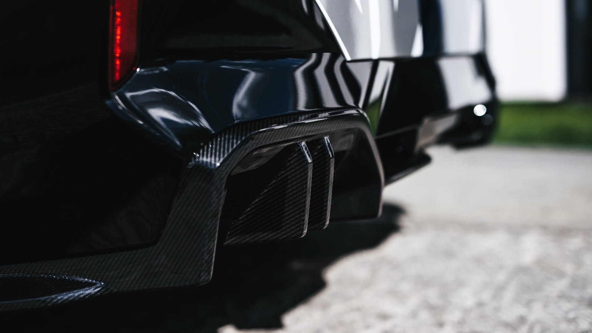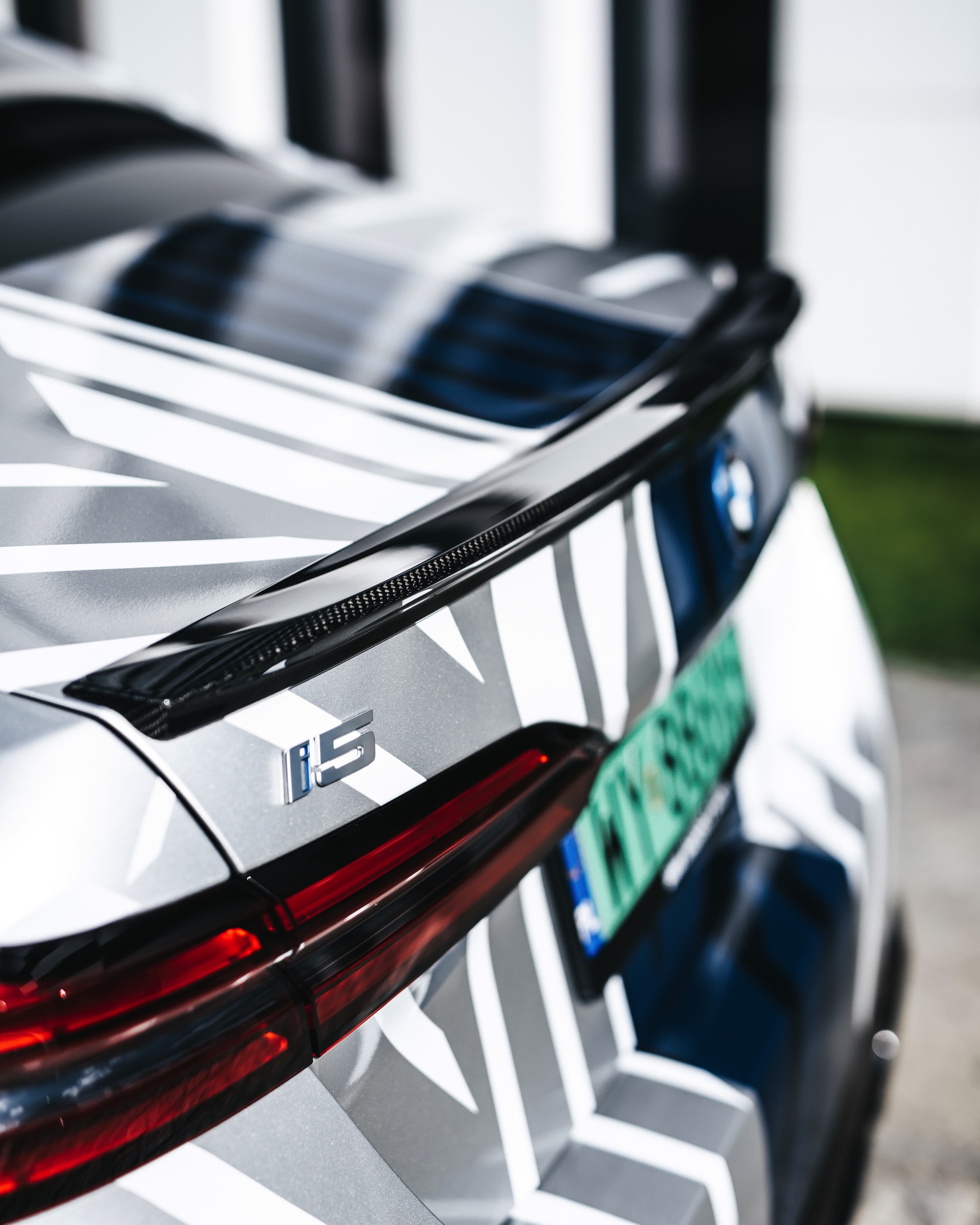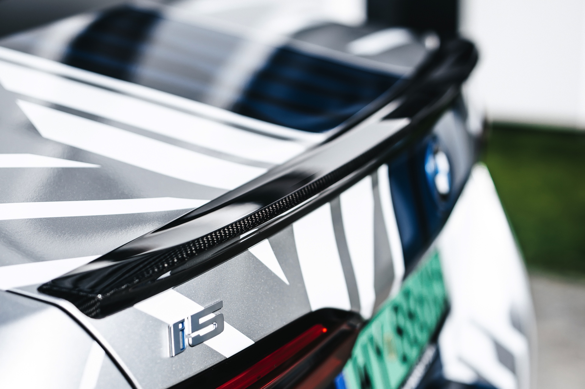 Zu den M Performance Parts in Sicht-Carbon zählen der Frontsplitter-Aufsatz, die Seitenschweller und die Diffusor-Aufsätze für die Heckschürze – letztere betonen die Position der Endrohre und weisen so noch deutlicher darauf hin, dass der über 600 PS starke Elektro-5er keinen Verbrenner an Bord hat und keine Abgase ausstößt. In gewisser Weise zwischen den Serien- und Tuning-Teilen rangieren die Carbon-Außenspiegel und die Carbon-Spoilerlippe auf der Heckklappe, denn diese sind als Bestandteil des M Carbon Exterieurpakets ebenfalls ab Werk erhältlich.