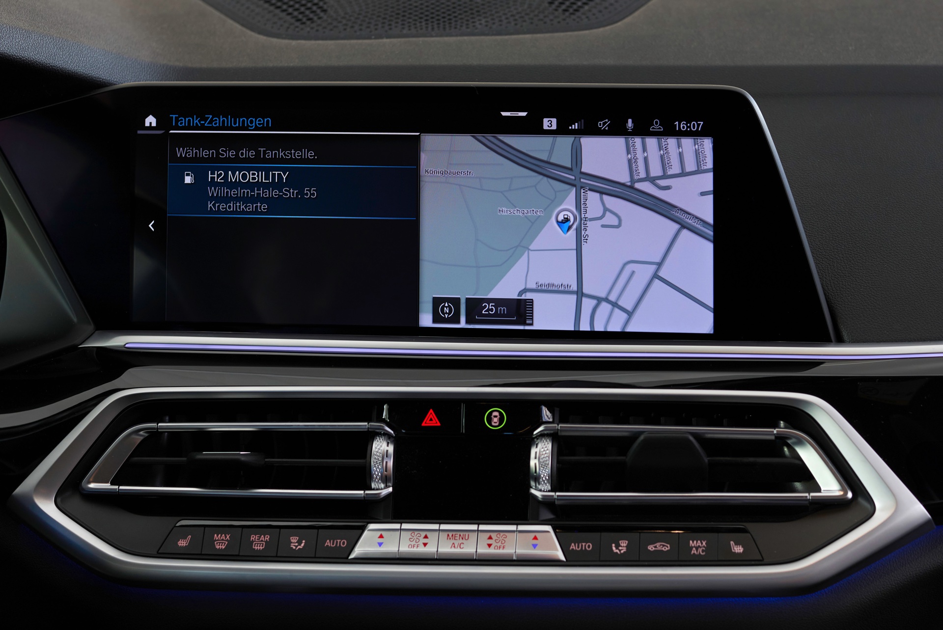 Bereits ins System integriert sind auch erste Wasserstoff-Tankstellen, an denen sich Fahrzeuge wie der vor ein paar Monaten auch von uns im Praxistest erprobte BMW iX5 Hydrogen betanken lassen: