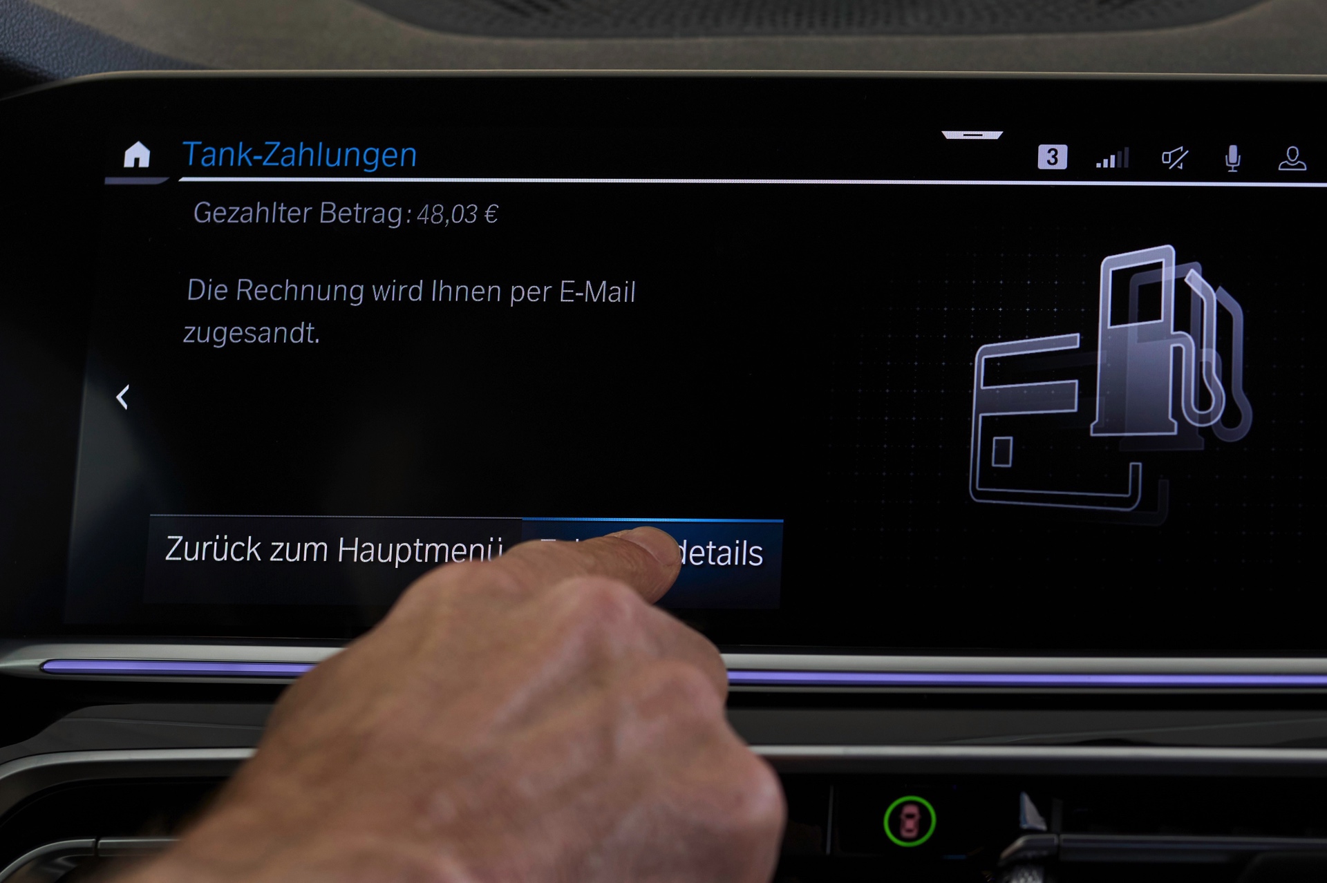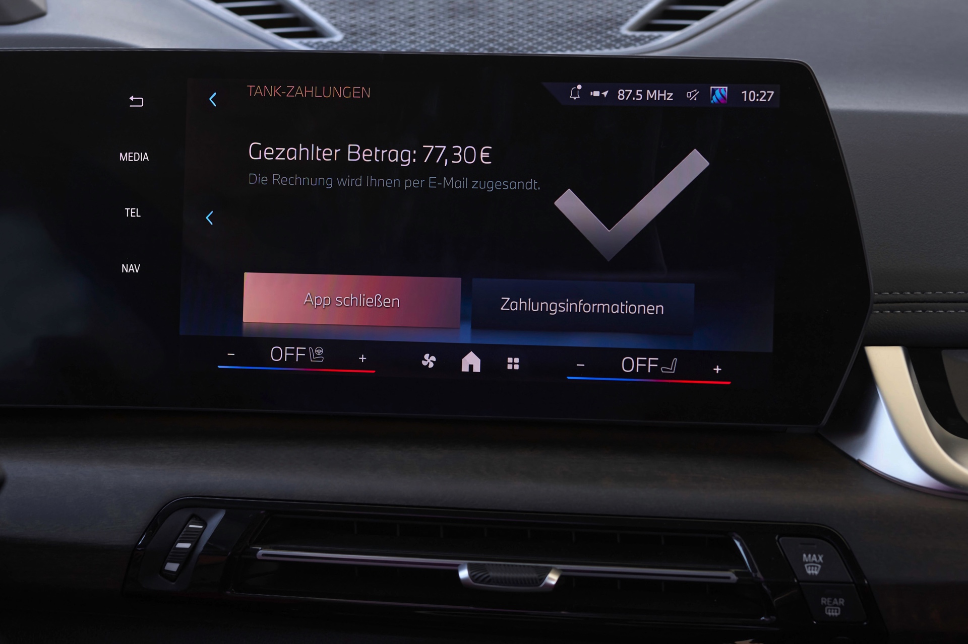 Wurde die entsprechende Tankstelle angefahren und der Motor ausgeschaltet, erscheint automatisch die Tank-Zahlungen-App im Display. Wer jetzt die Tankstelle bestätigt, die Zapfsäule auswählt und auf “Jetzt aktivieren und bezahlen” klickt, erhält eine entsprechende Bestätigung im Display und in der My BMW App auf dem Smartphone: