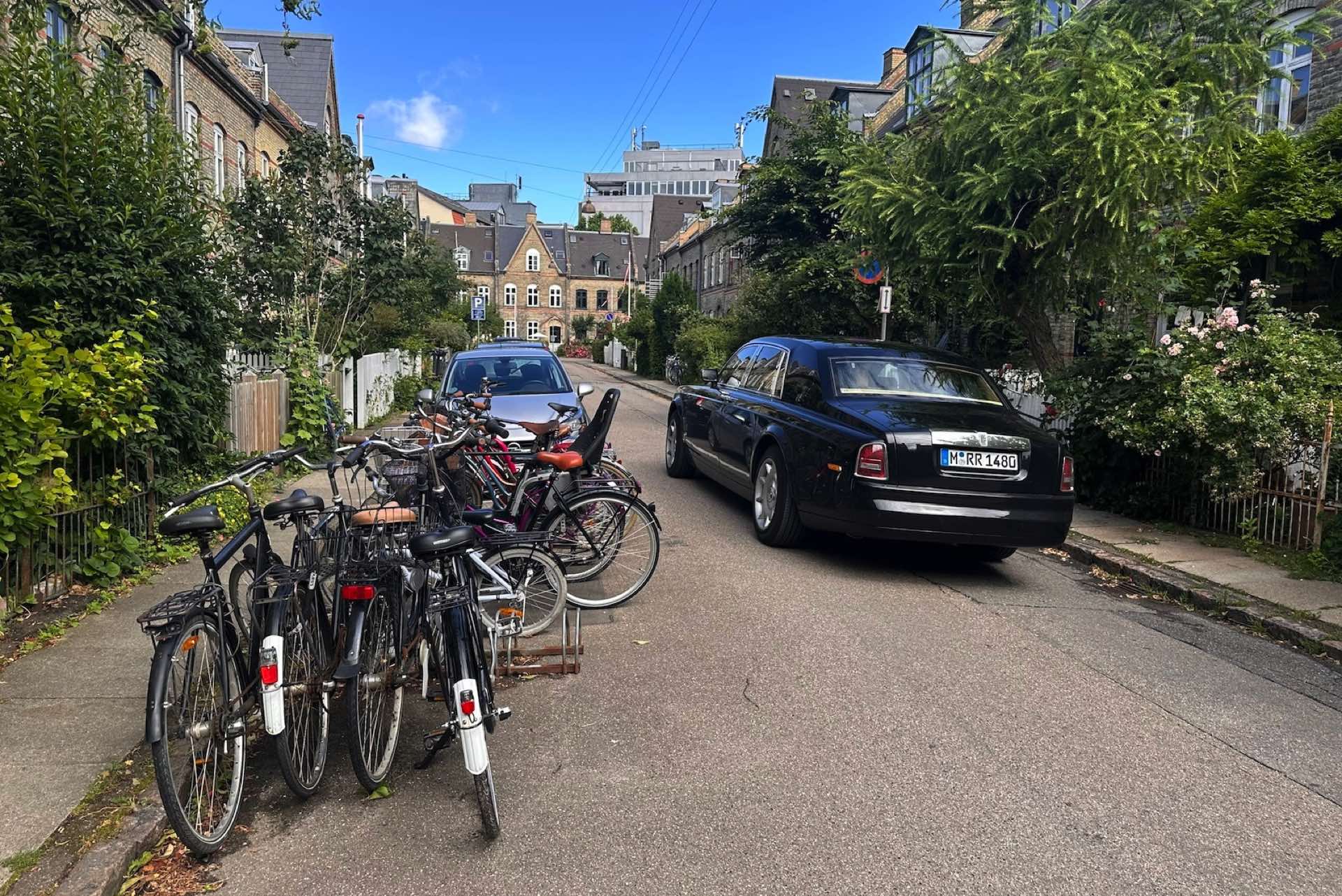 Die überaus flotte Gangart des V12-Kolosses hat jenseits der dänischen Grenze ein jähes Ende und die Tachonadel dreht sich mit Übertritt weit weniger engagiert als die Fahrstunde zuvor. Die Aufmerksamkeit, die der ab 2003 angebotene Rolls-Royce Phantom VII hier auf Straßen, Parkplätzen und an Tankstellen genießt, ist gefühlt nochmals nennenswert größer als in Deutschland. Über die E45 geht es schließlich südostwärts, über Odense und Ringsted bis nach Kopenhagen. Hier, in der fahrradfreundlichen dänischen Hauptstadt, geht es in der Innenstadt nicht nur in der Hotelparkgarage eng zu. Der mächtige Rolls-Royce belegt wie schon nahe Potsdam ohnehin zwei Parkplätze hintereinander, um zur Ruhe zu kommen.