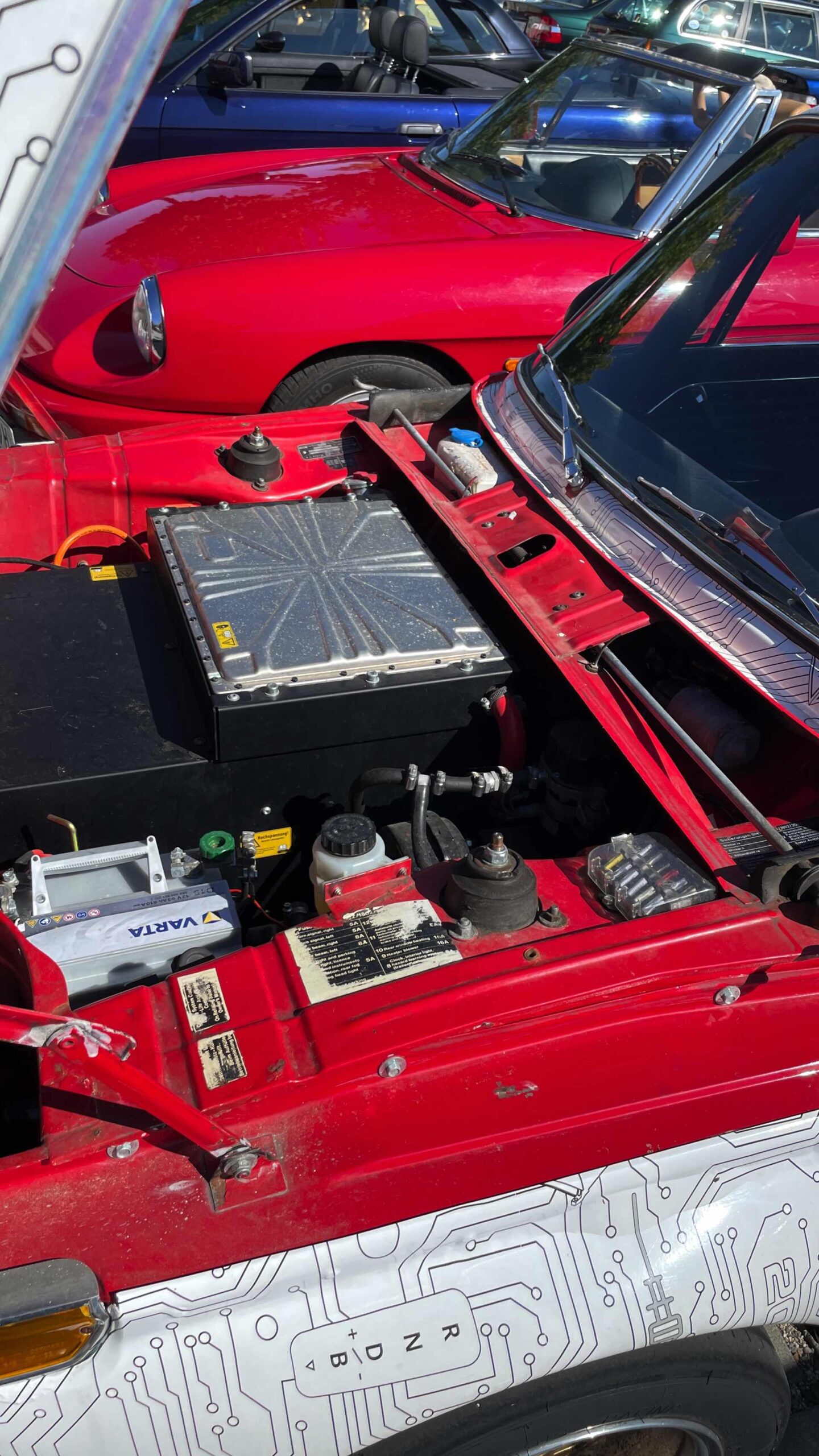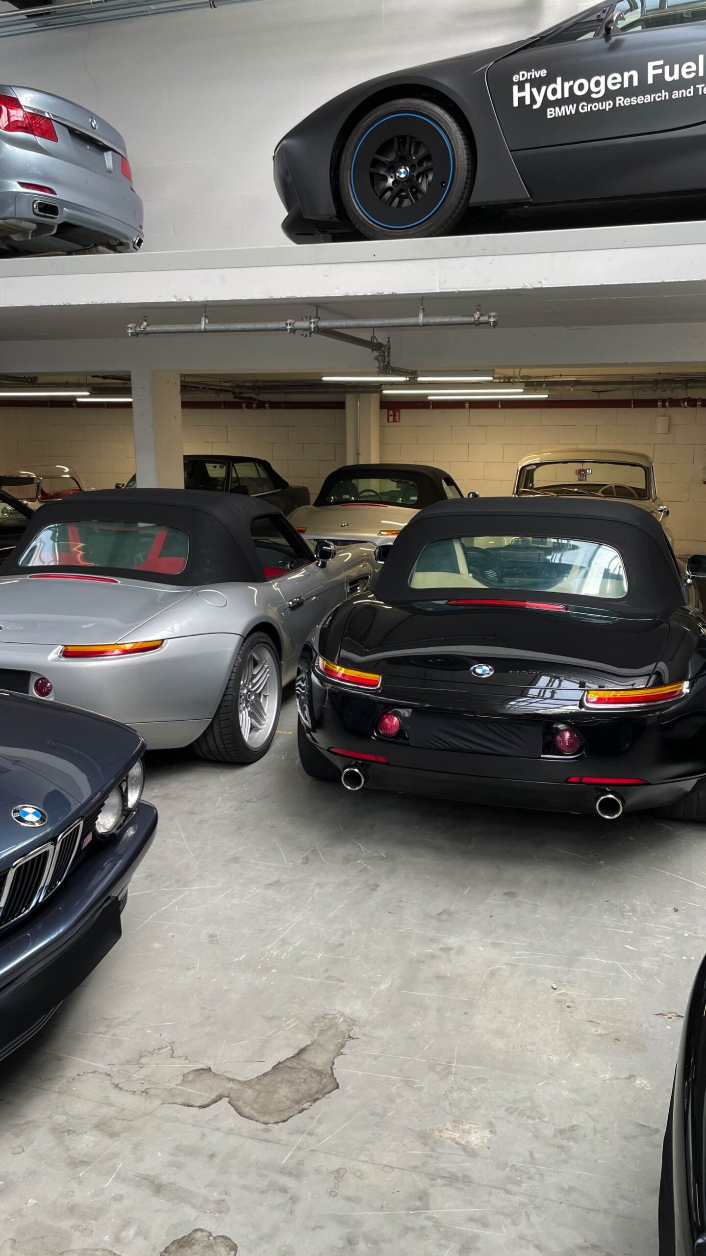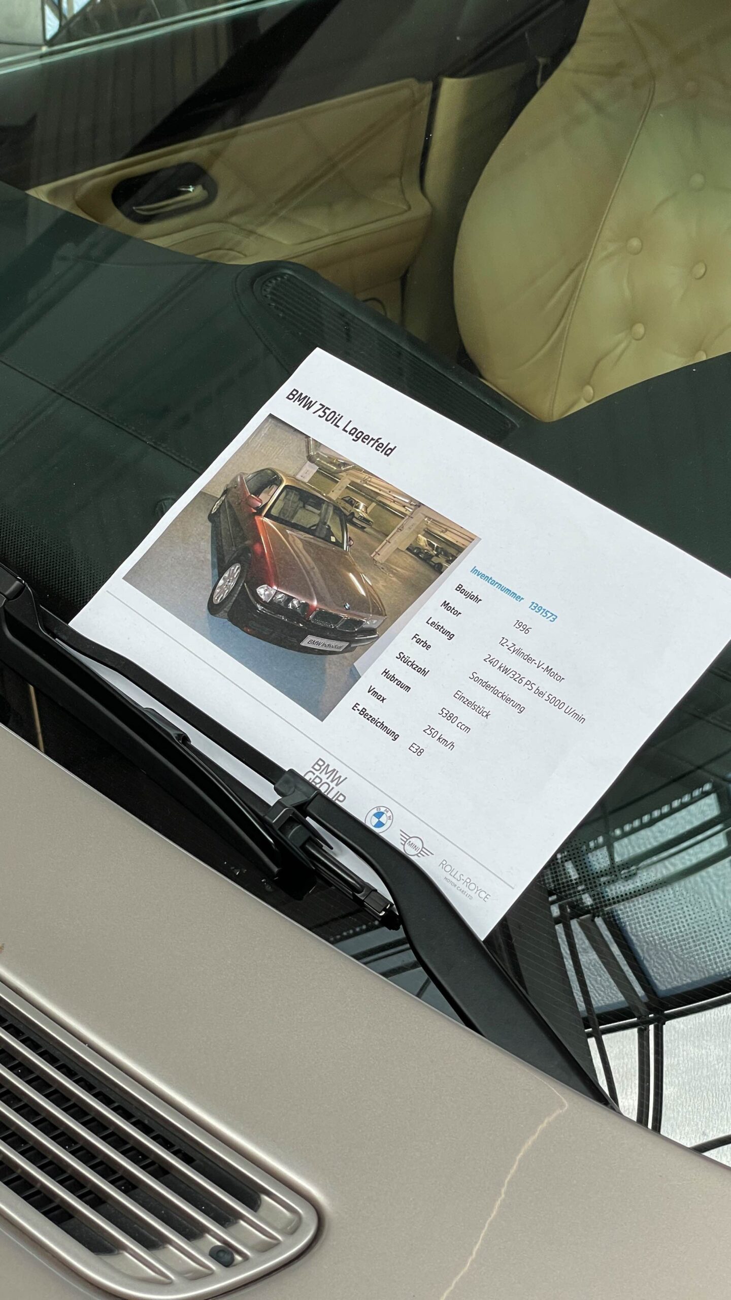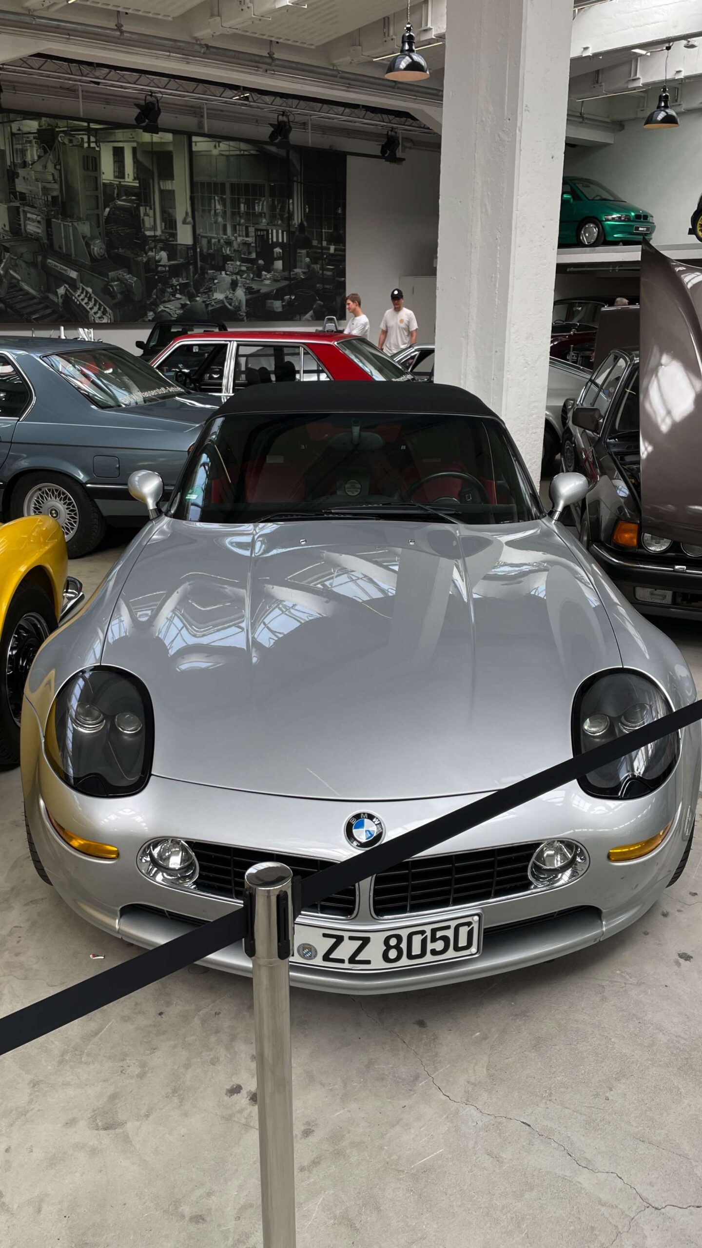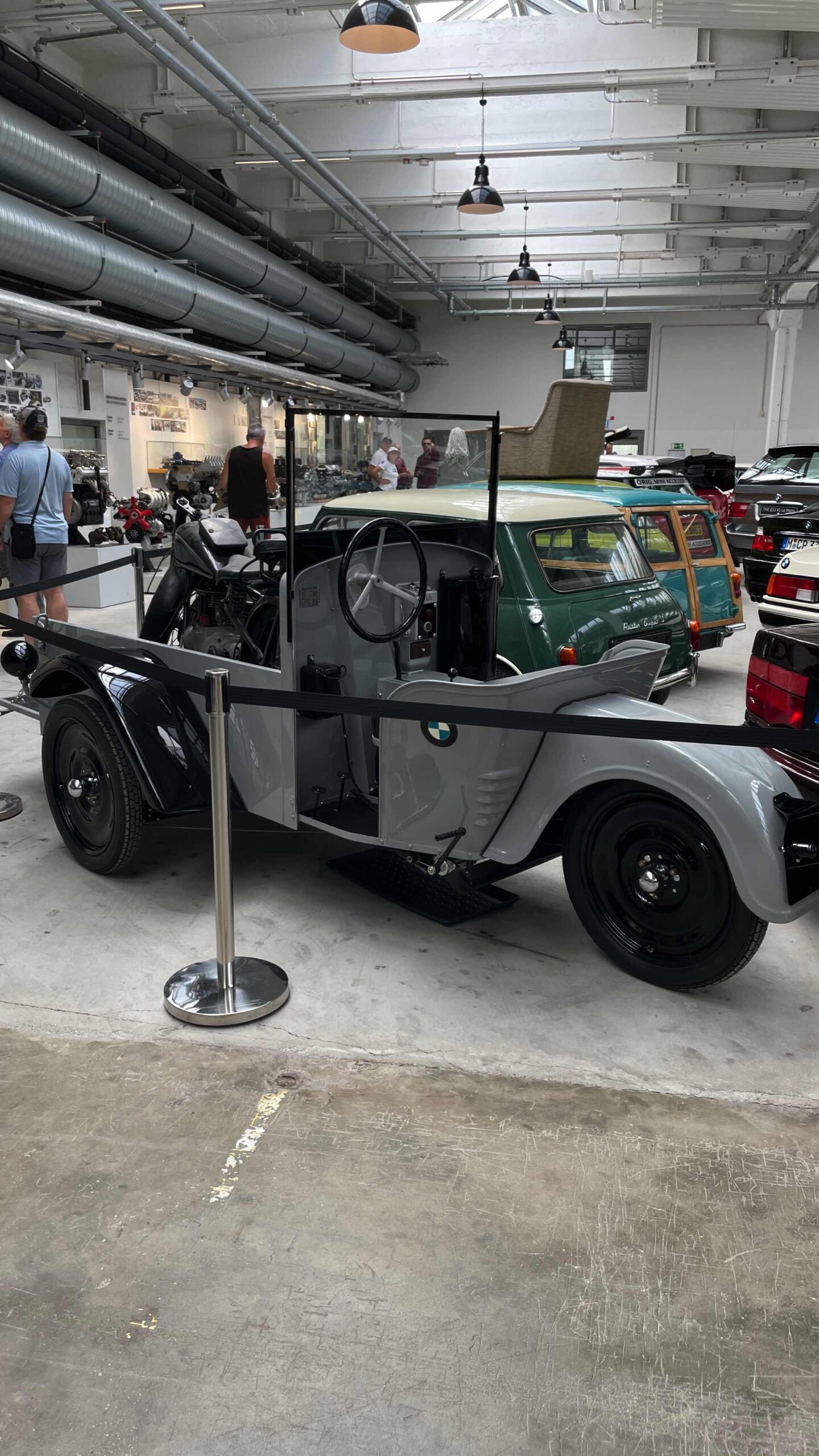 Auch Fahrzeuge aus Film- und Fernsehen gehören zu dieser Sammlung, darunter der BMW 501 „Barockengel“ aus der Fernsehserie „Funkstreife Isar 12“ oder der grüne Mini Cooper von Mr. Bean mit Sessel auf dem Dach. Ein absolutes Highlight ist natürlich auch der BMW 750iL von Karl Lagerfeld, der seiner Zeit als extralange Variante des 7er E38 mit Two-Tone-Lackierung voraus war.