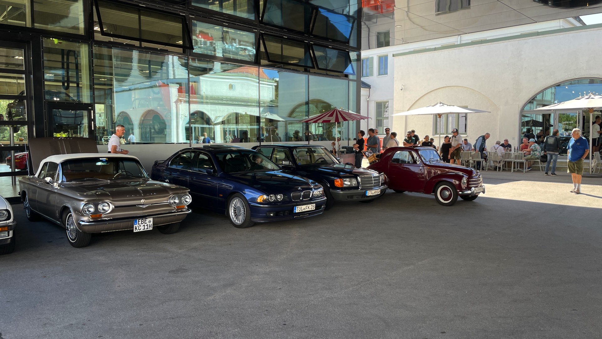 … „Wheels & Weißwürscht“ sind Freunde von historischen Gefährten eingeladen, ihre Schmuckstücke zu präsentieren und mit Gleichgesinnten zu fachsimpeln. An ausgewählten Samstagen zwischen Mai und September ist das am früheren Sitz der Firmenzentrale von BMW, am Oberwiesenfeld an der Moosacher Straße 66, möglich. Auf dem Parkplatz finden sich dann zwischen vielen E30 und anderen älteren BMW auch immer wieder klassische Porsche, Audi oder Mercedes. Als Stärkung erhalten die Teilnehmer eine zünftige, bayerische Brotzeit mit Weißwürschten im Café „Mo 66“.