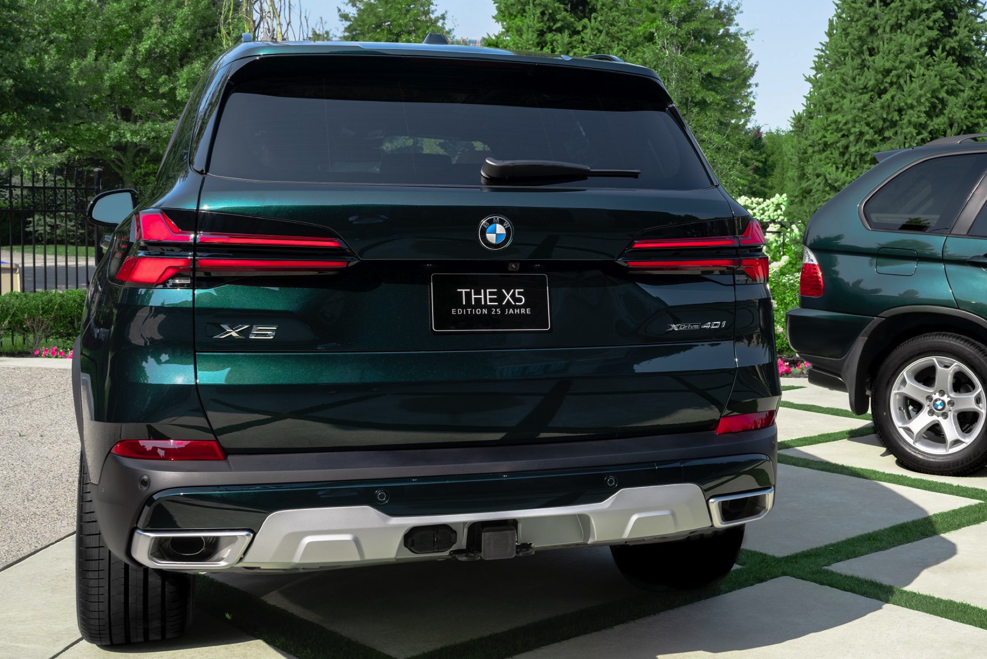 Die Sonderedition basiert auf dem BMW X5 xDrive40i mit M Sportpaket, nutzt aber auch einige der silbernen Design-Elemente der rustikaleren xLine. Dank der Shadow Line mit erweiterten Umfängen tragen die 250 Einheiten der 25-Jahre-Edition eine matt-schwarze Einfassung für die beleuchteten Iconic-Glow-Nieren, viele andere Details sind in Hochglanz-Schwarz ausgeführt. Die 21 Zoll großen Leichtmetallräder im Y-Speichen-Design 741 sollen an die ähnlich, aber weniger komplex gestaltete Y-Speiche 131 erinnern, die einst im 18-Zoll-Format auf zahlreichen X5 E53 montiert war.