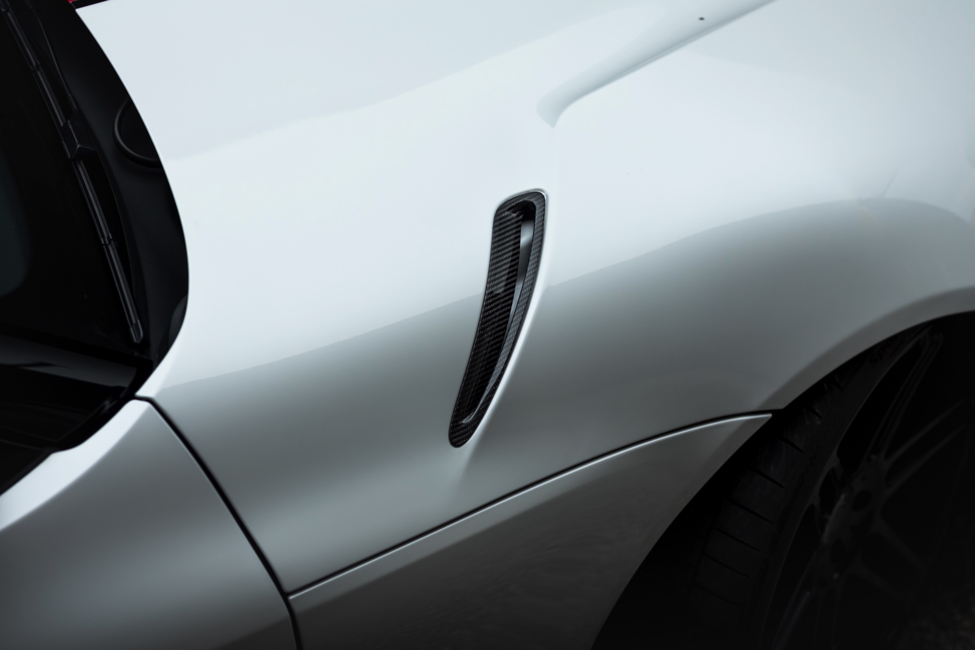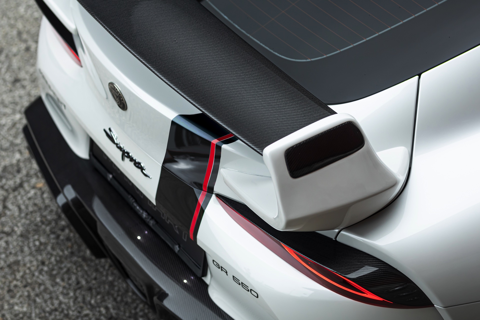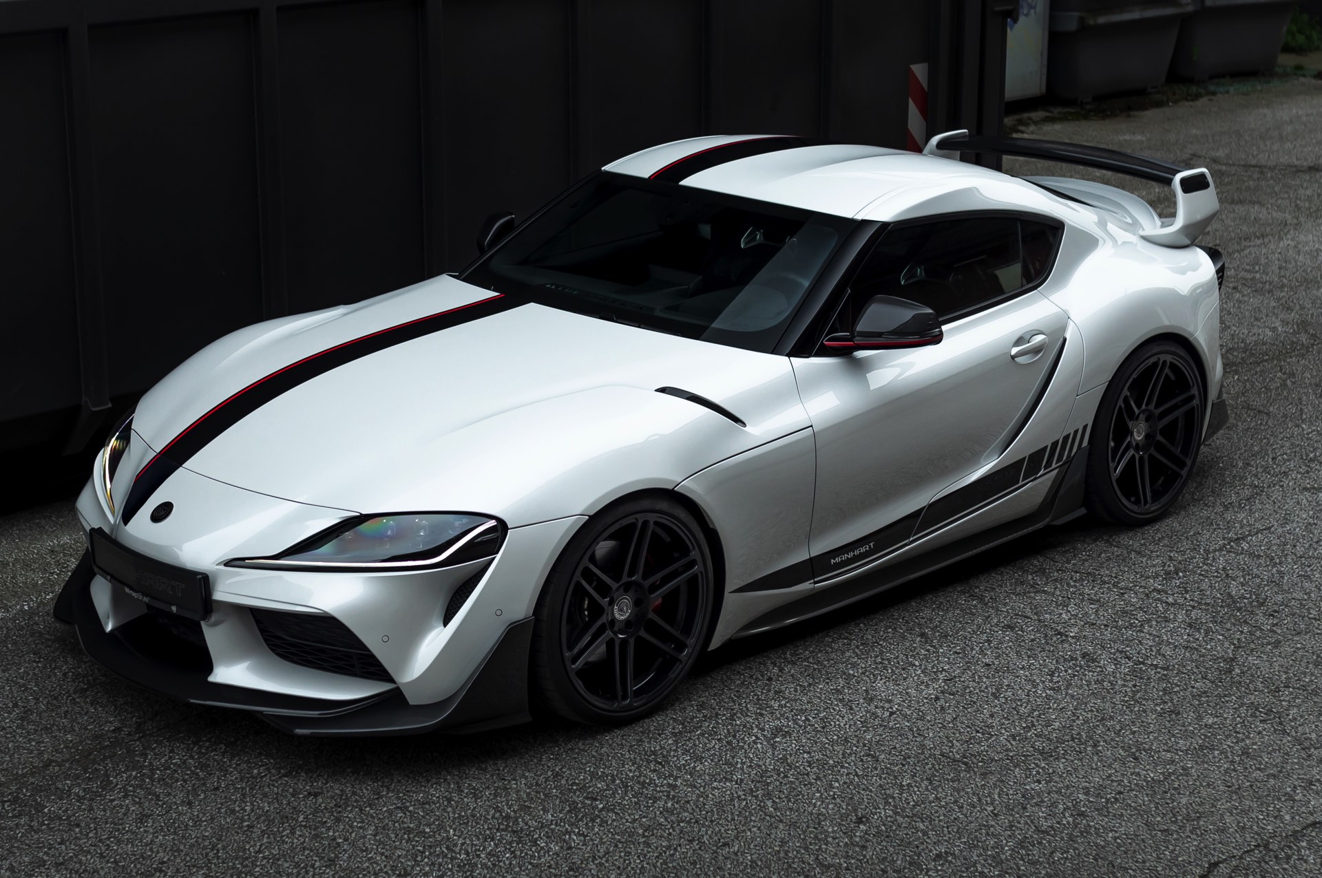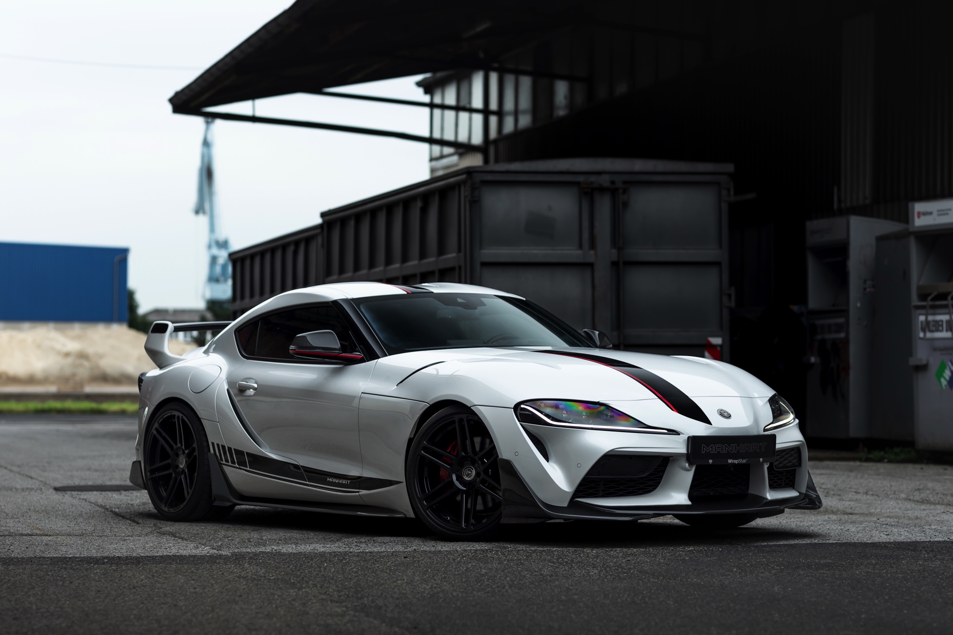 Die ohnehin außergewöhnliche Optik des Supra kann dem Coupé mit einem Manhart Carbon-Bodykit unter die Arme greifen: Frontspoiler, Motorhauben-Einsätze, Seitenschweller, Spiegelkappen und Diffusor stehen dabei klar im Schatten des Heckflügels, der schon von weitem für eine klare Abgrenzung von der Serie sorgt.