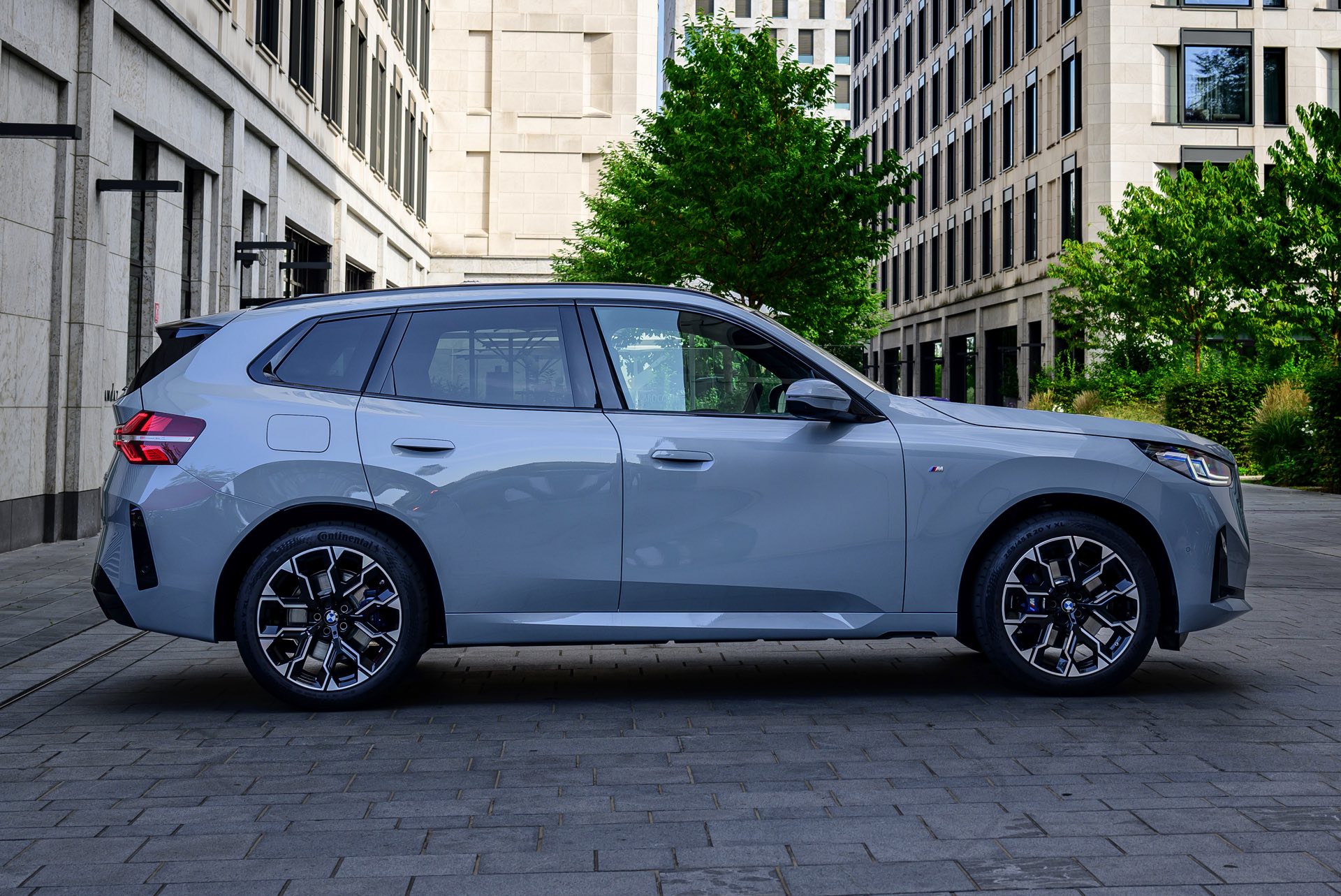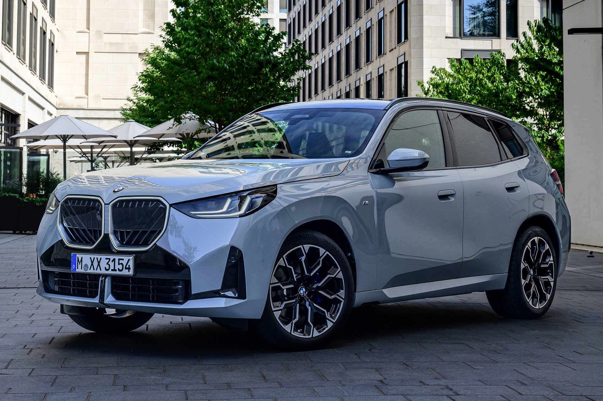 Dass der neue BMW X3 (G45) auch ohne leuchtende Farbe eine gute Figur machen kann, zeigt ein aktuelles Foto-Set zum Einstiegsmodell X3 20 xDrive in der Trendfarbe Brooklyn Grey. Der X3 trägt das M Sportpaket und die 20 Zoll großen Leichtmetallräder Doppelspeiche 1036 M Bicolor, die auf Wunsch direkt ab Werk mit Sportreifen bezogen sind. An der Front betont die M-Schürze mit ihrem großen schwarzen Lufteinlass den Luftbedarf des Verbrenners, darüber sehen wir die neue Niere mit ihrem markanten Innenleben samt diagonalen Streben – nur das Topmodell X3 M50 kommt mit einer exklusiven M-Niere, die über horizontale Streben verfügt.