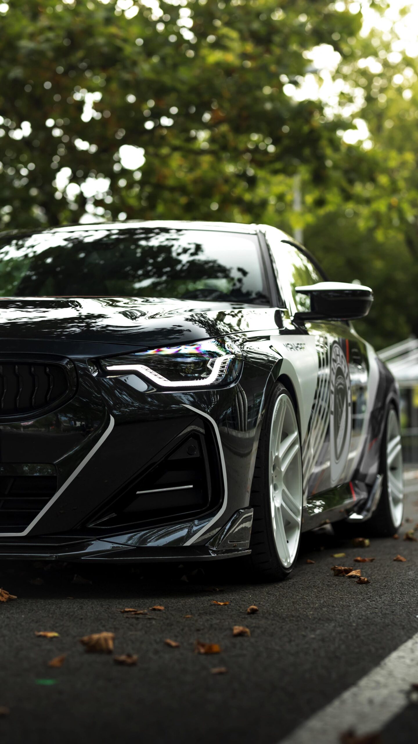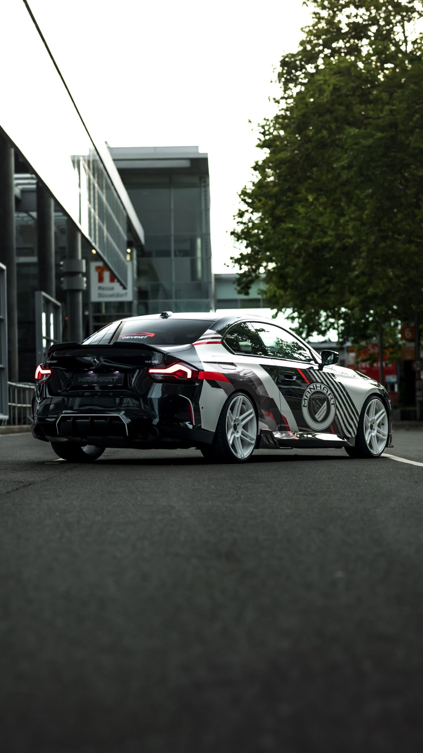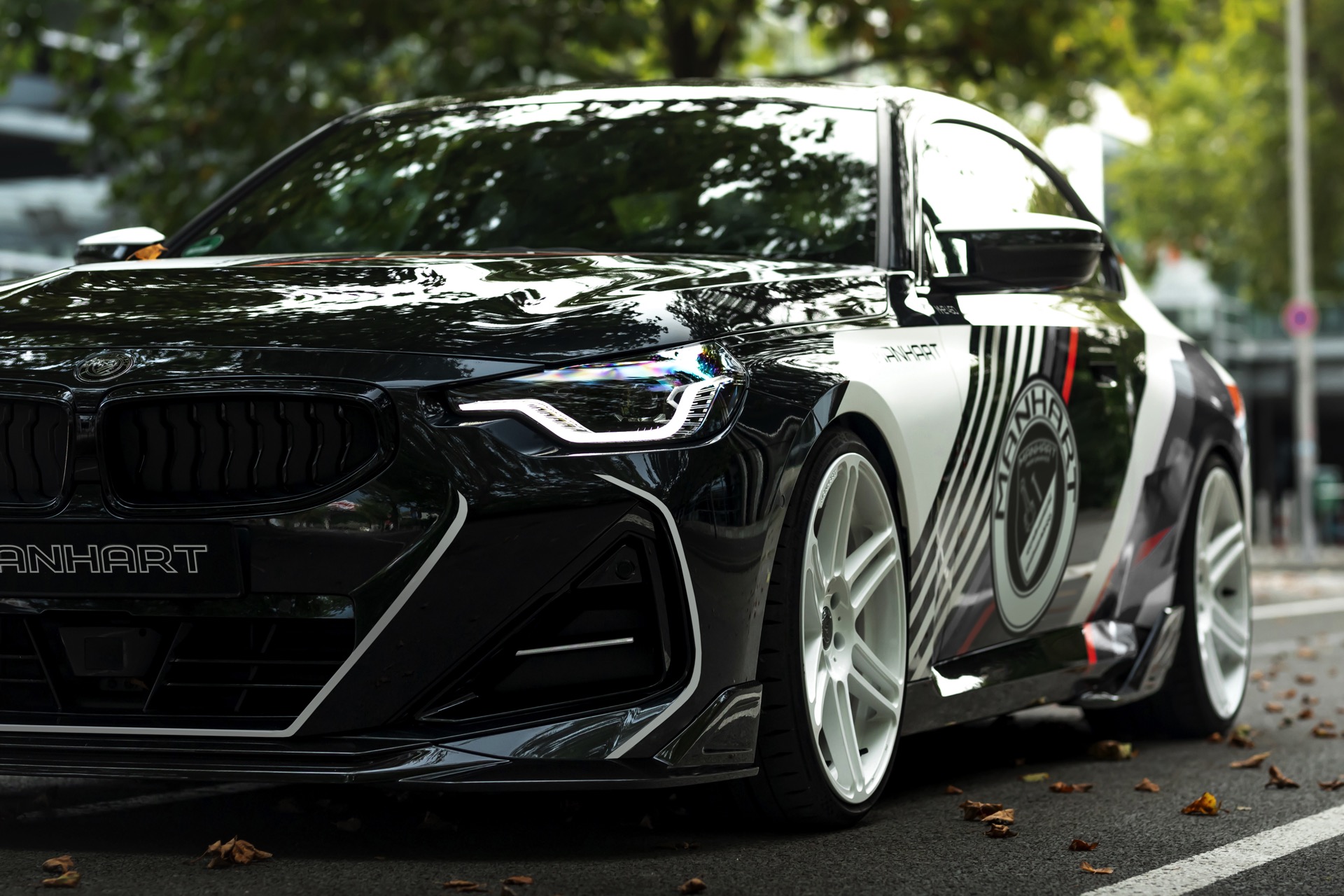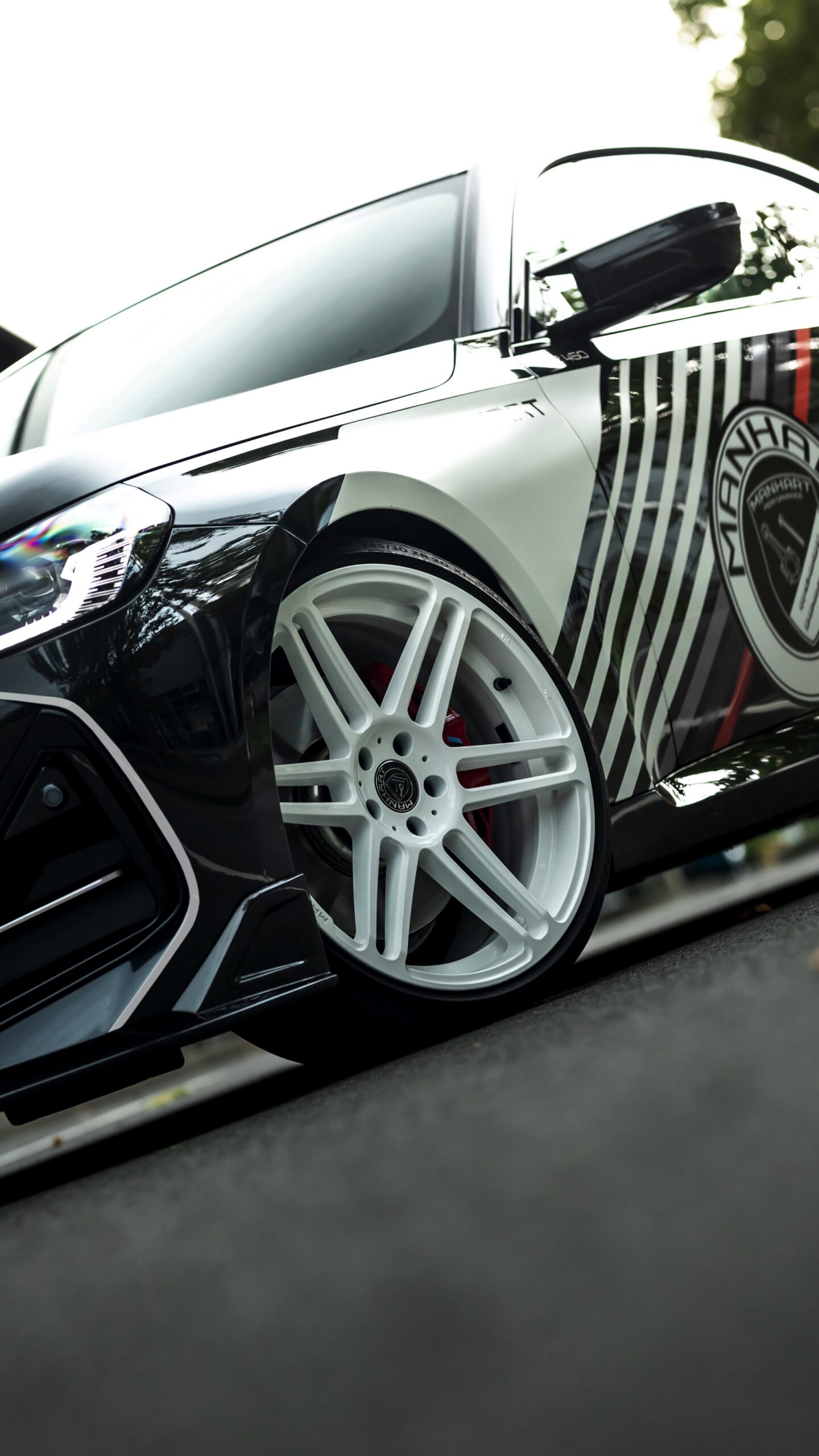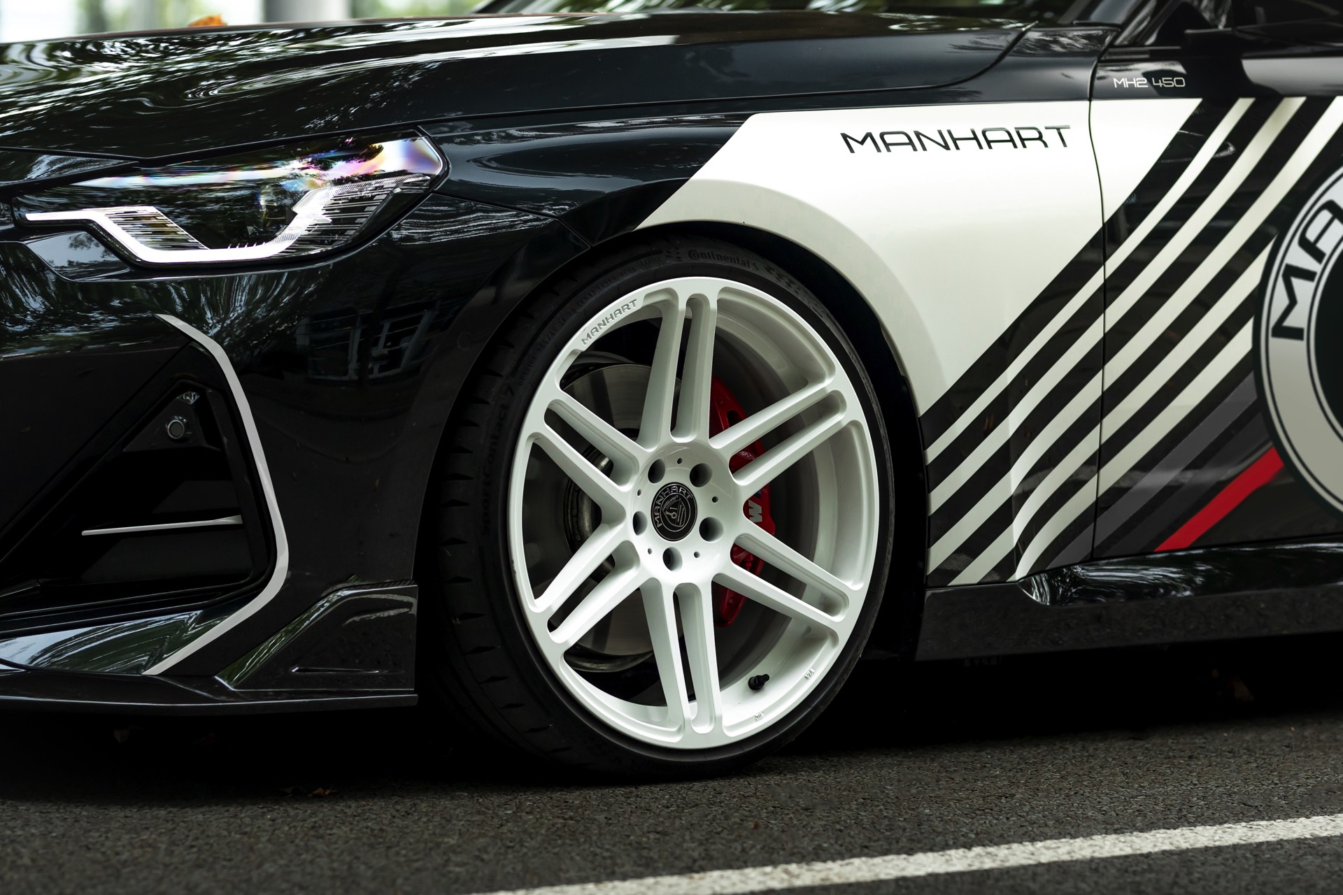Während die Leistung nach oben geht, wandert der Schwerpunkt deutlich nach unten: Der BMW M240i von Manhart rückt sichtbar näher an den Asphalt, entweder mittels Tieferlegungsfedern von H&R oder gleich mit einem Gewindefahrwerk der KW Variante 4. Passend dazu gibt es 20 Zoll große Felgen im Design Concave One, das wir im aktuellen Fall mit Lackierung in glänzendem Weiß zu sehen bekommen.