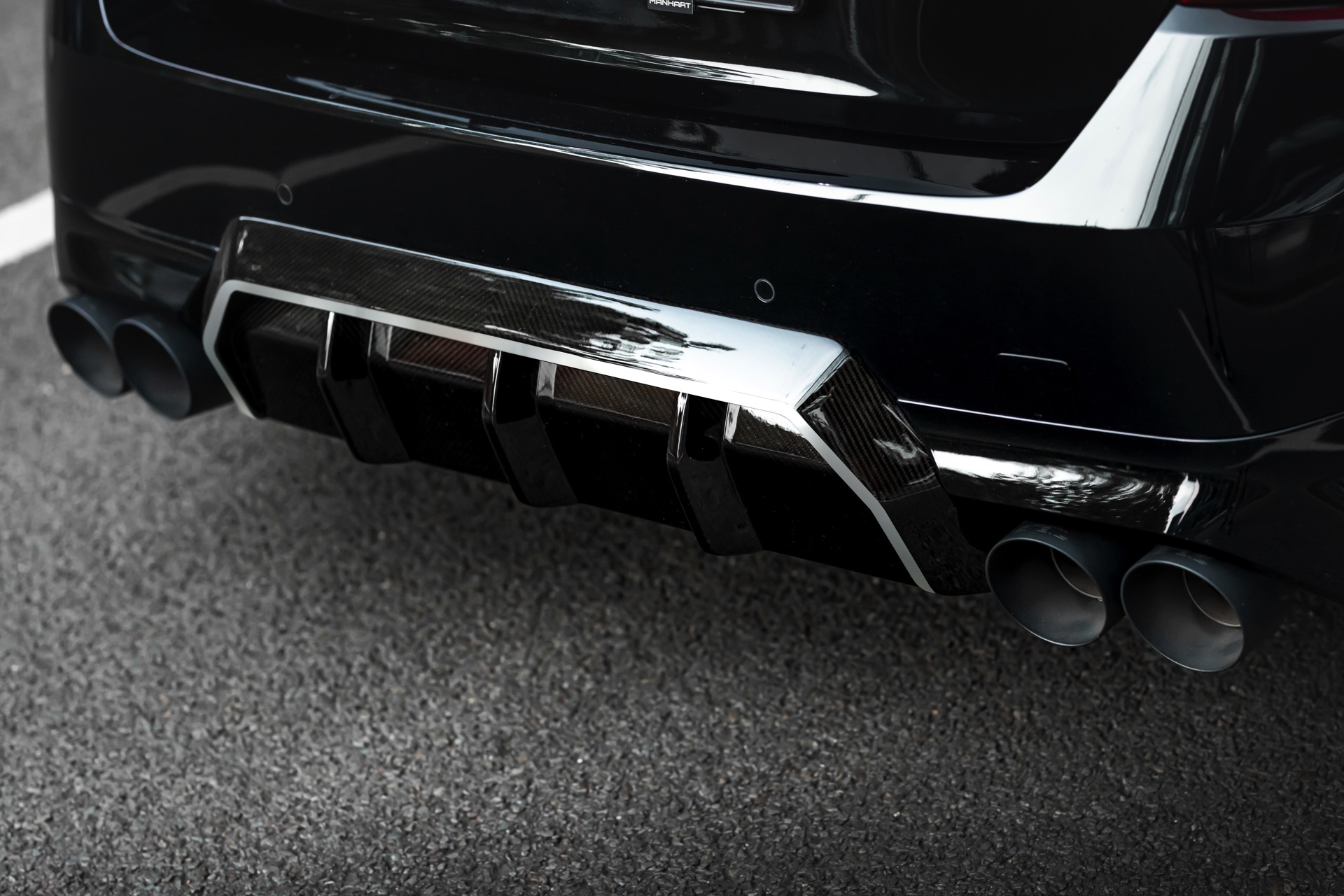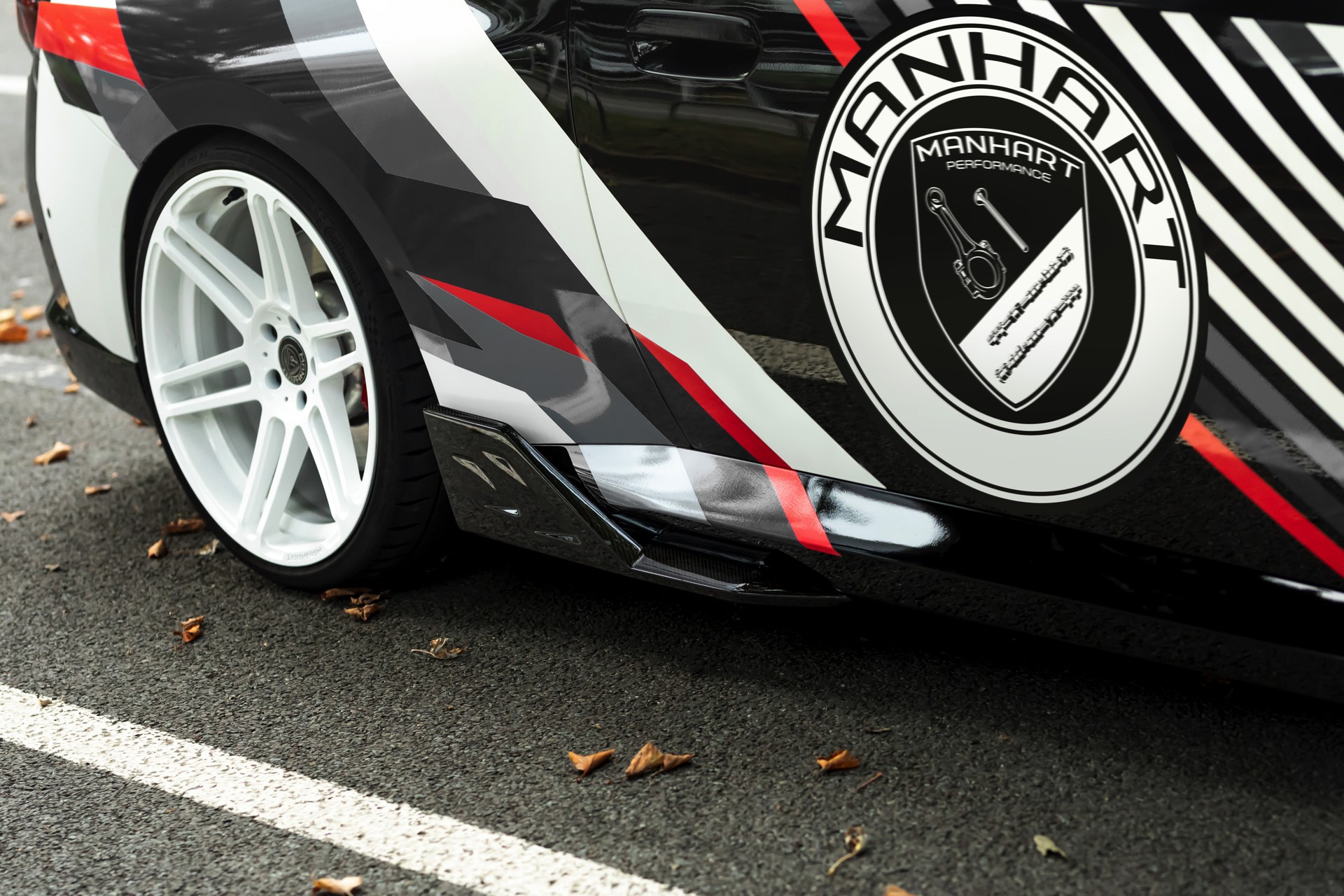 Wie sicht- oder unsichtbar die Carbon-Anbauteile sein sollen, kann jeder Kunde selbst entscheiden: Wer sich für eine dunkle Farbe und eine auffällige Folierung wie beim gezeigten MH2 entscheidet, kann die Carbon-Teile dezent in den Hintergrund treten lassen. Ganz anders wäre ihre Wirkung in Verbindung mit einer leuchtenden Farbe, denn dann würden Frontspoiler, Seitenschweller-Aufsätze, Heckdiffusor und Heckspoiler auch auf den ersten Blick deutlich stärker in Erscheinung treten.