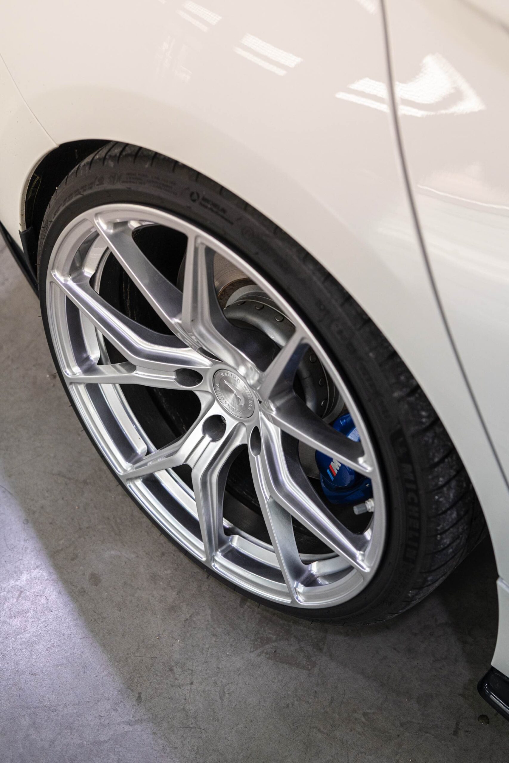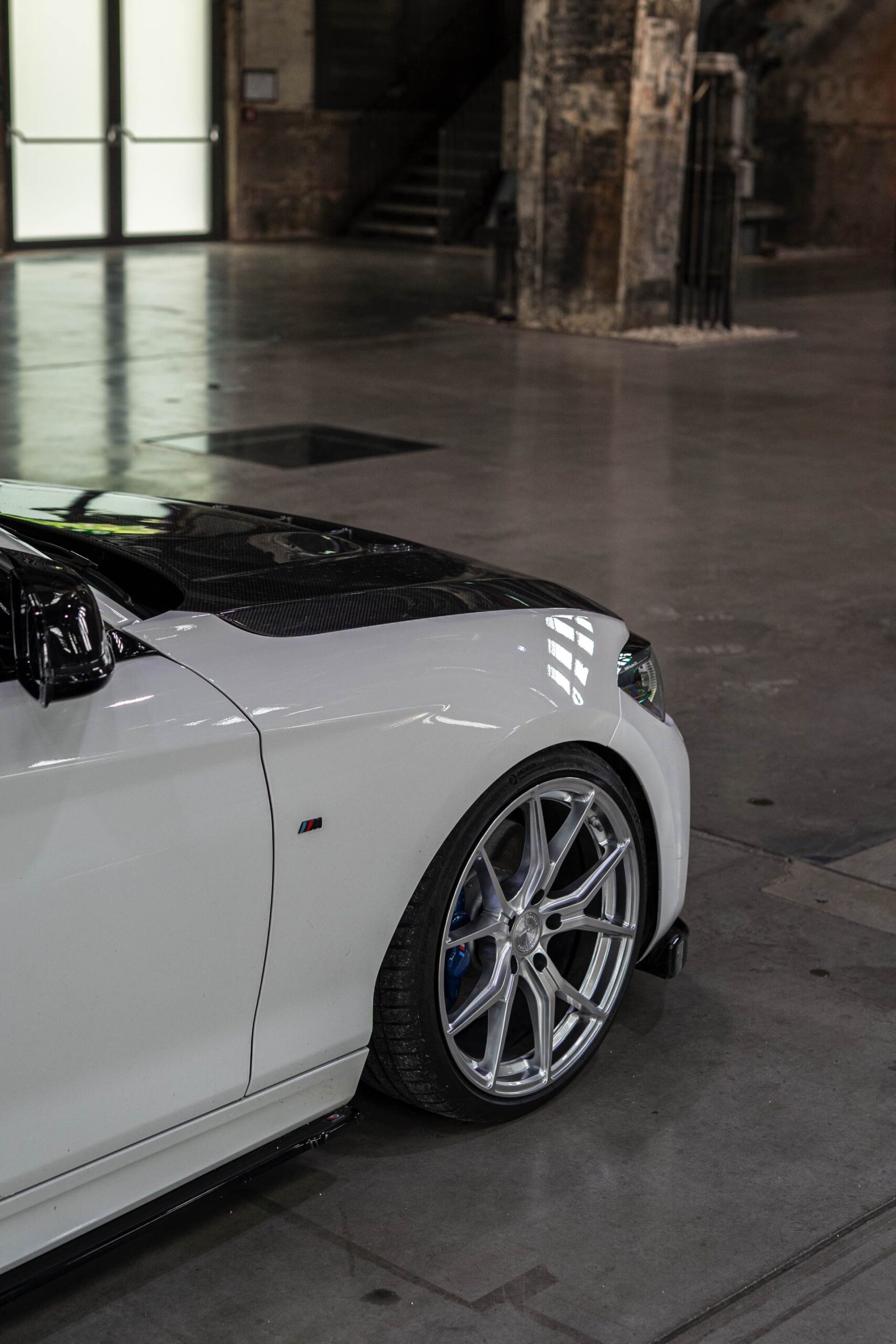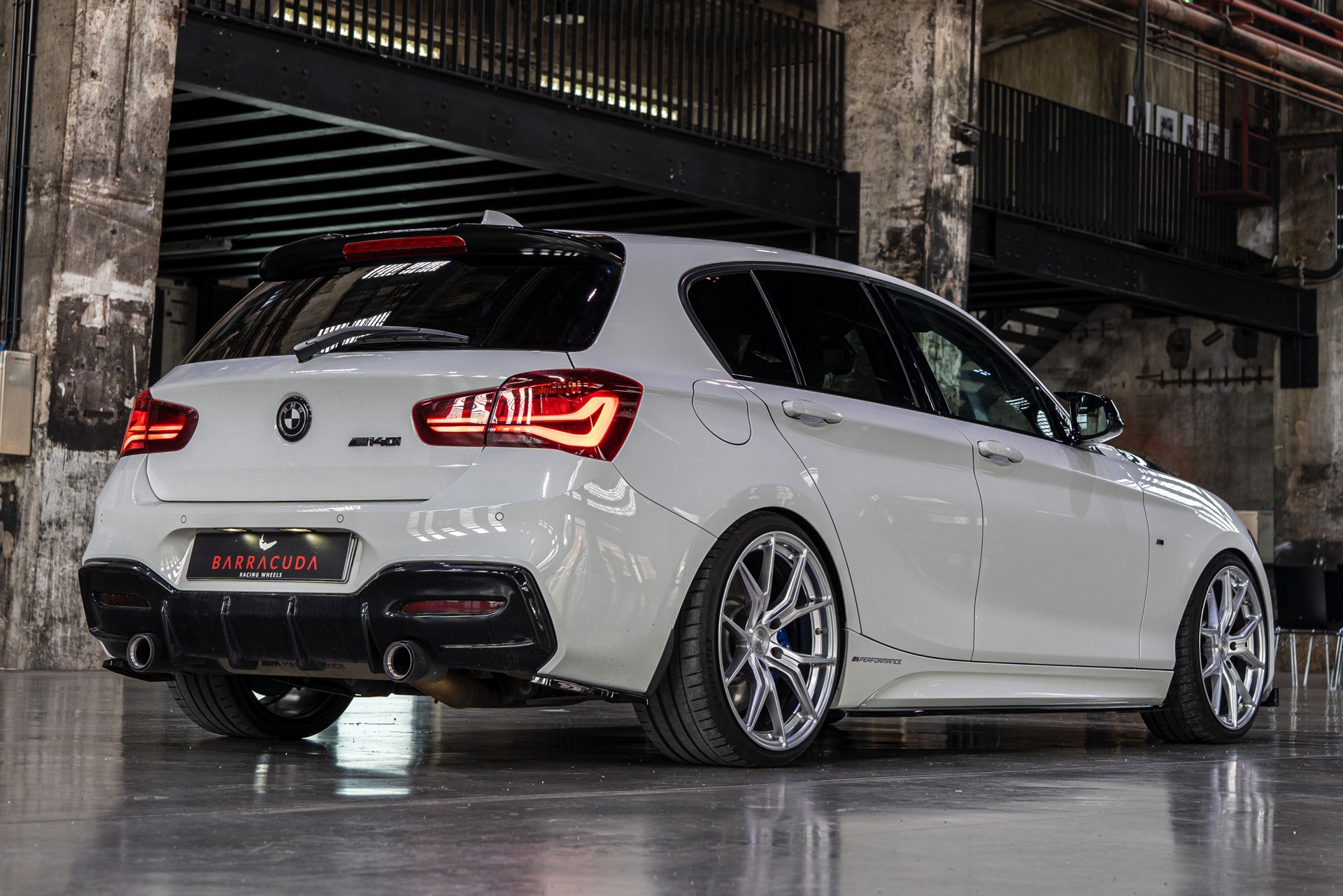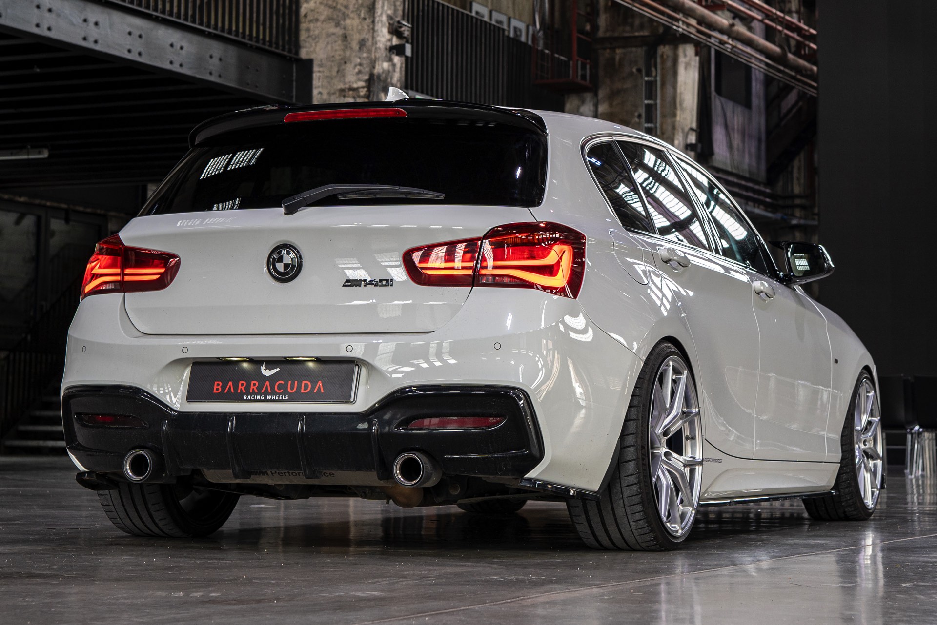 In der Seitenansicht kommen die 19 Zoll großen Felgen im Inferno-Design von Barracuda Racing Wheels dank der per ST CA-Gewindefahrwerk realisierten Tieferlegung noch besser zur Geltung und unterstreichen die klare Abgrenzung von der Serie. Die Felgen sind in Hyper Silver lackiert, auf Wunsch stehen aber auch andere Finishs zur Verfügung.