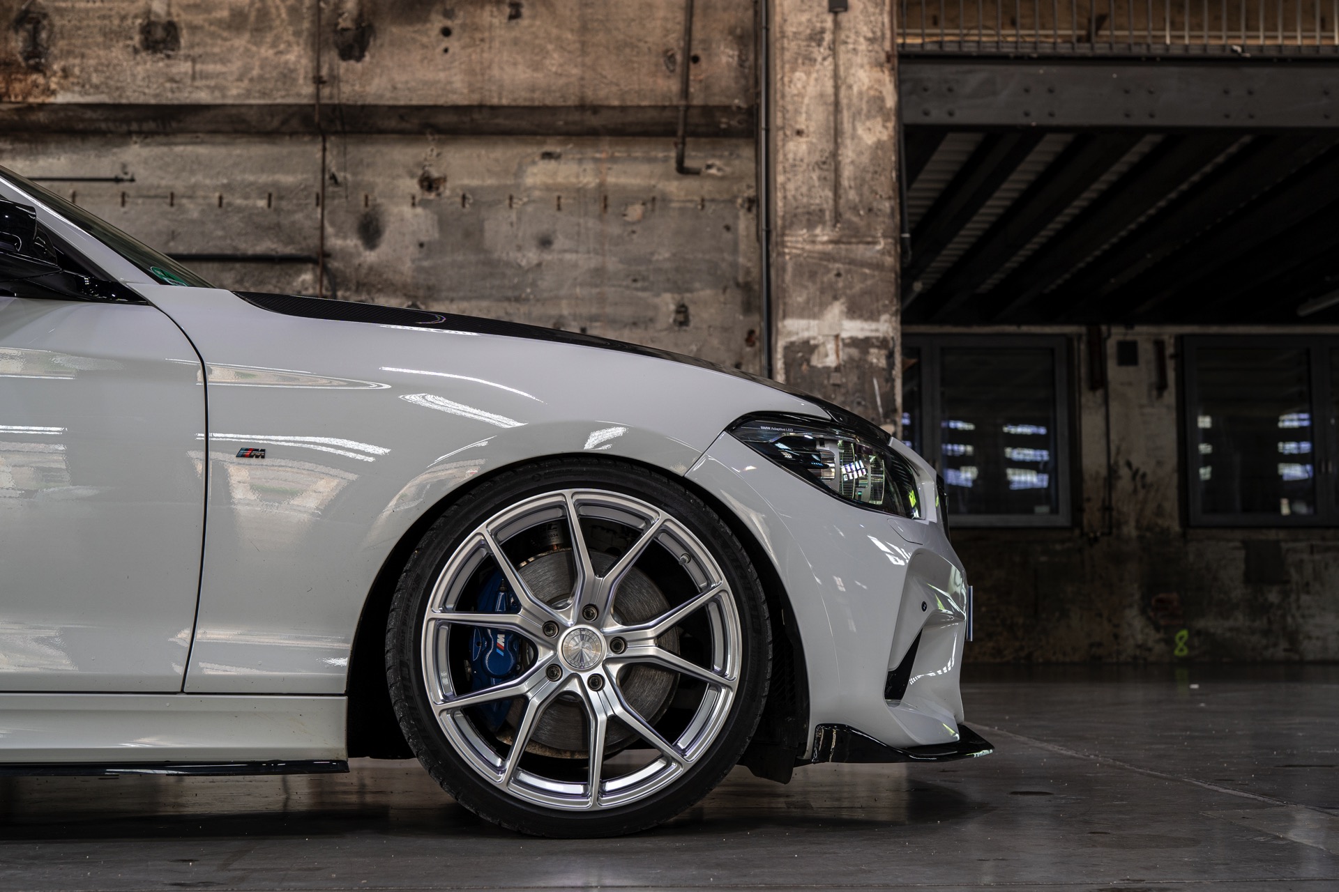 Komplett serienmäßig ist hingegen der Antrieb des BMW M140i: Obwohl es für den B58 diverse Optionen zur Leistungssteigerung gibt, ist der Tuning-1er weiterhin mit 340 PS und 500 Newtonmeter Drehmoment unterwegs – weniger als beim M2, aber voll auf Augenhöhe mit dem 1er M Coupé (E82) und somit ganz sicher nicht zu schwach auf der Brust.