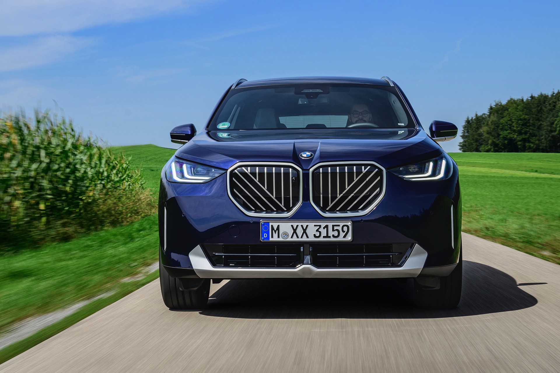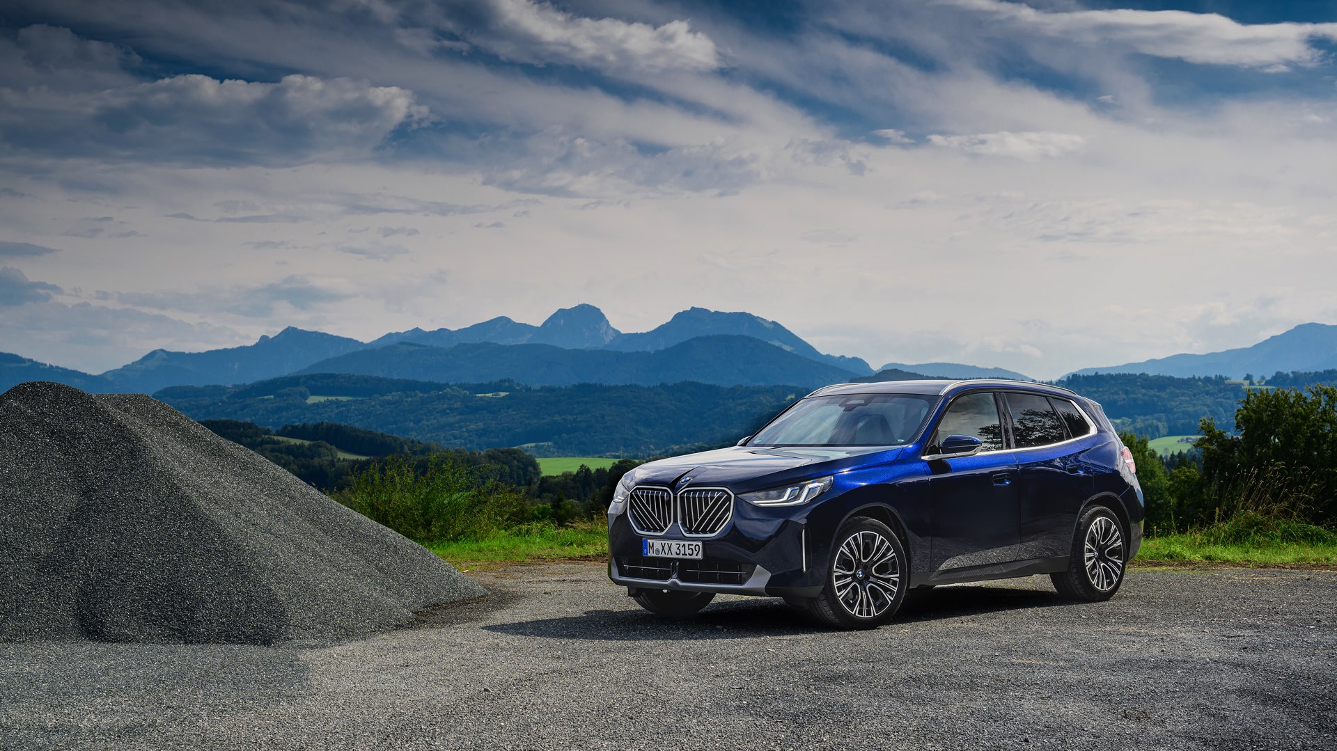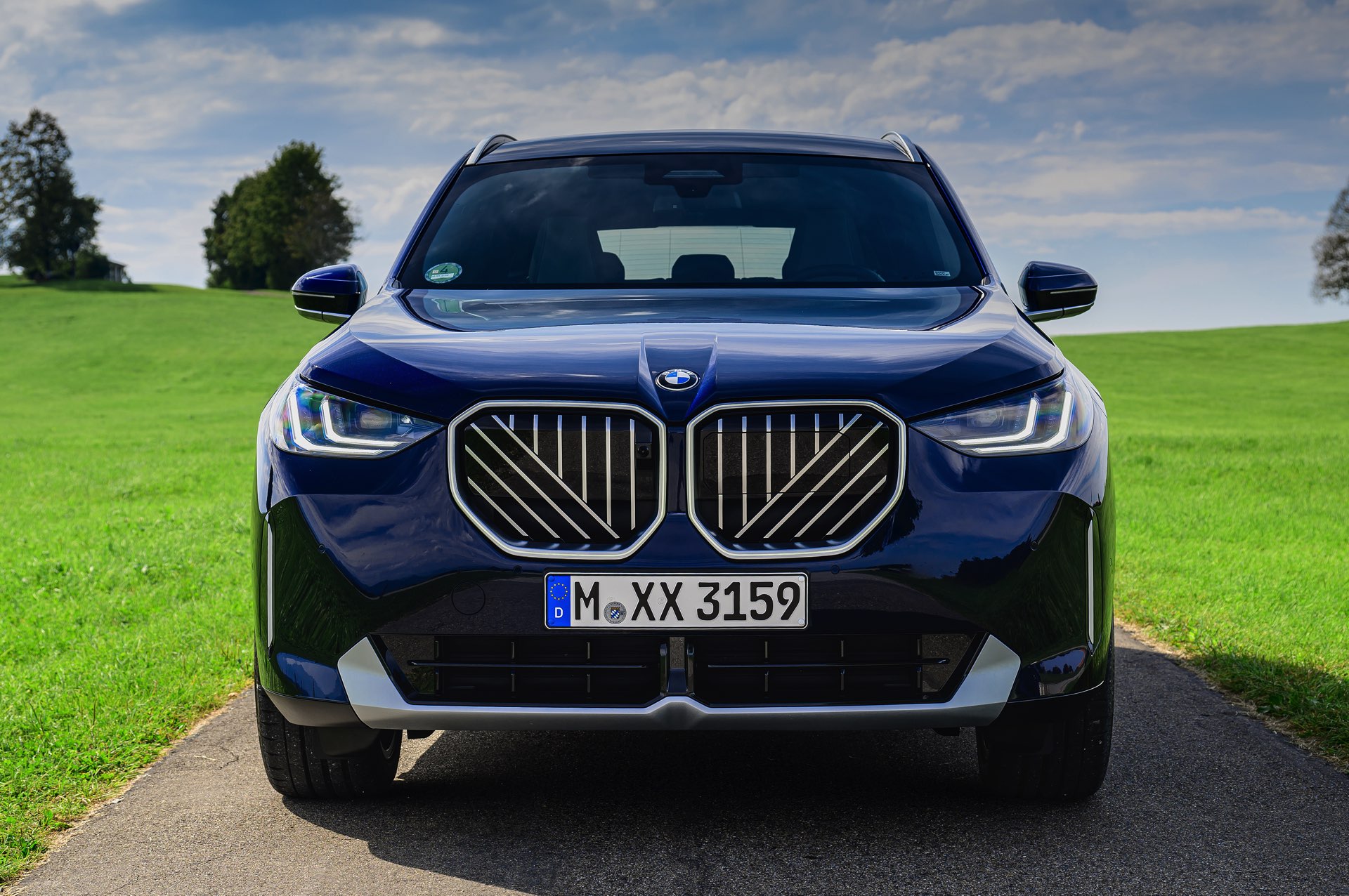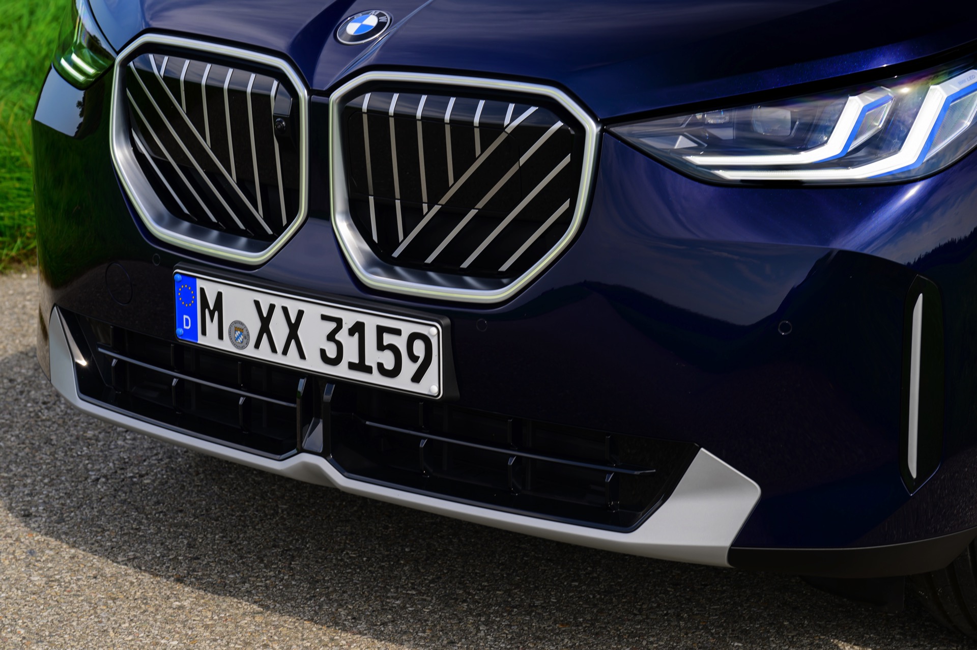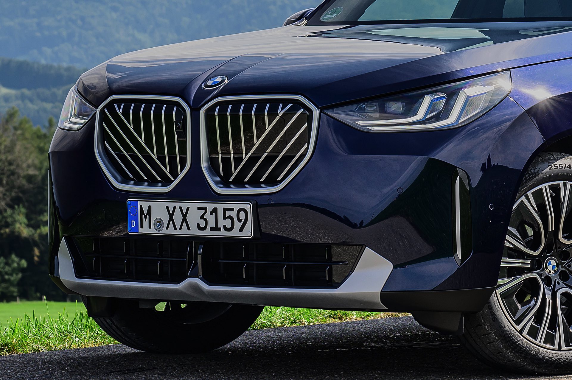 Mit seiner steilstehenden Front, der viel stärker ausgeprägten Doppelniere und radikal reduzierten Karosserielinien wirkt das Mittelklasse-SUV wie ein Besucher aus dem nächsten Jahrzehnt. Und ganz falsch ist das nicht. Immerhin: Was heute neu auf die Straße kommt, muss über das Jahr 2030 hinaus Bestand haben. Das gilt auch für Fahrzeuge mit Verbrennungsmotor, daran zweifelt inzwischen wohl kaum einer mehr. Und zum Glück gibt es auch Fotos von Tagen mit besserem Wetter, denn im grauen Regen fällt auch dem neuen X3 das Glänzen schwer.