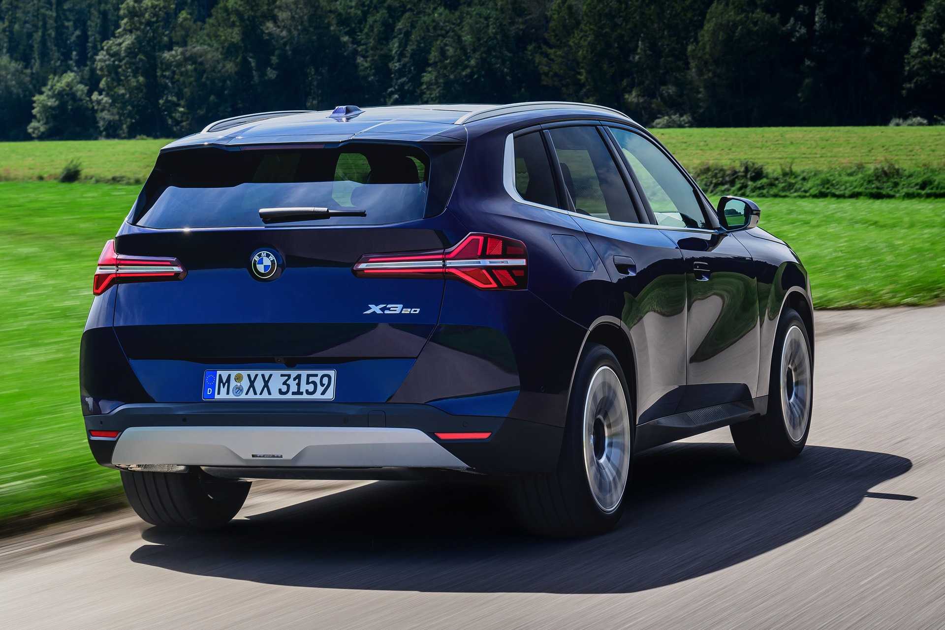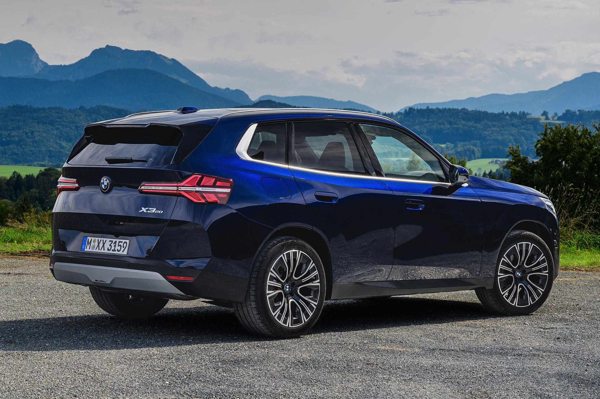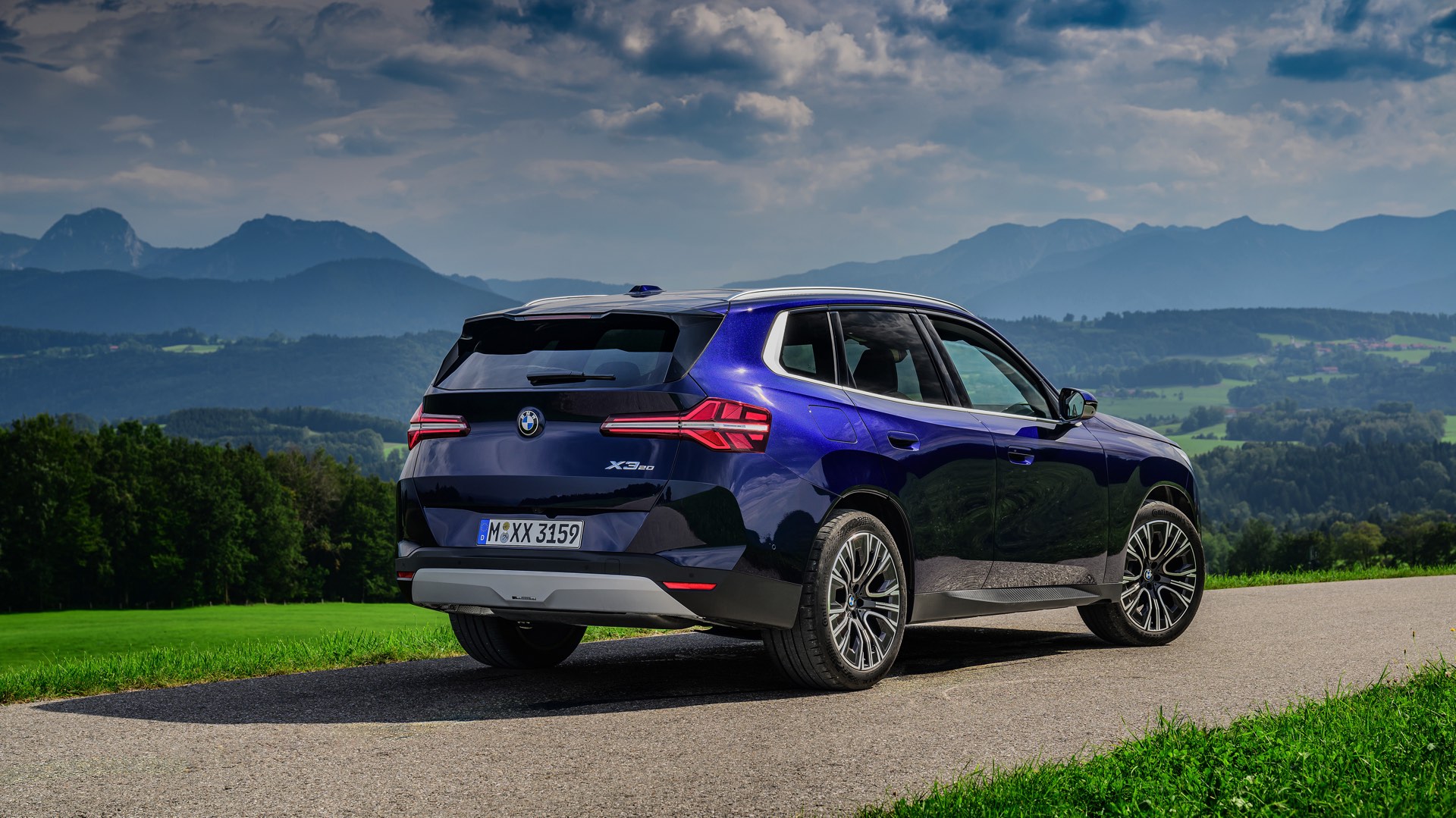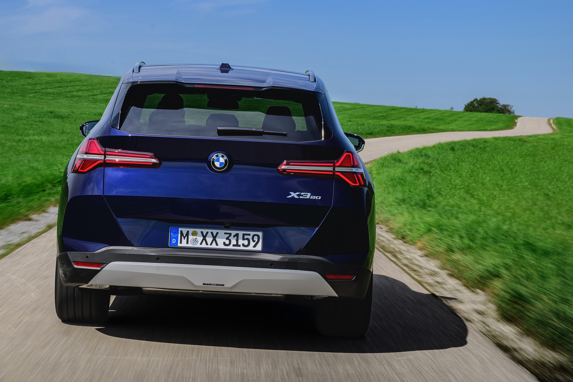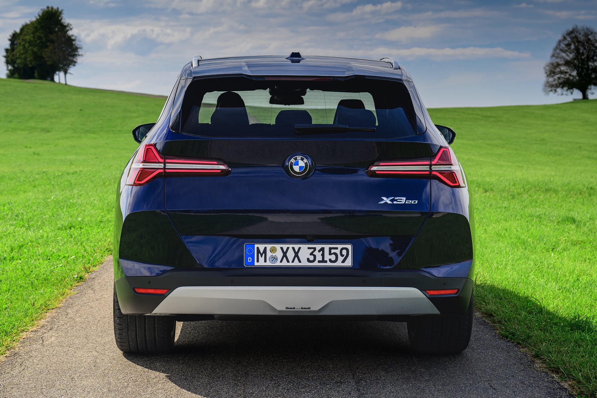 Mit seiner steilstehenden Front, der viel stärker ausgeprägten Doppelniere und radikal reduzierten Karosserielinien wirkt das Mittelklasse-SUV wie ein Besucher aus dem nächsten Jahrzehnt. Und ganz falsch ist das nicht. Immerhin: Was heute neu auf die Straße kommt, muss über das Jahr 2030 hinaus Bestand haben. Das gilt auch für Fahrzeuge mit Verbrennungsmotor, daran zweifelt inzwischen wohl kaum einer mehr. Und zum Glück gibt es auch Fotos von Tagen mit besserem Wetter, denn im grauen Regen fällt auch dem neuen X3 das Glänzen schwer.
